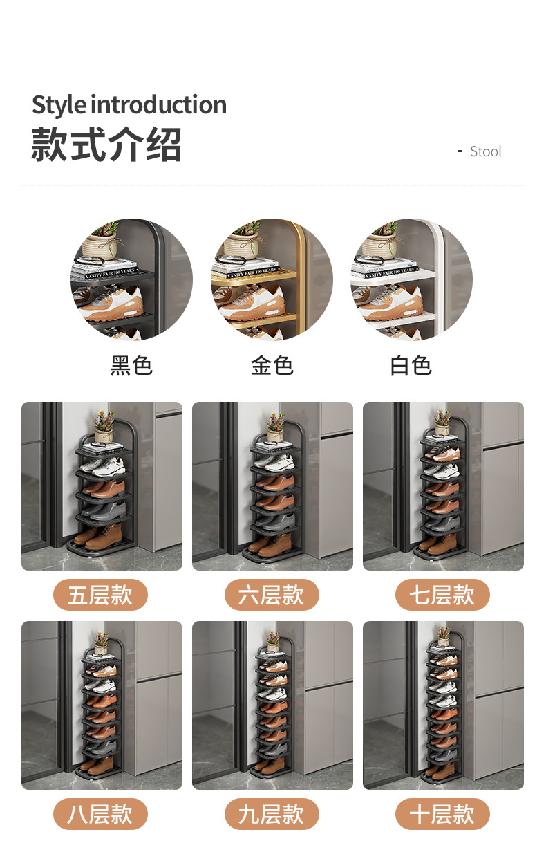 Estante de zapatos plegable de hierro forjado puerta pequeña estante de almacenamiento doméstico multicapa para alquiler simple no ocupa espacio