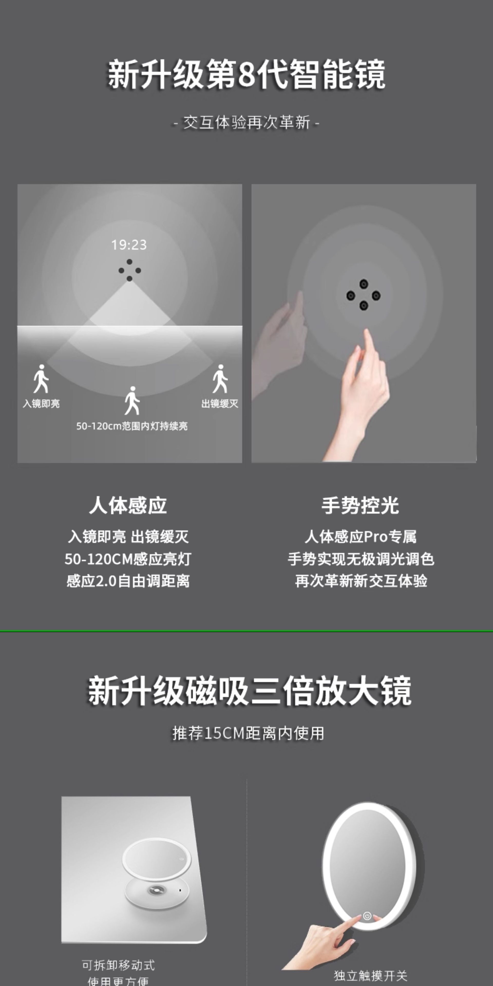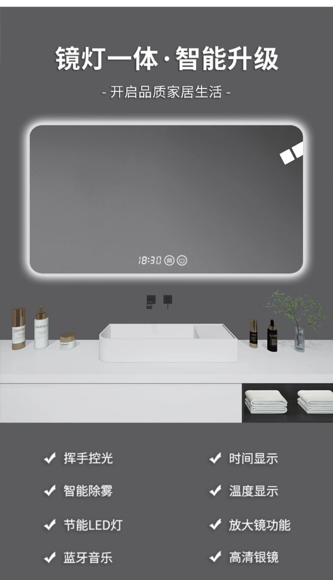 Baño de espejo moderno y minimalista baño LED con lámpara antiniebla luminosa inteligente espejo de maquillaje espejo de pared de baño