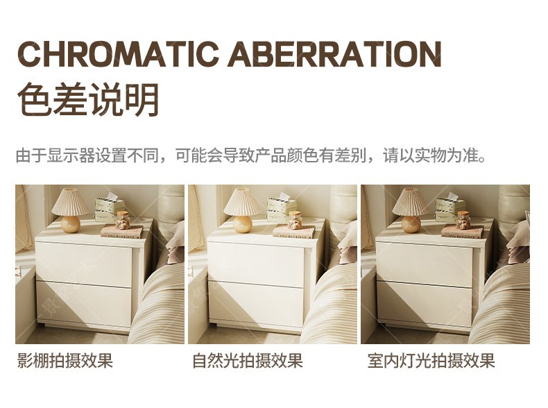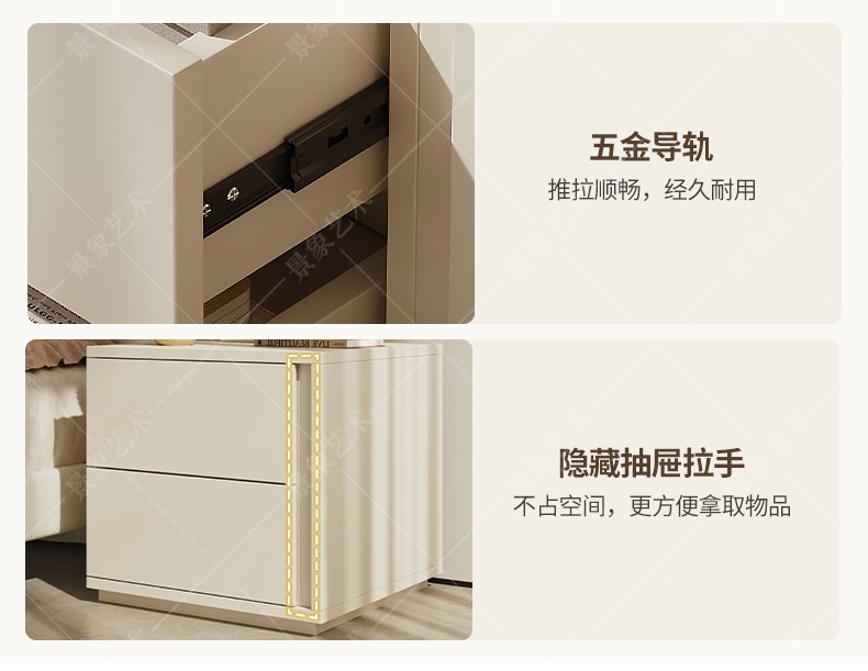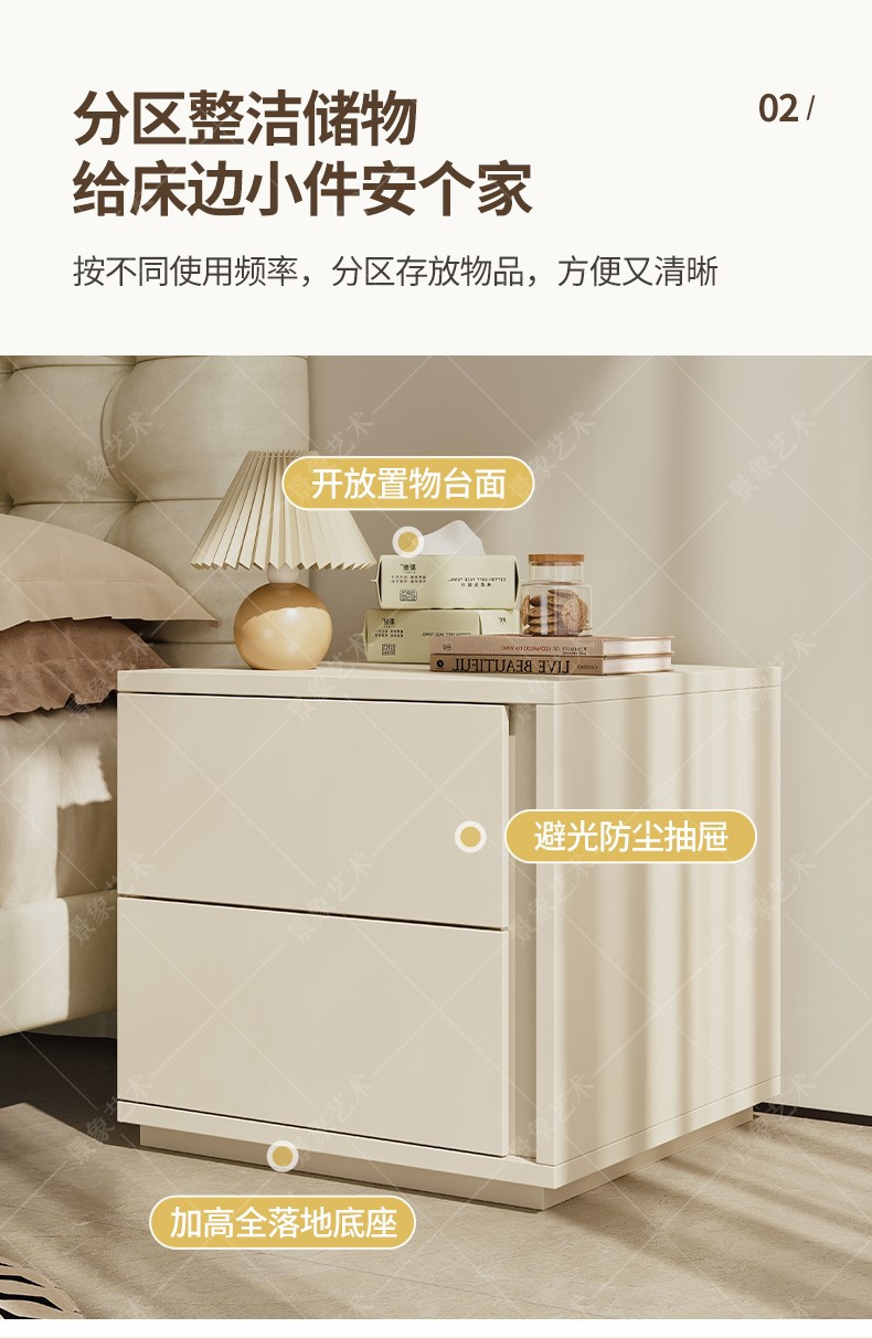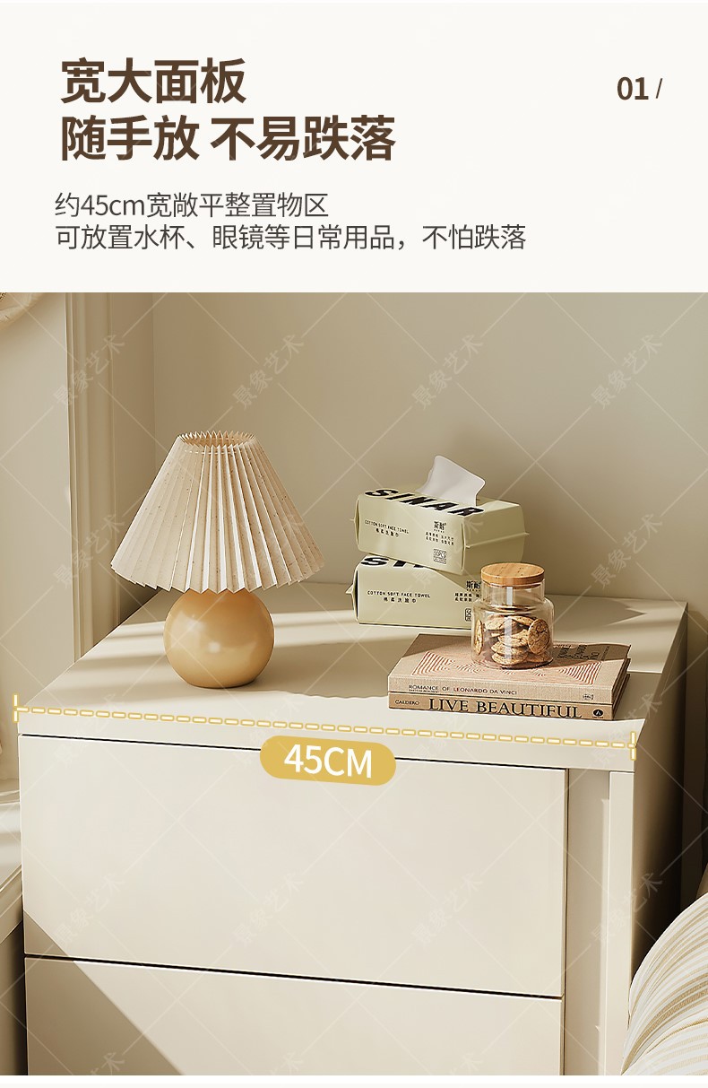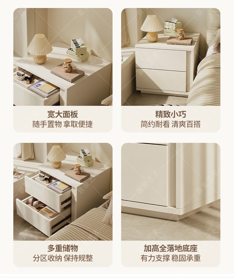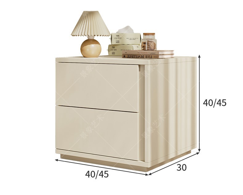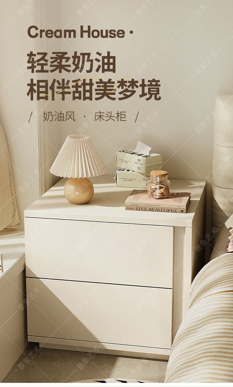 Mesa de cabezal de cama lujosa sensación de dormitorio de alta calidad almacenamiento al lado de la cama pequeño gabinete de almacenamiento simple ventana lateral de crema doble cajón