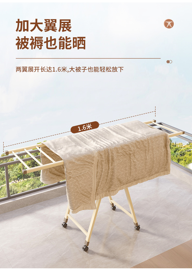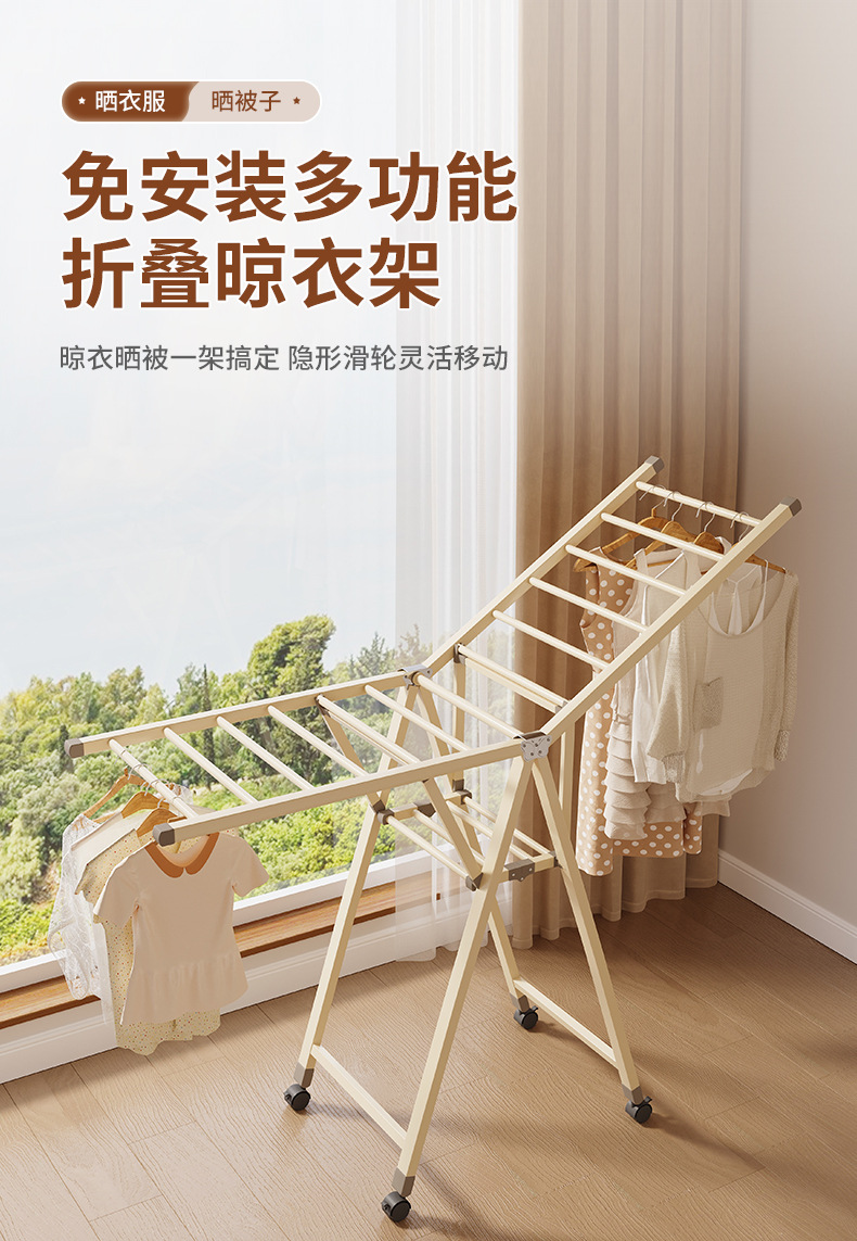 Percha de secado de ropa sin instalación de hierro forjado multifuncional plegable de almacenamiento varilla de colgante simple balcón para secar y secar estante de colcha
