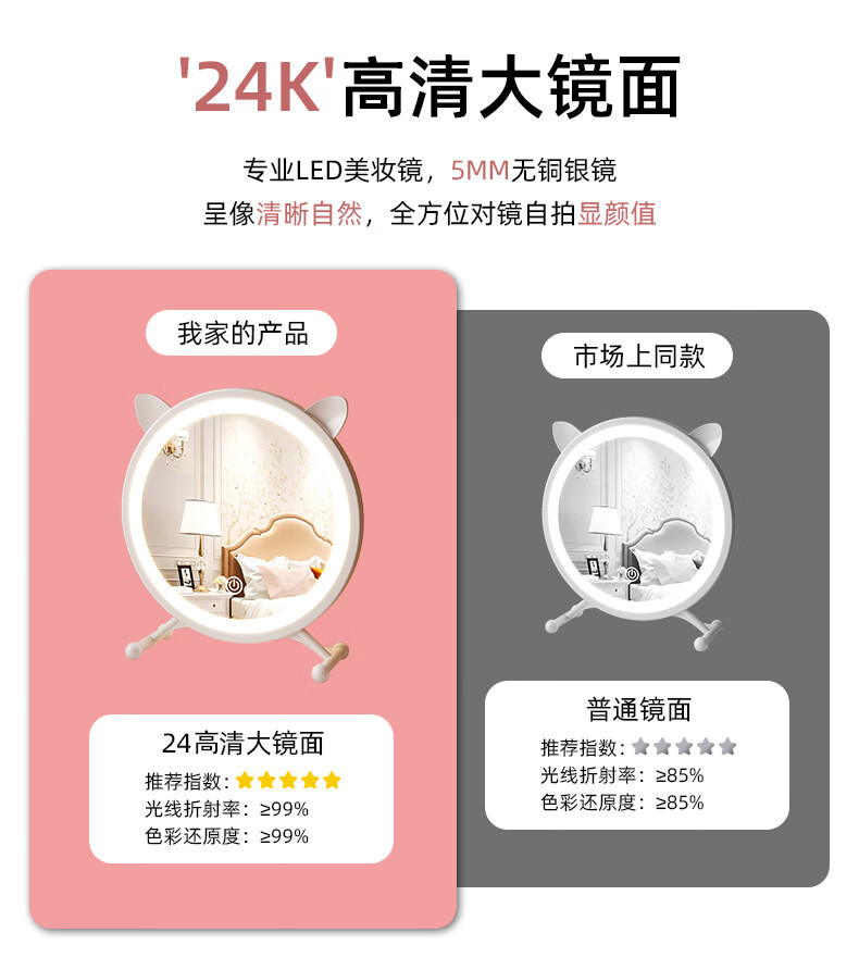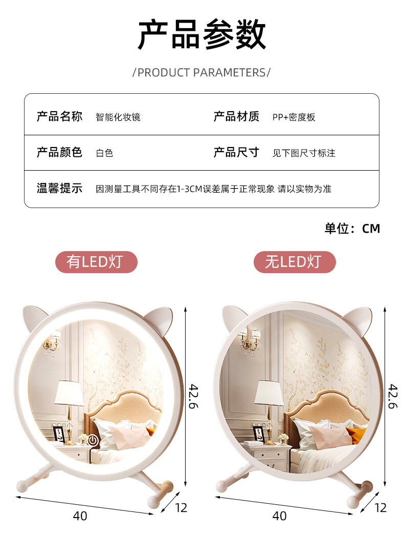 Espejo de maquillaje dormitorio con espejo de escritorio led con lámpara dormitorio in espejo de vestir espejo de escritorio espejo redondo de escritorio