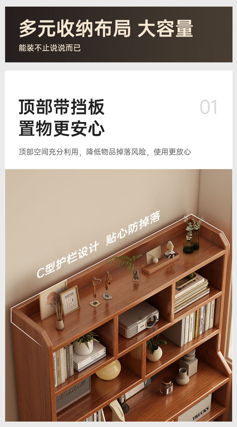 Estantes de madera sólida estantería de piso estantería sala de estar gabinete de exhibición gabinete de biblioteca casero armario de almacenamiento contra la pared armario integrado