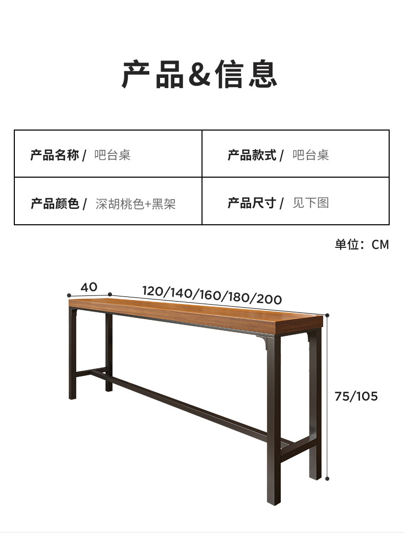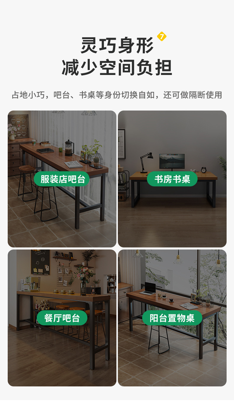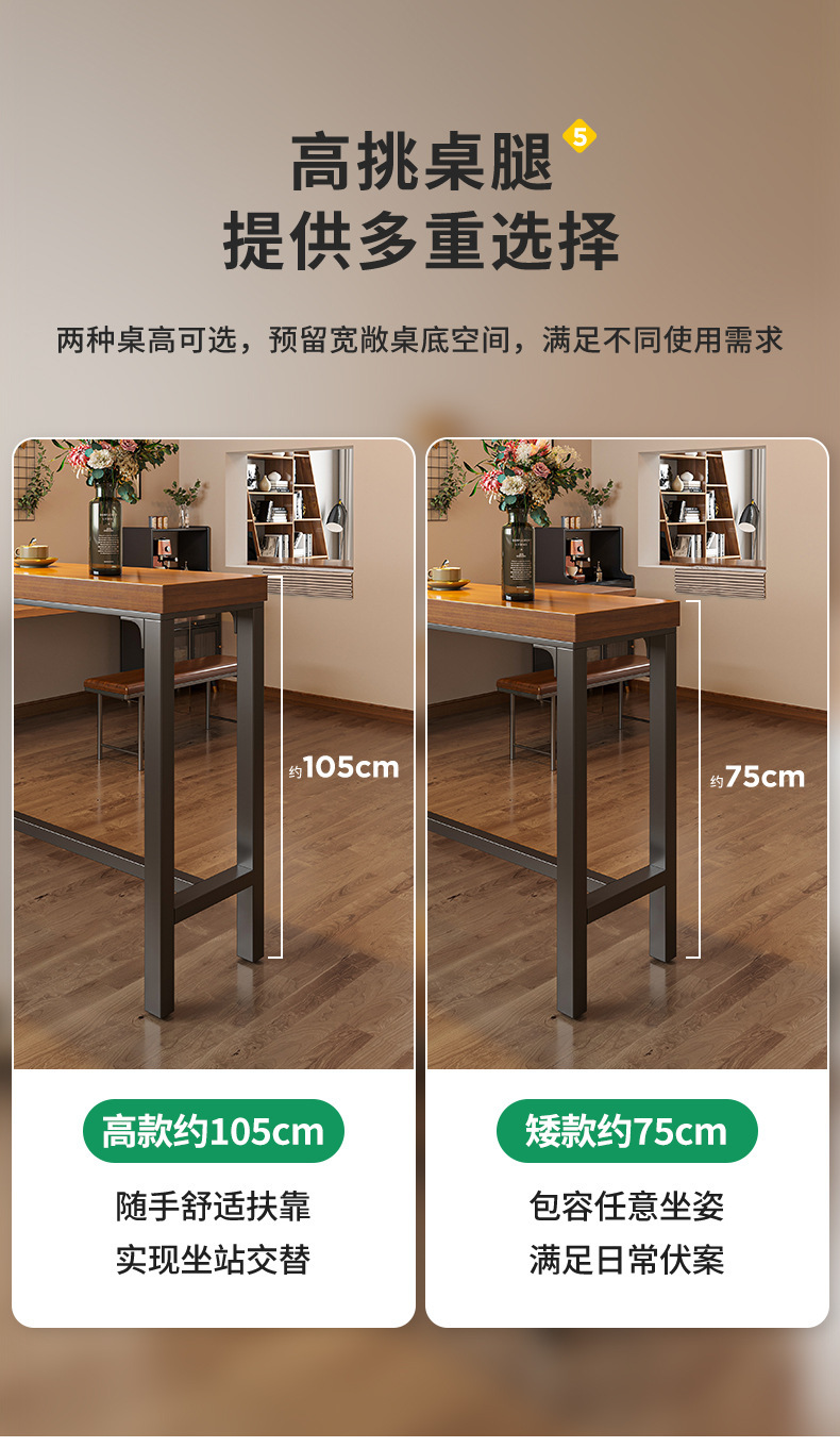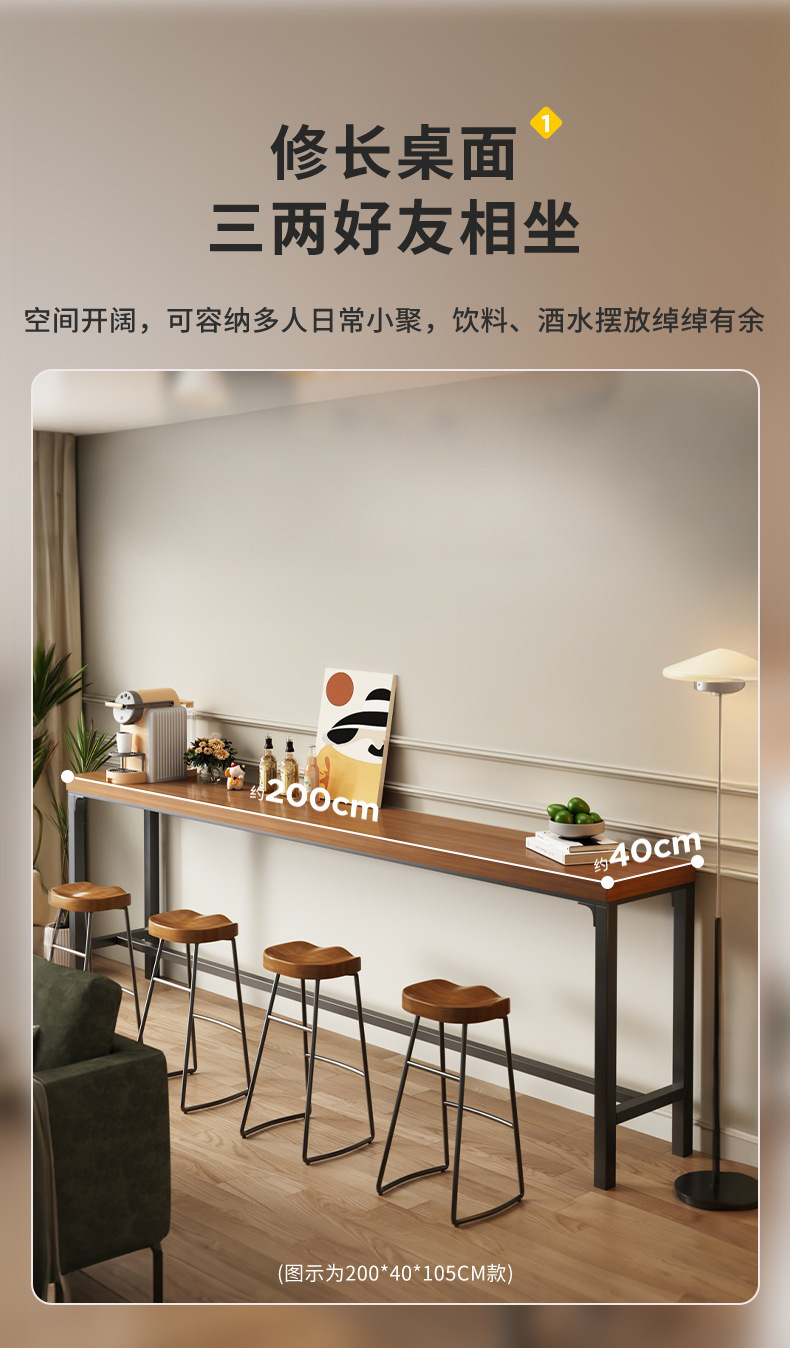Mesa de bar gruesa mesa de sala de estar doméstica contra la pared balcón mesa de pies altos simple mesa larga mesa de té de leche combinación de mesa y silla