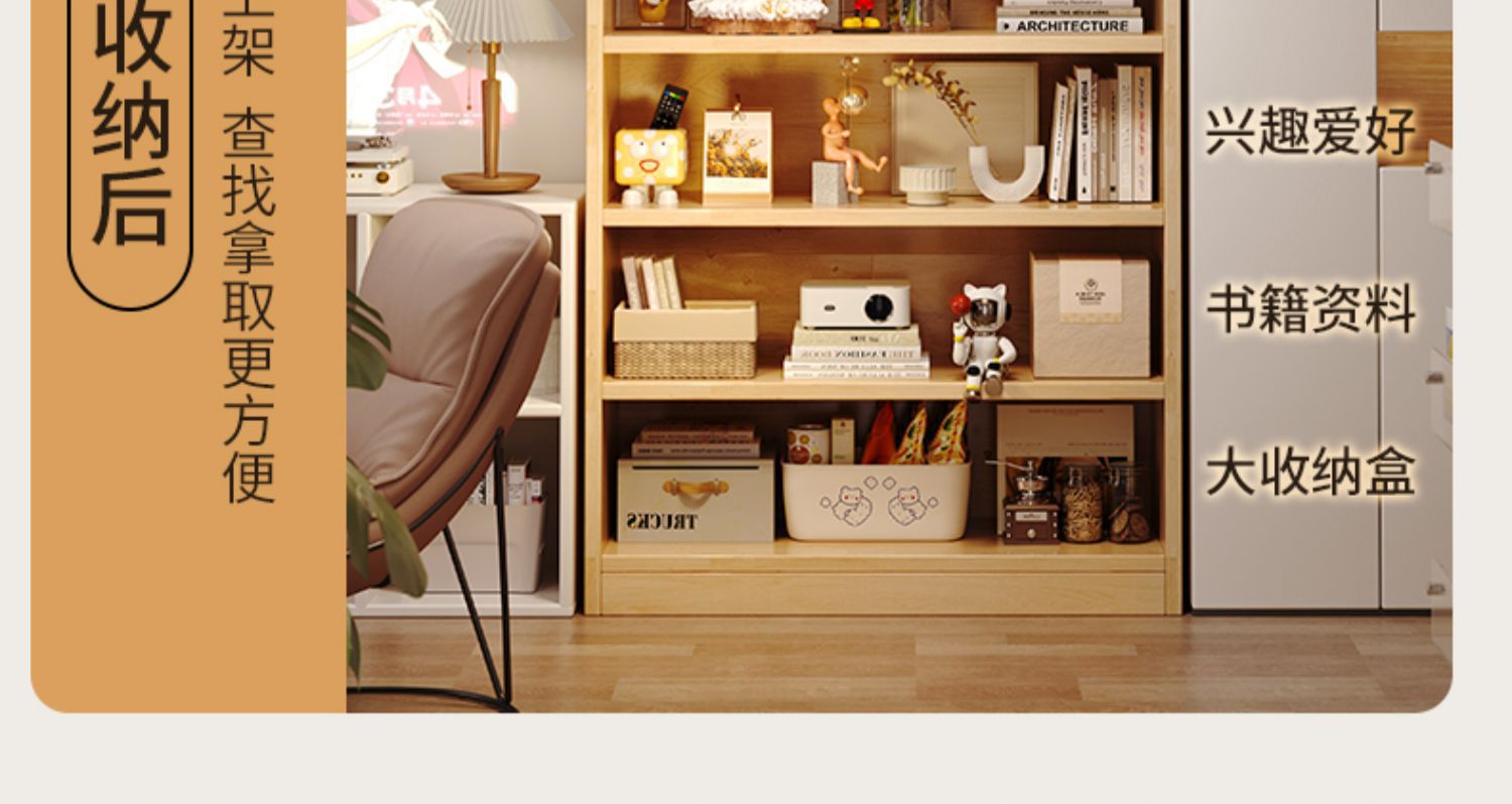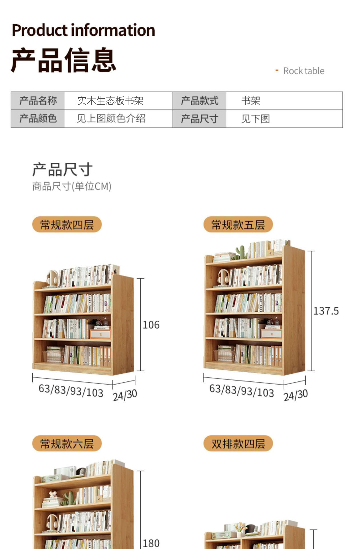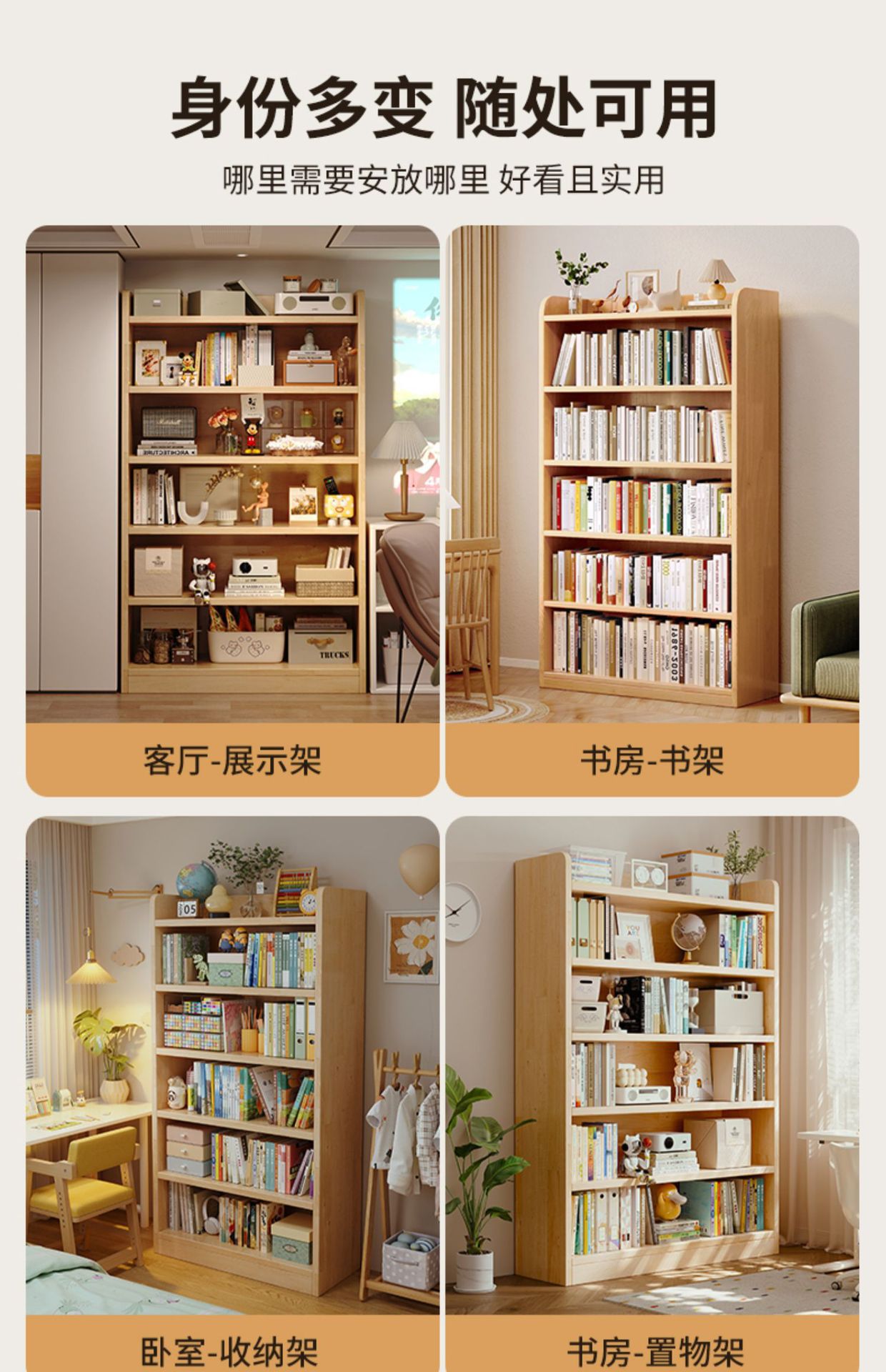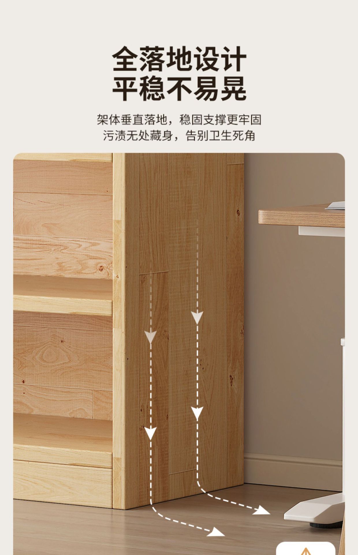 Estante de madera de pino integral contra la pared estante de piso estante de libros para niños estudiantes casero armario de almacenamiento gabinete