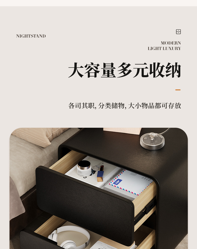 Mesa de cabezal de cama dormitorio doméstico madera sólida doble cajón de cama armario de almacenamiento fácil de alta sensación armario de almacenamiento pequeño