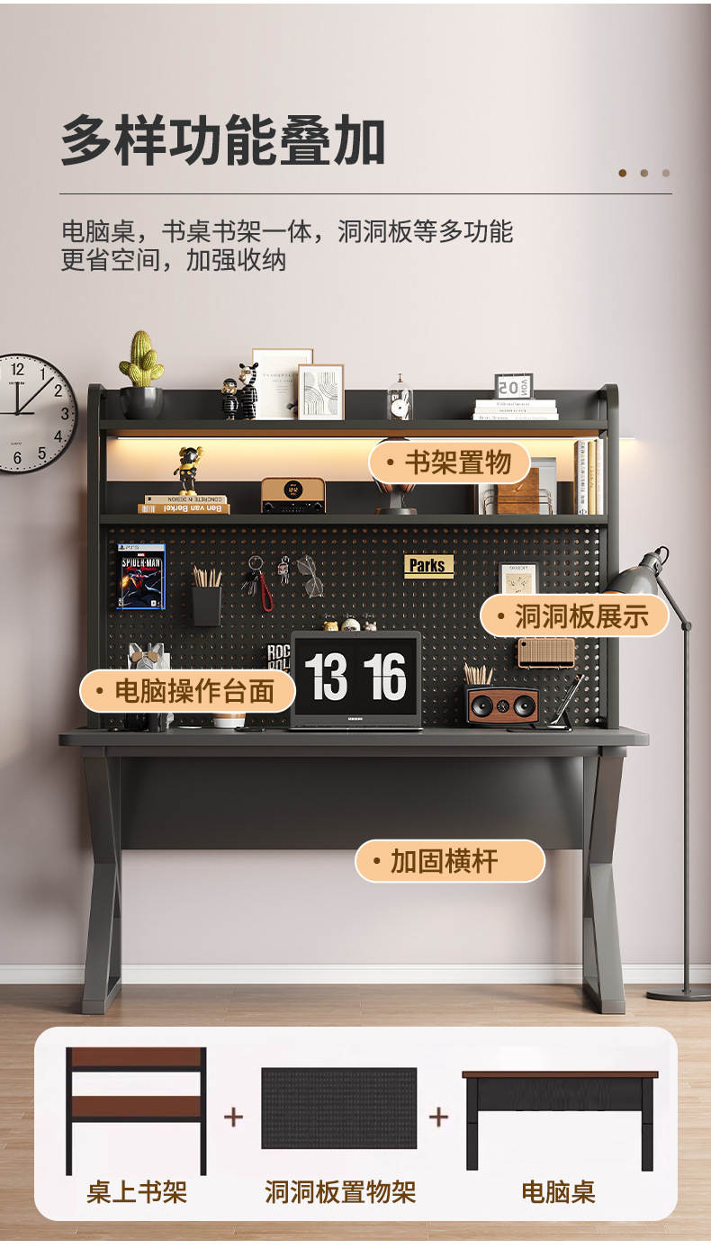 Escritorio de computadora Escritorio con tablero de agujeros Escritorio Estantería Escritorio integrado Escritorio de aprendizaje Dormitorio Escritorio de oficina en casa