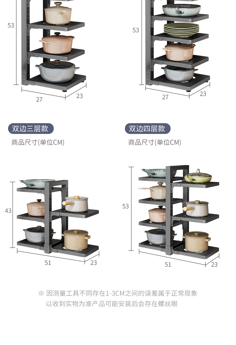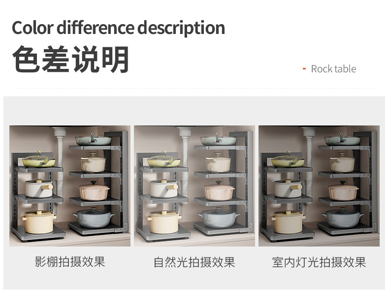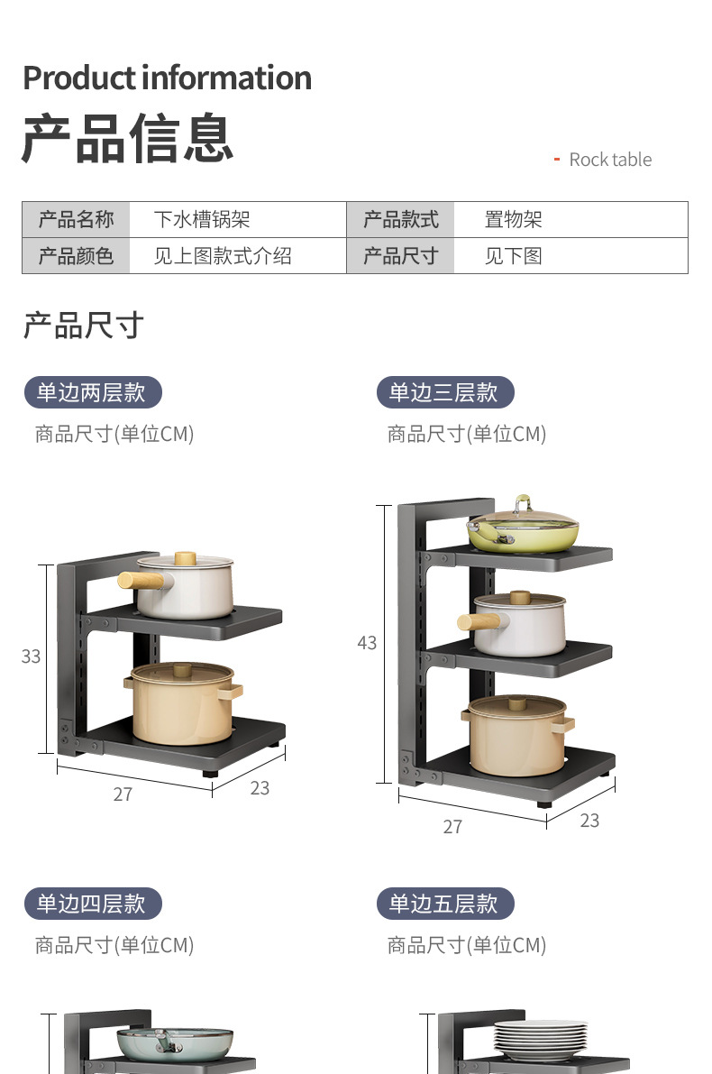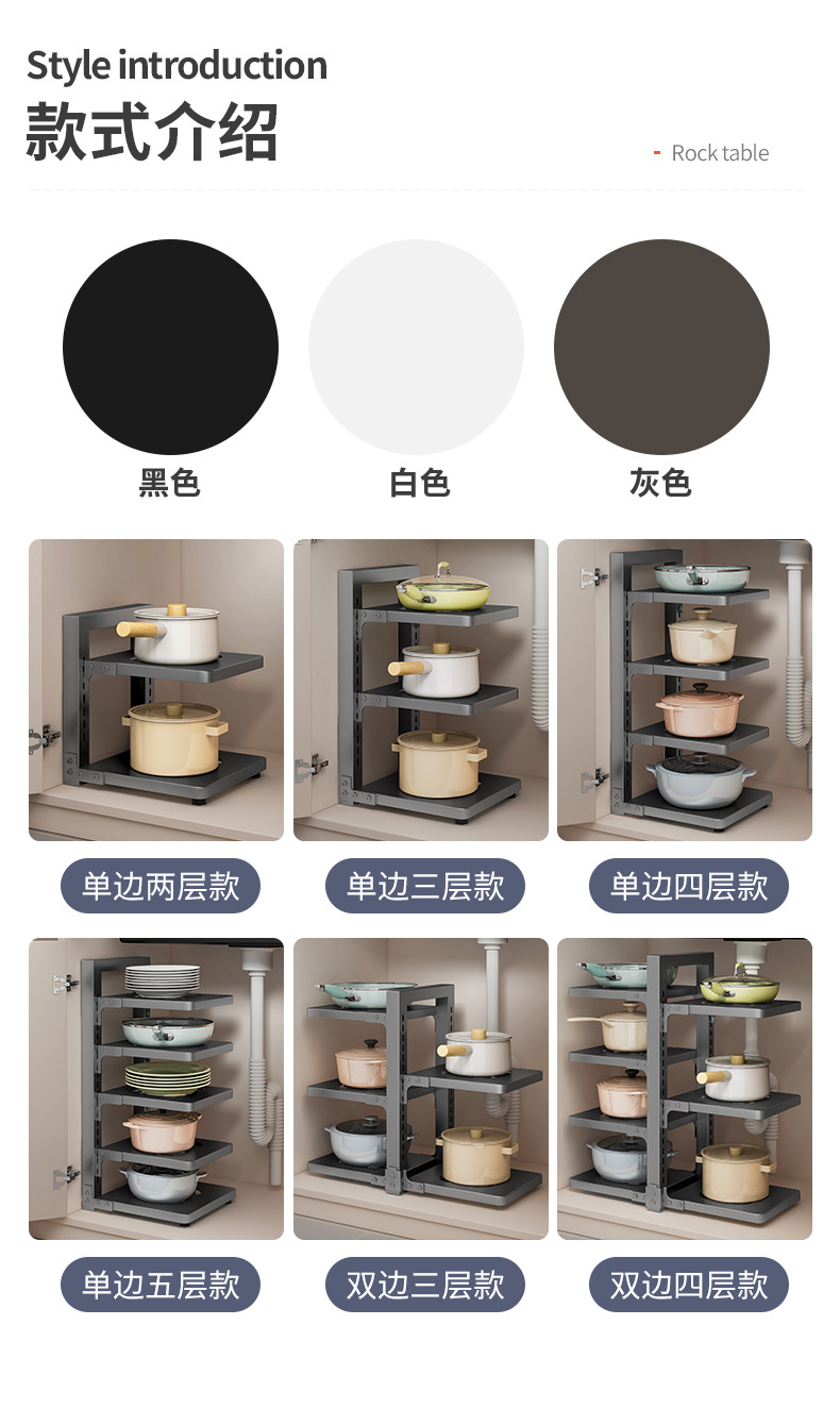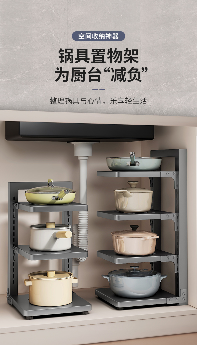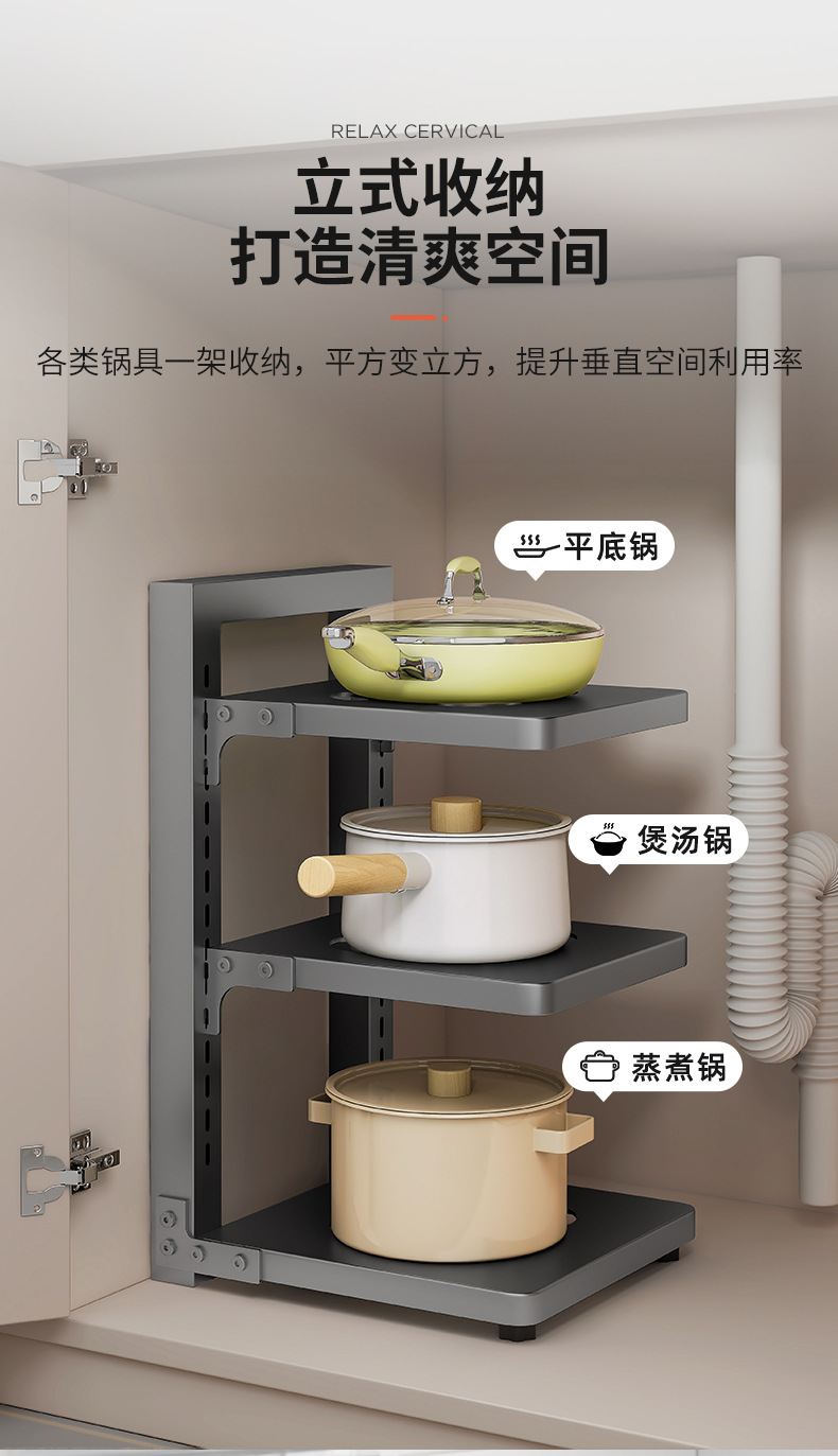 Rack de almacenamiento de cocina estante de almacenamiento de macetas piso del hogar multi-funcional estante de olla fregadero gabinete en capas estante de la olla