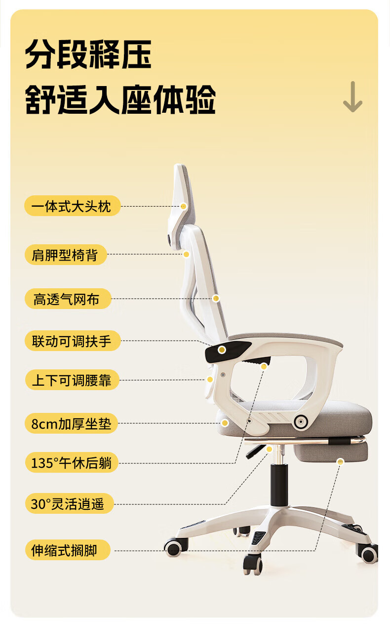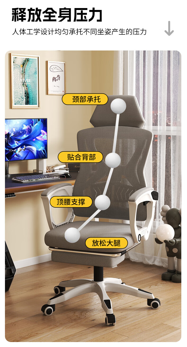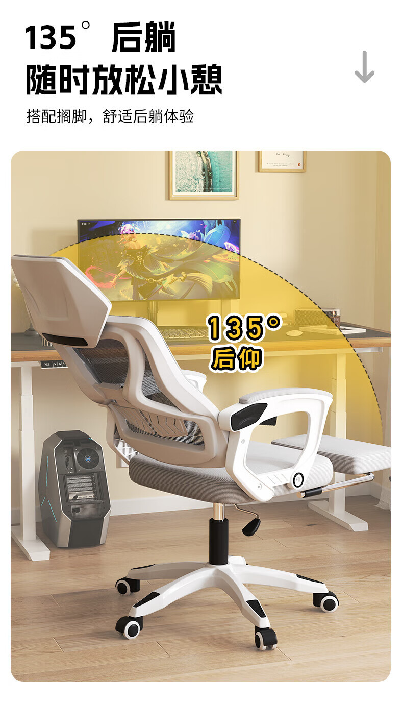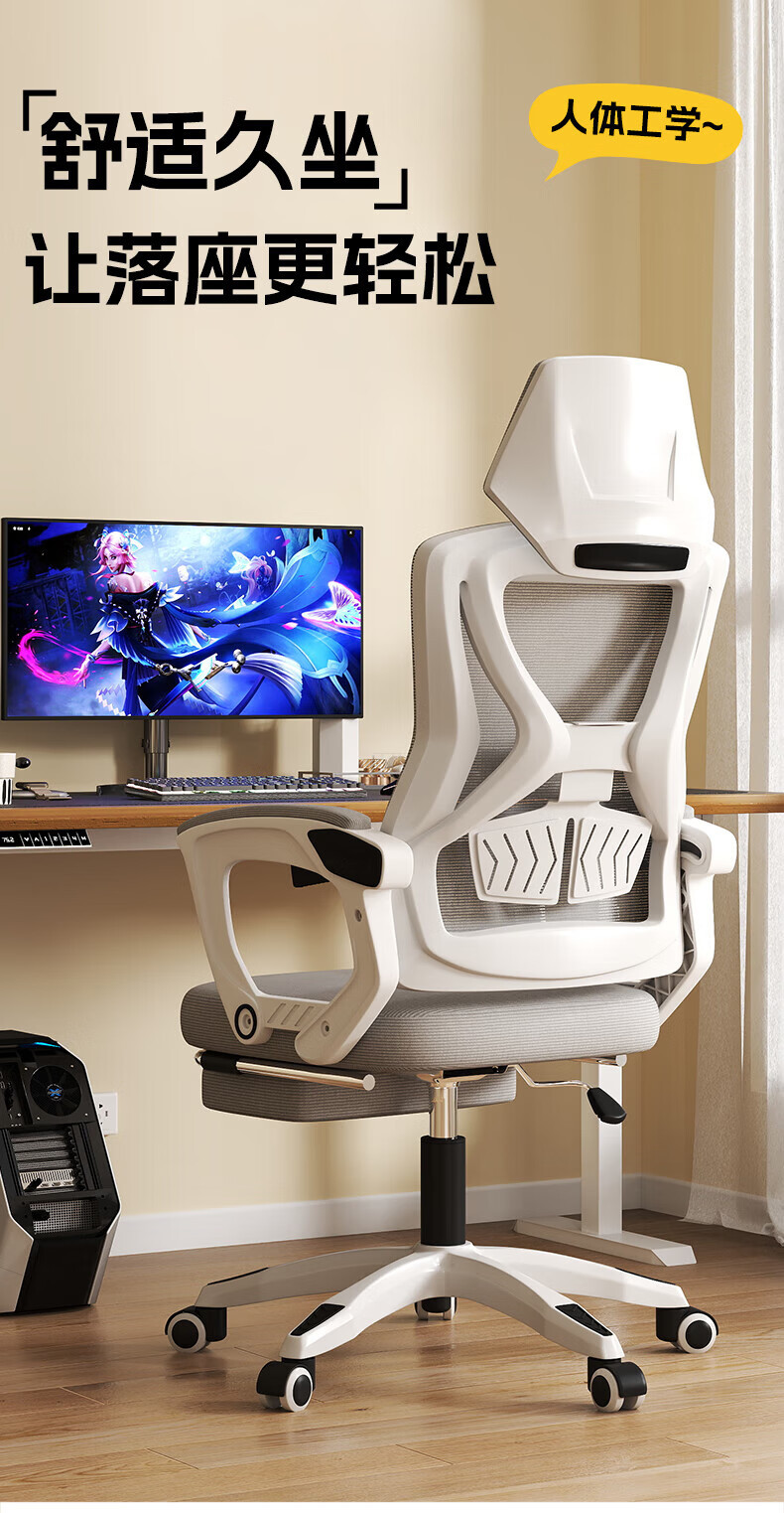 Silla de computadora, silla de estudio de oficina en el hogar, silla giratoria ergonómica, juego sedentario, silla de deportes electrónicos, sentarse o acostarse