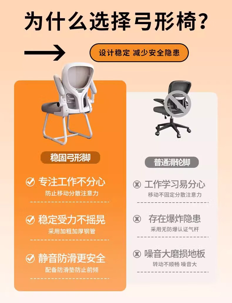 Silla de computadora personalizada a granel Silla de estudio para estudiantes en casa Silla de arco con respaldo de dormitorio Silla de conferencias de oficina ergonómica