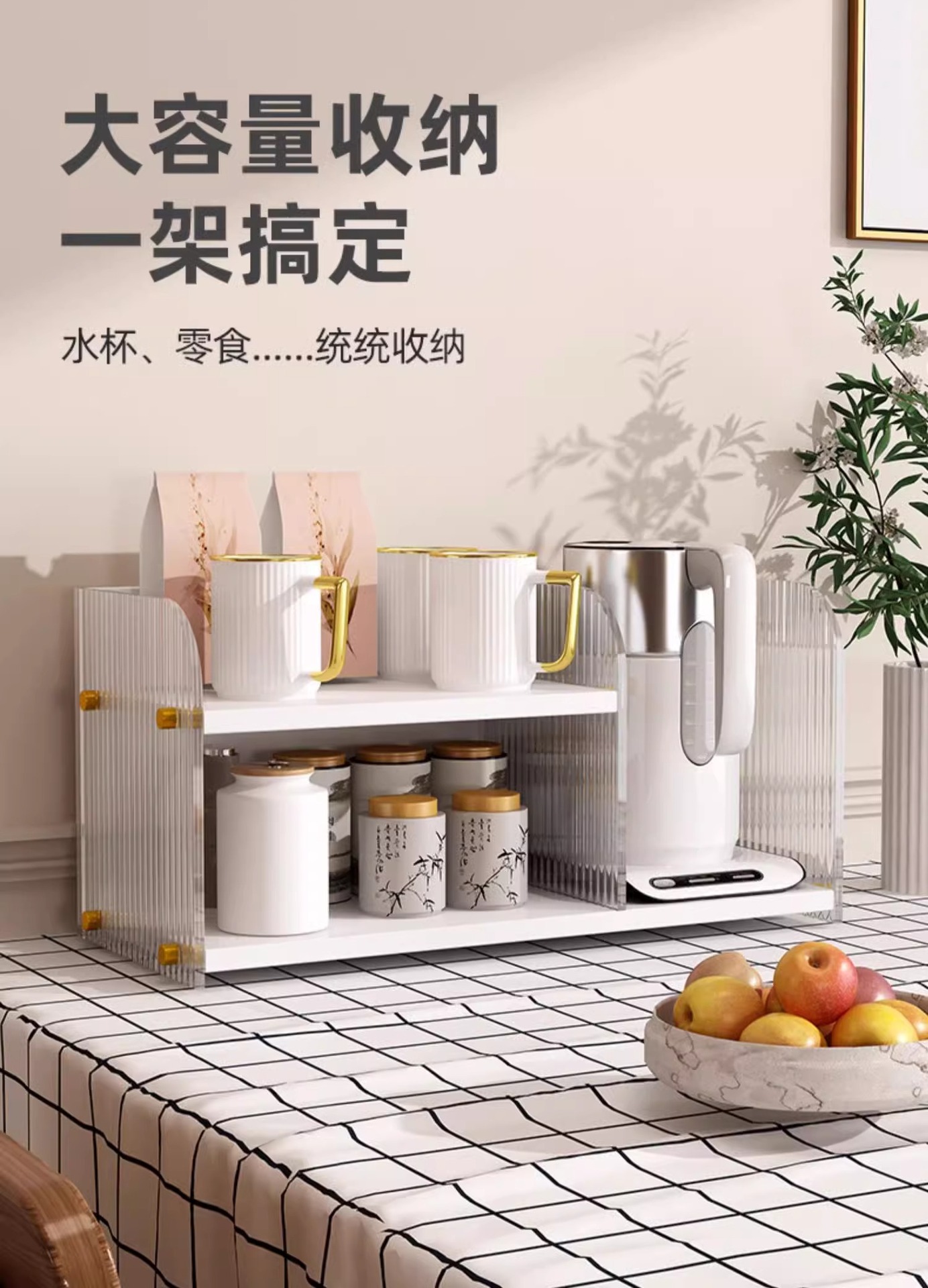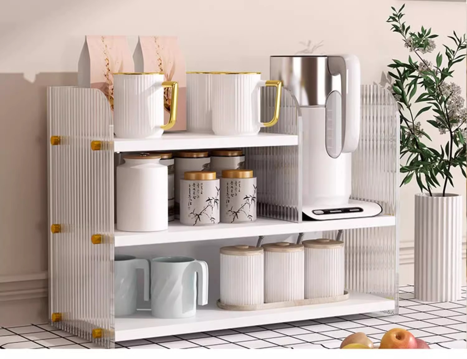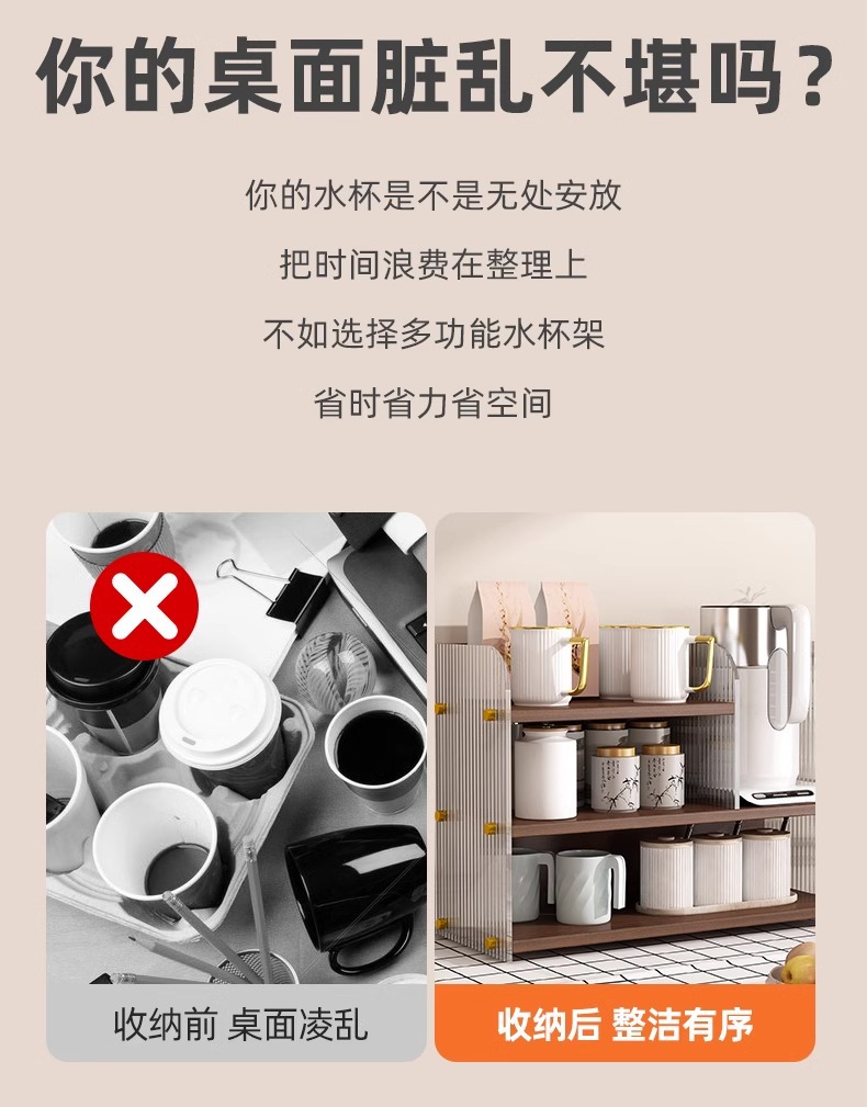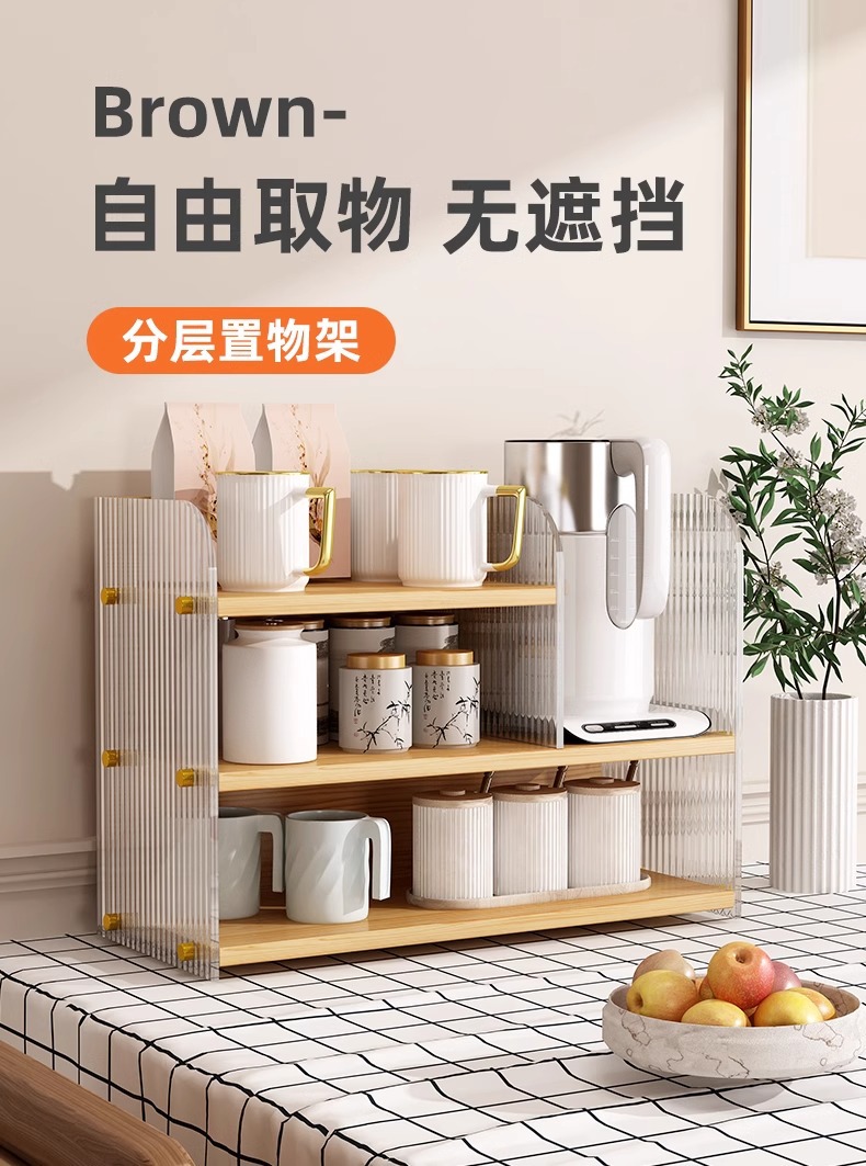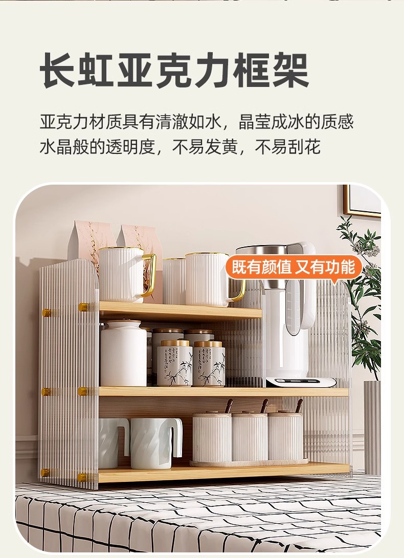Estante de escritorio acrílico de mesa de comedor multicapa de almacenamiento y acabado de escritorio casero barra de té de mesa de almacenamiento de tazas de agua