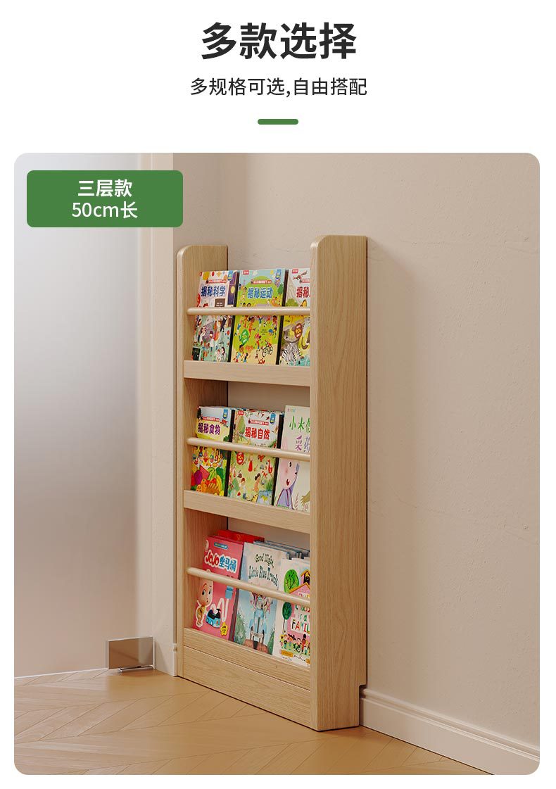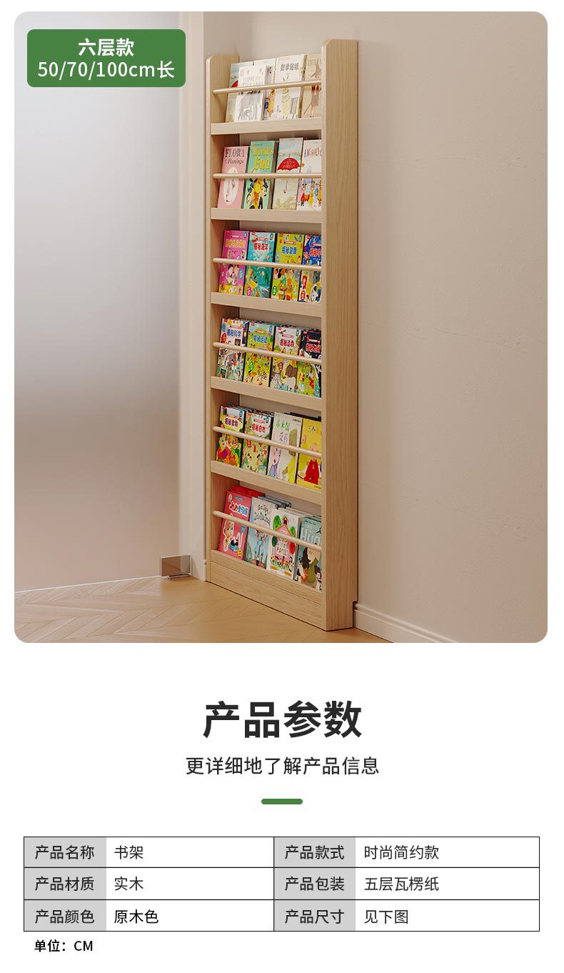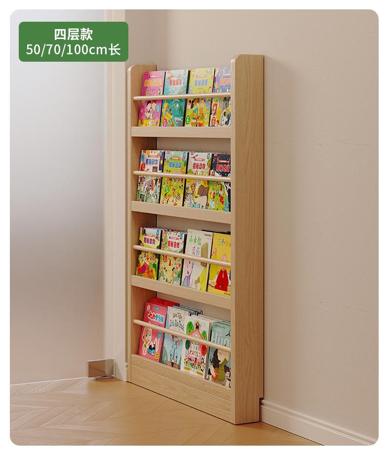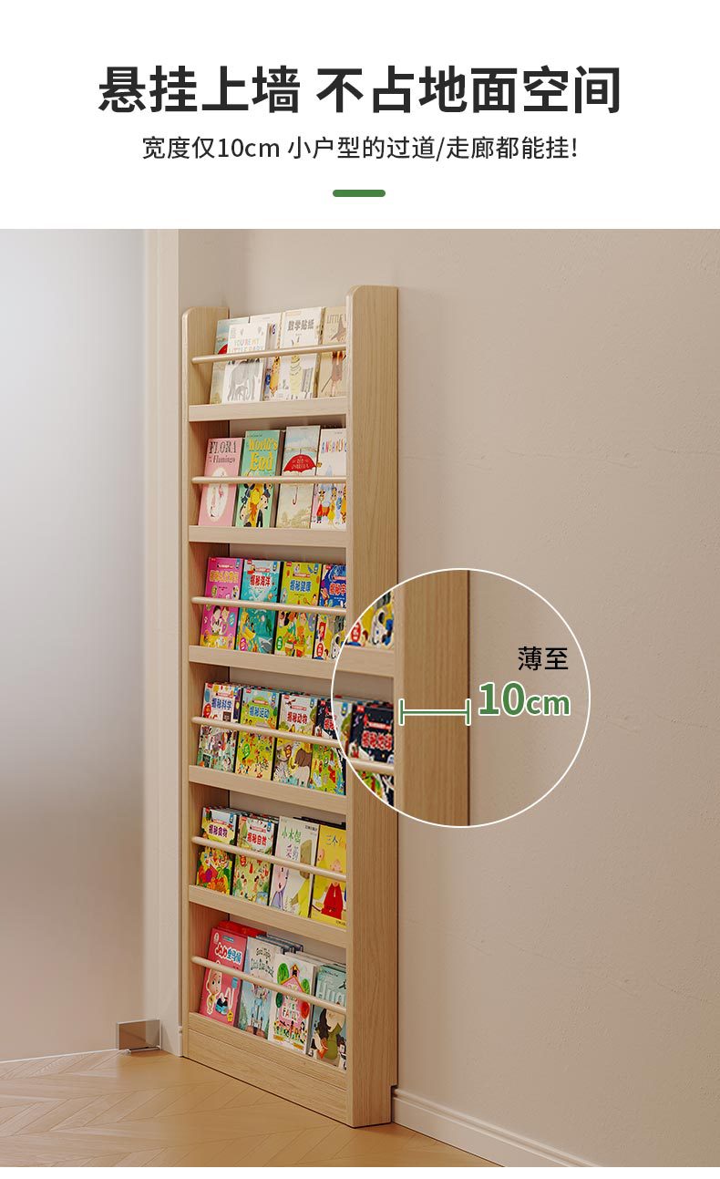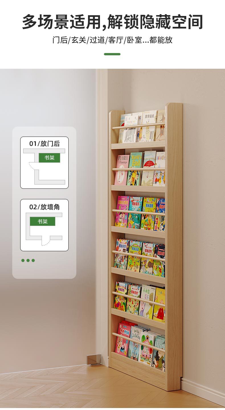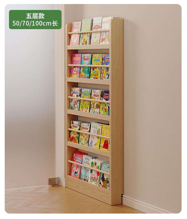 Estante de madera sólida en el hogar detrás de la puerta del estante de almacenamiento ultra delgado para niños de aterrizaje de libro de dibujos multicapa de exposición de lectura estante de hendidura