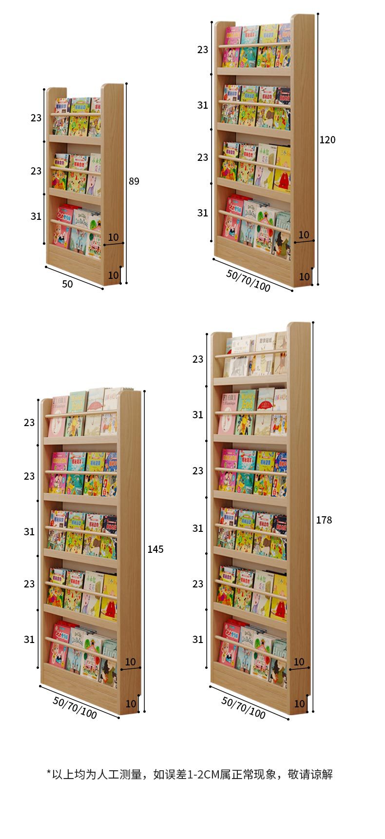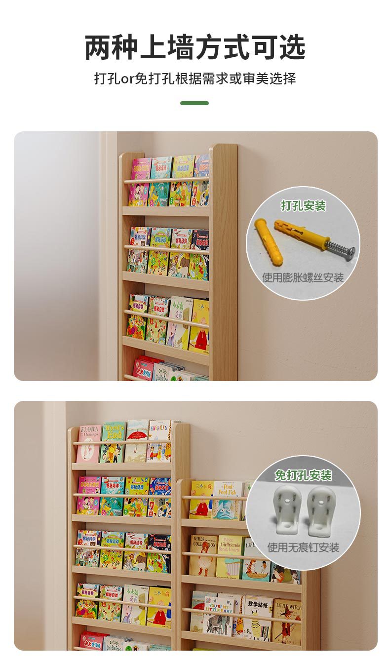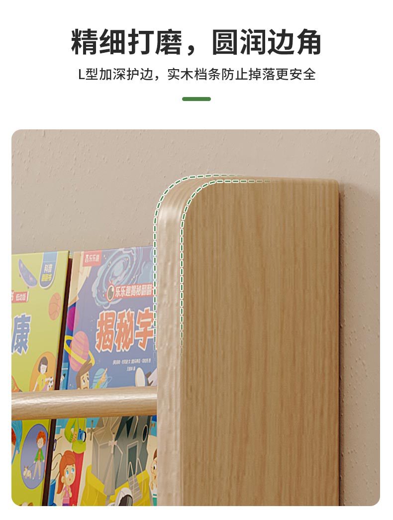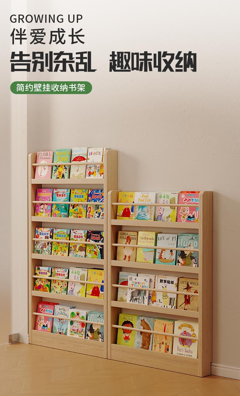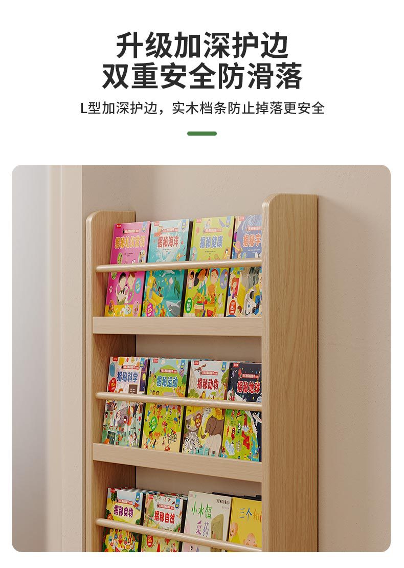 Estante de madera sólida en el hogar detrás de la puerta del estante de almacenamiento ultra delgado para niños de aterrizaje de libro de dibujos multicapa de exposición de lectura estante de hendidura