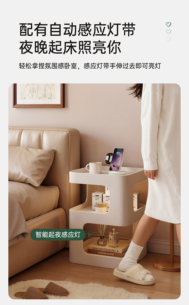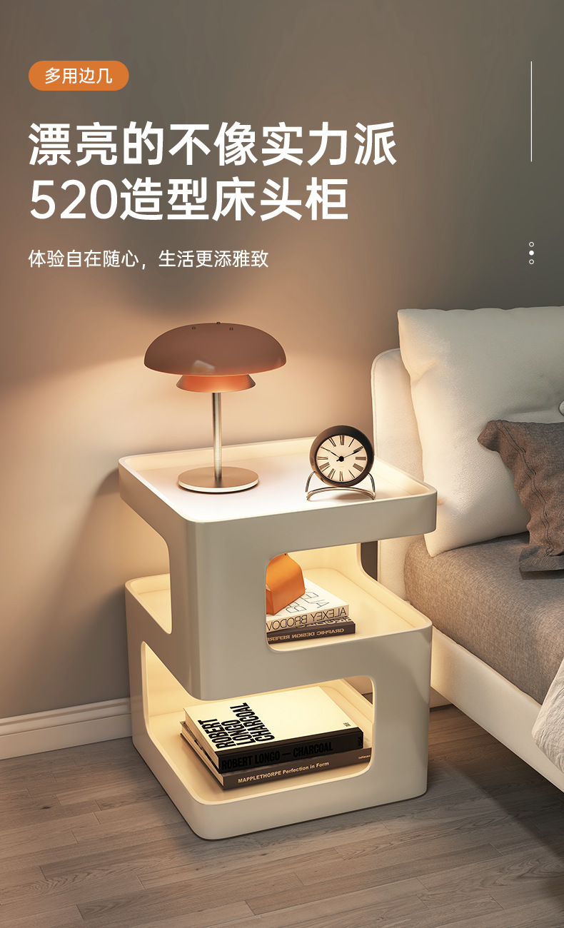 Mesa de cabezal de cama dormitorio armario de almacenamiento armario de almacenamiento estante de libros simple estante de visualización multifuncional estante de almacenamiento lateral doméstico