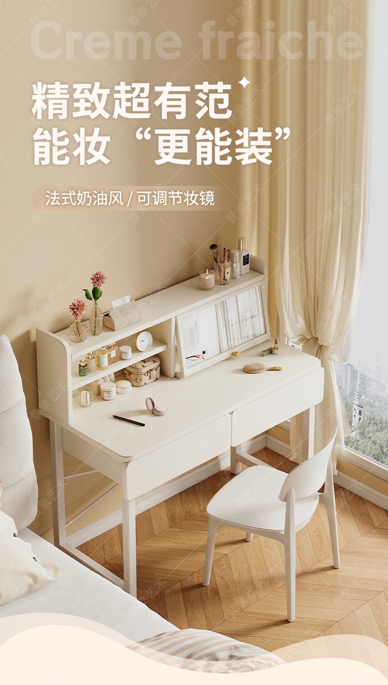 Comedor de camaro sencillo de alta calidad dormitorio de chicas escritorio de maquillaje con espejo de maquillaje pequeño escritorio de maquillaje de estilo crema