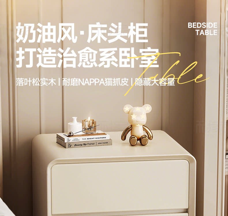 2025 nuevo estilo de lujo ligero de alto nivel pequeño gabinete de cabecera de cama de madera maciza dormitorio