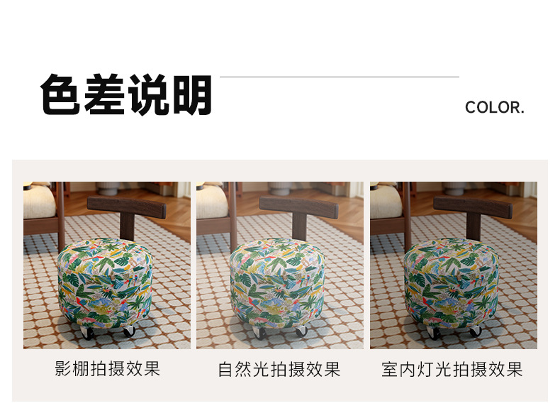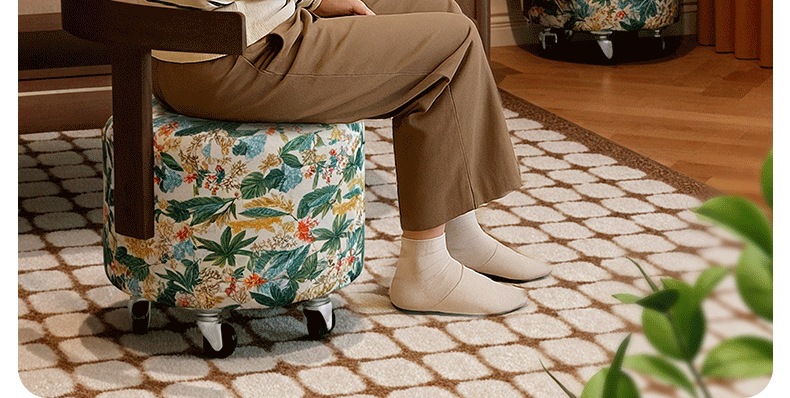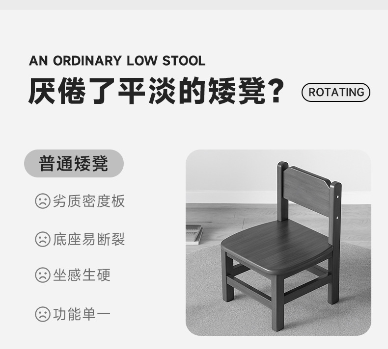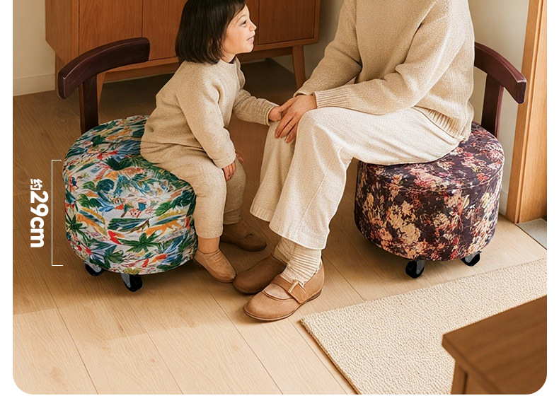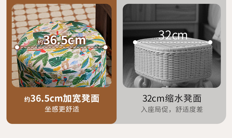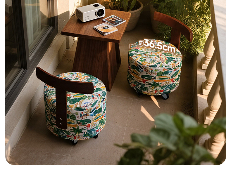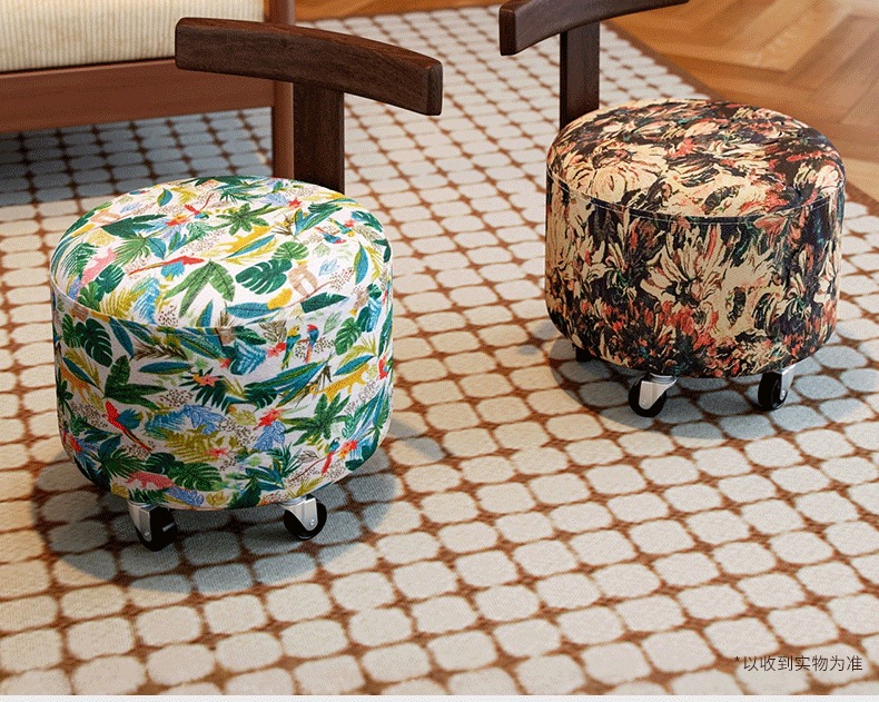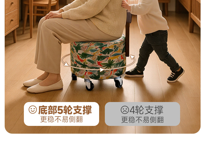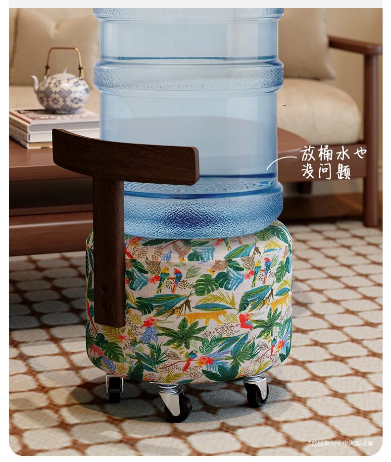Taburete de rueda universal, silla de respaldo de madera sólida doméstica, taburete de salón, taburete retrógrado bajo, taburete de cambio de zapatos