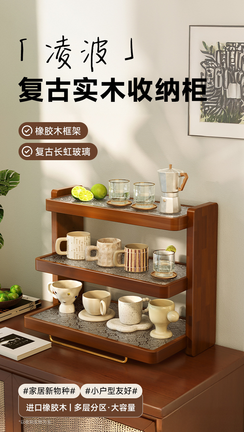 Portavasos de madera maciza Porta de almacenamiento de tazas multicapa Juego de té retro Porta de almacenamiento de tazas de té Porta de almacenamiento de tazas de café Porta de almacenamiento de tazas de agua