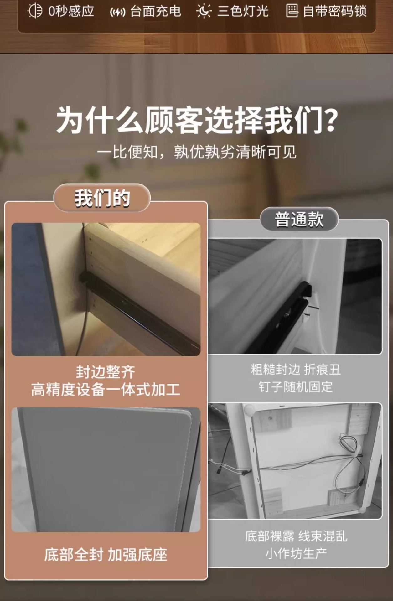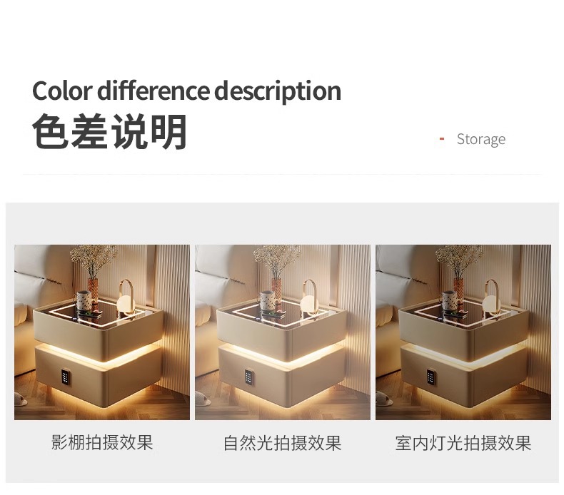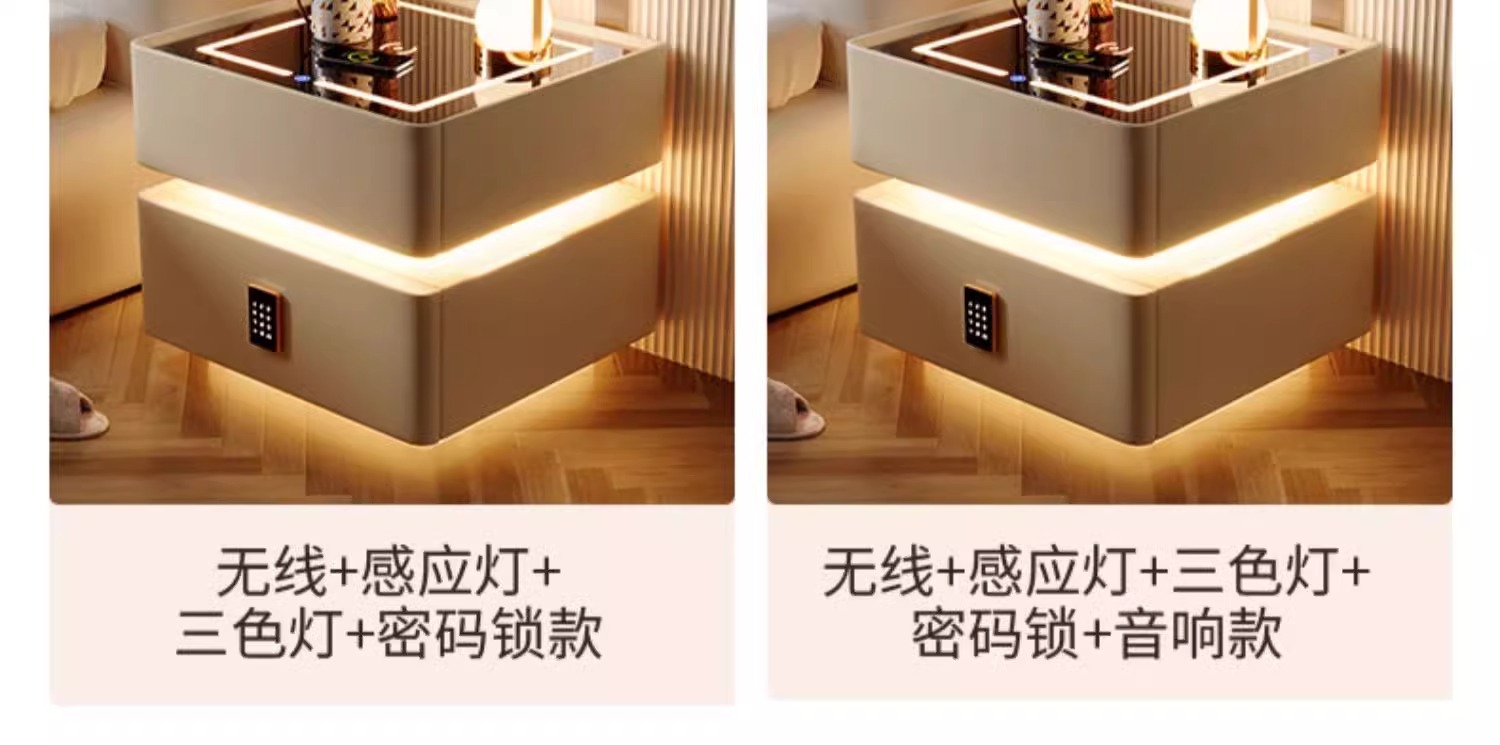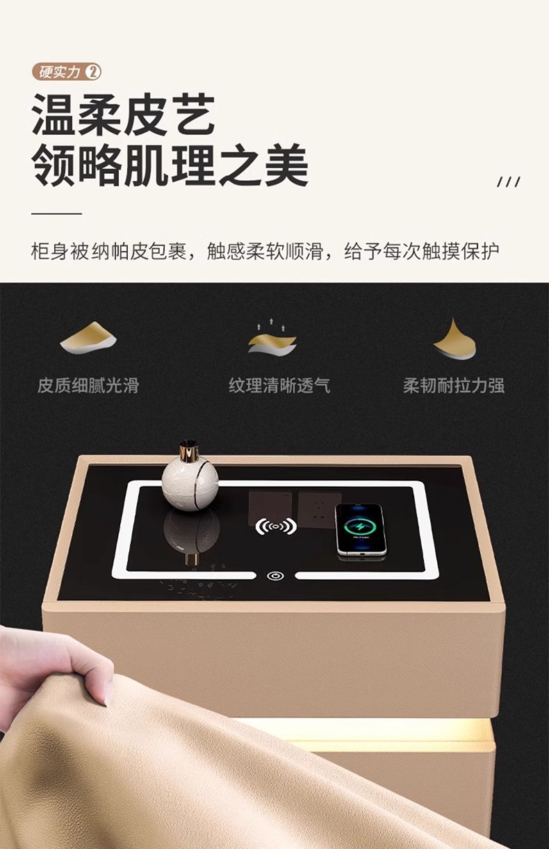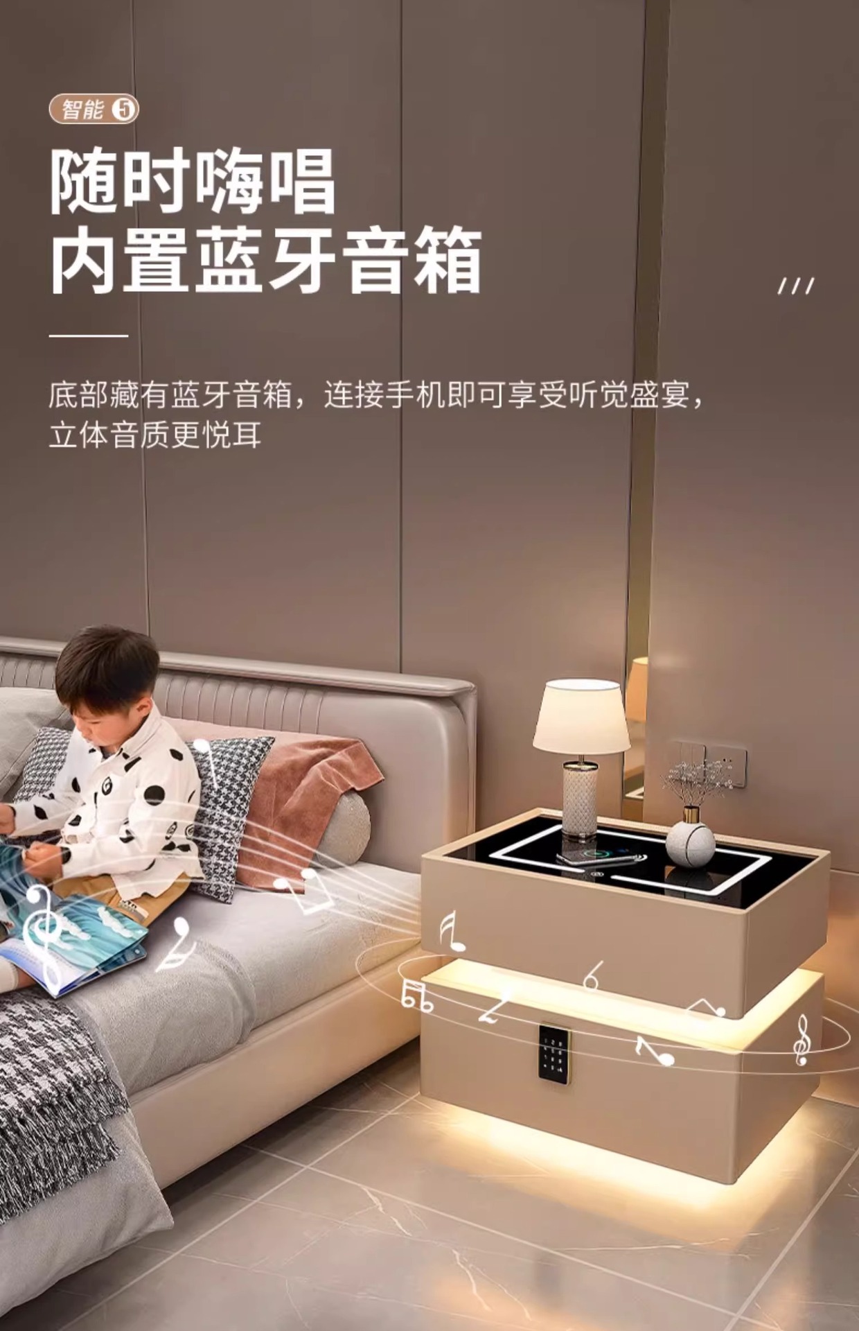 Mesa de cabezal de cama moderna lujosa inteligente con luces de alto nivel de sensación de dormitorio estante de cabezal de cama de viento de crema almacenar gabinete bajo junto a la cama