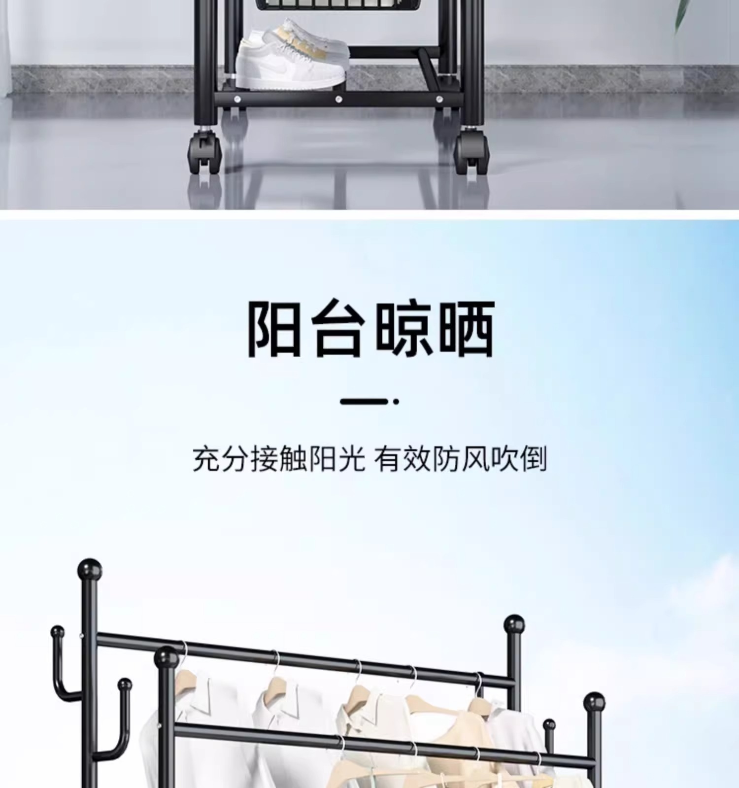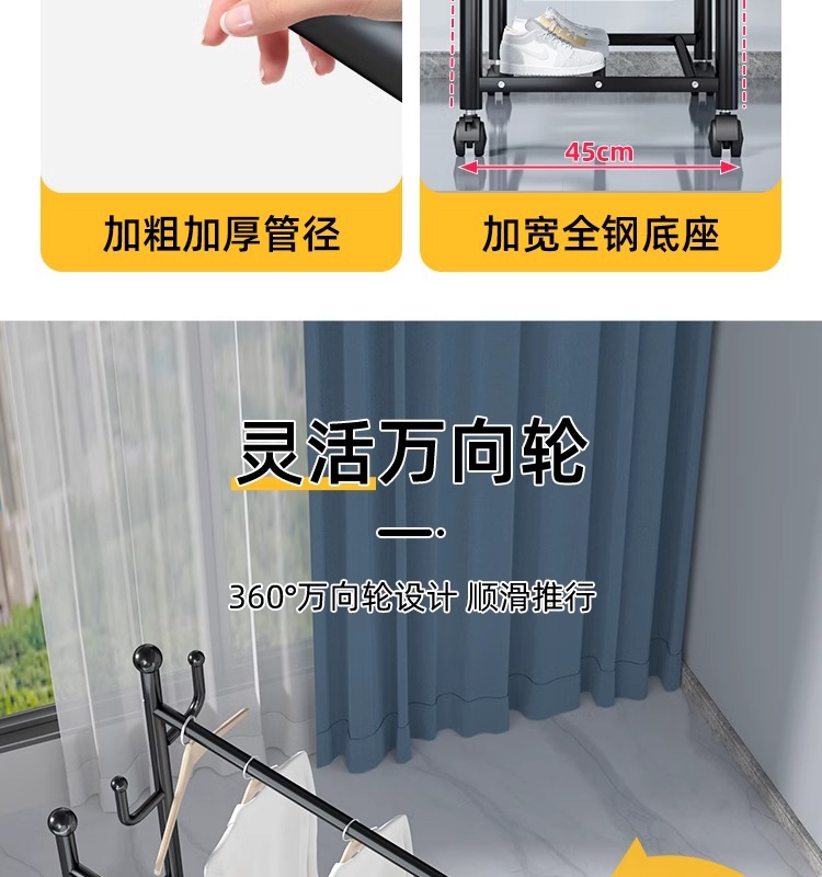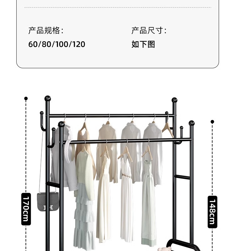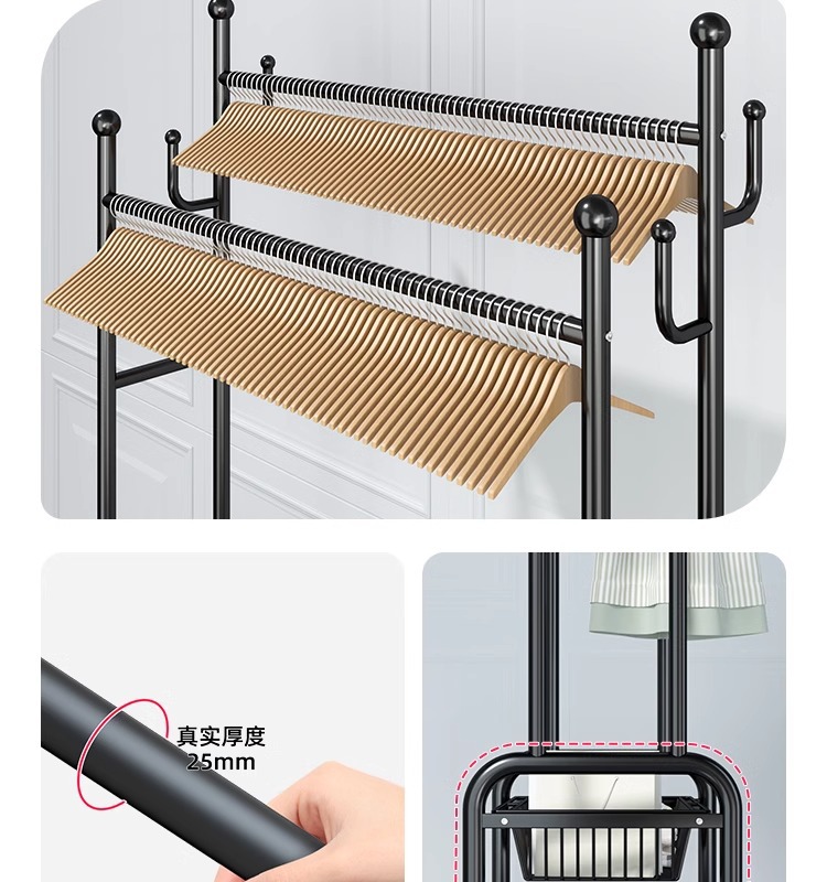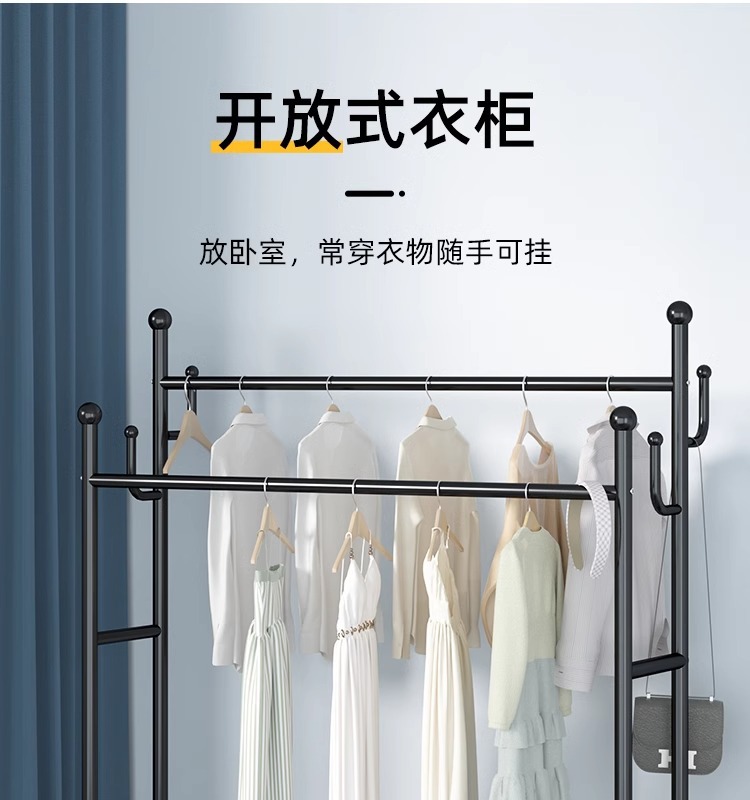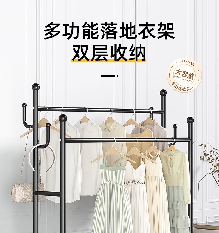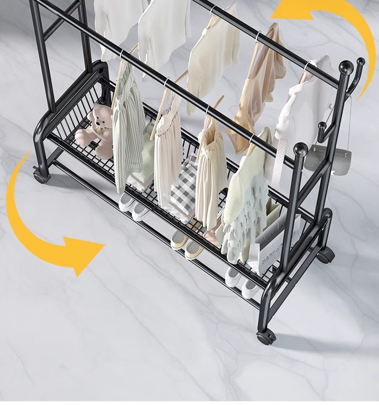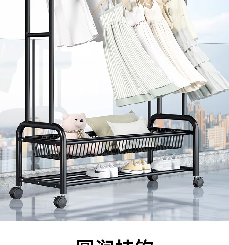 Percha de ropa simple y móvil de gran capacidad alta y baja percha de secado de doble poste de balcón percha de exhibición percha de ropa de alquiler percha de sombrero