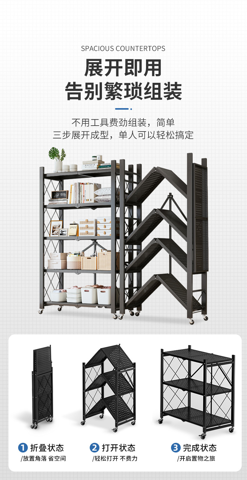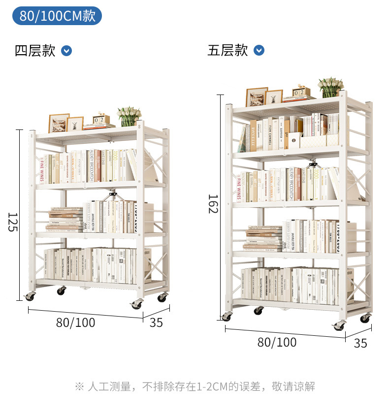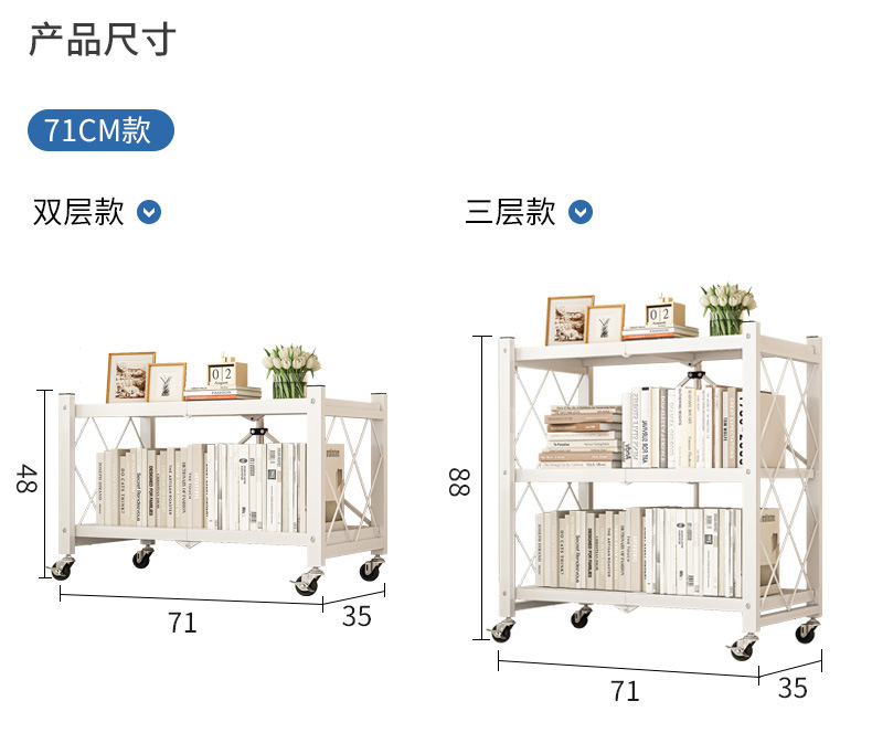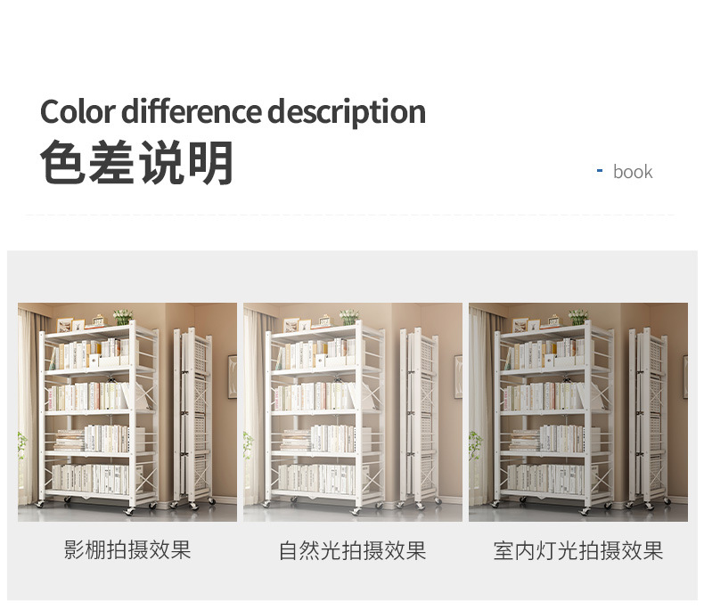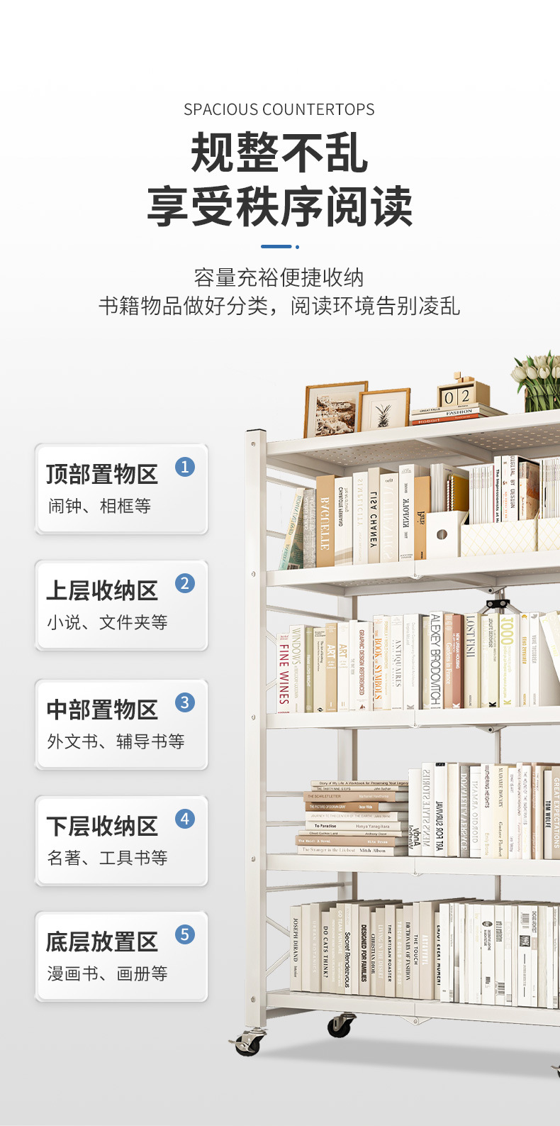 Estante de libros para niños Estante de almacenamiento de hierro forjado contra la pared Estante de almacenamiento de piso Estante de ruedas plegable móvil junto al escritorio