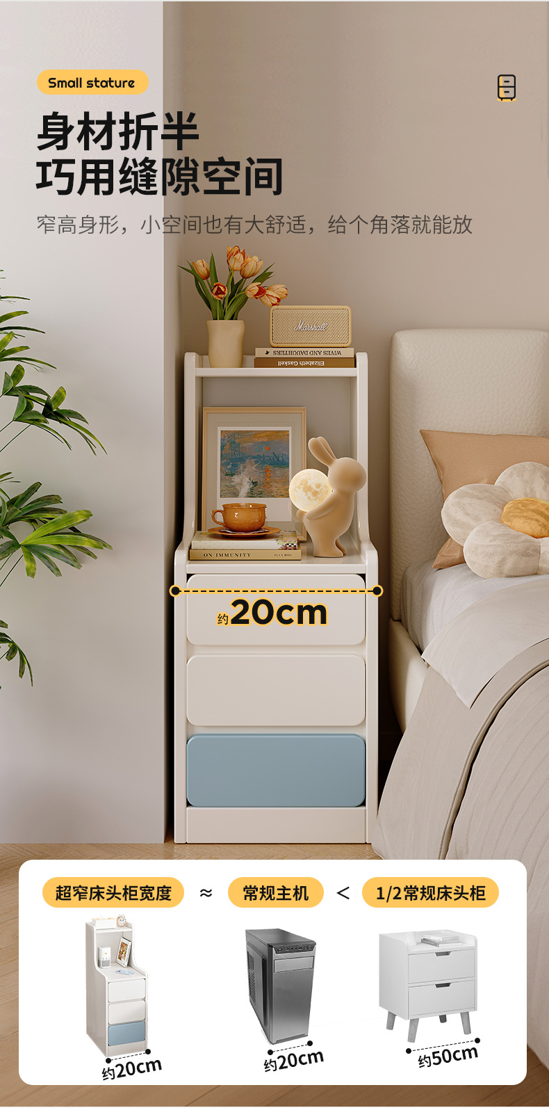Mini tablero de cabecera muy estrecho pequeño simple de 20 cm de gabinete estrecho de almacenamiento al lado de la cama pequeño gabinete de cabecera del dormitorio estante