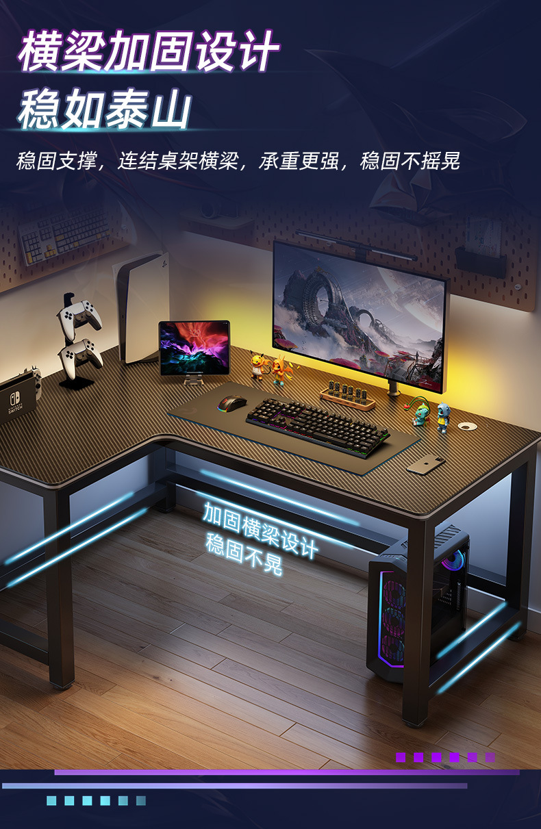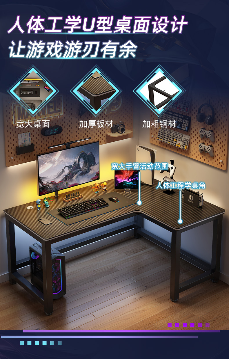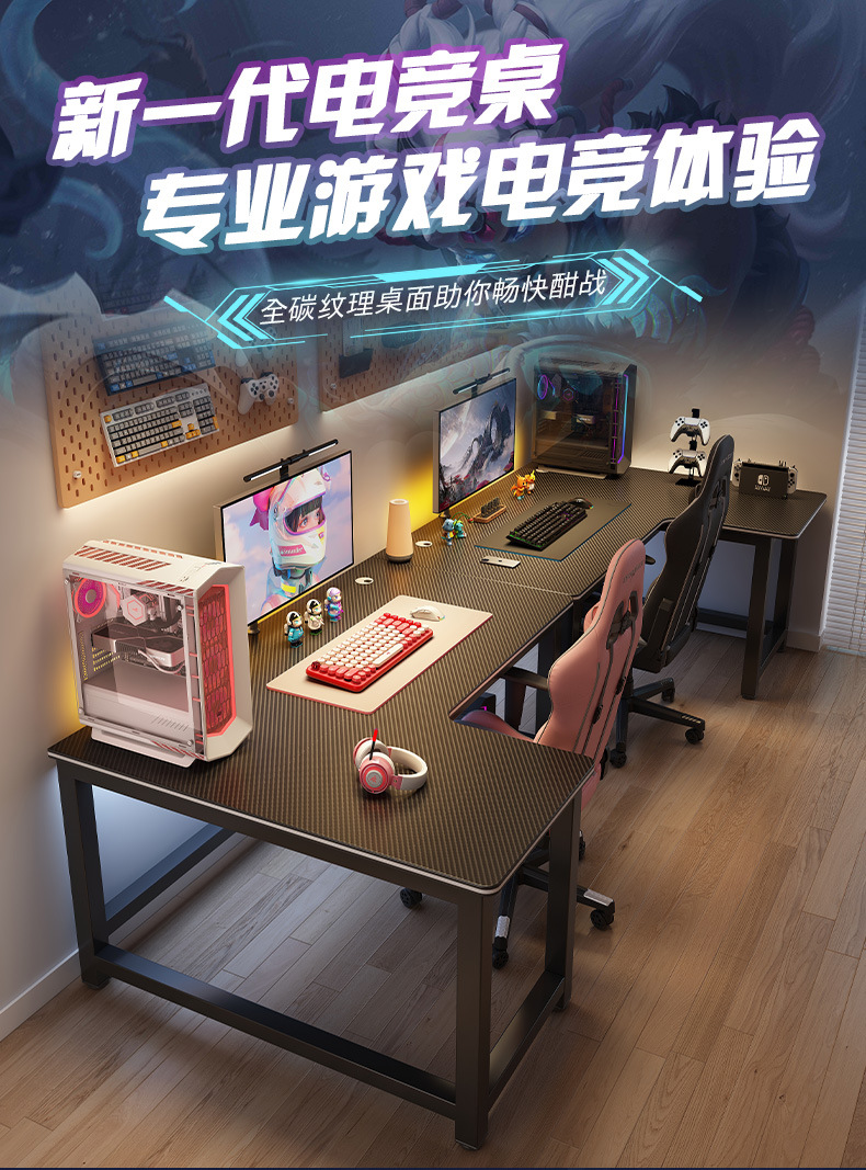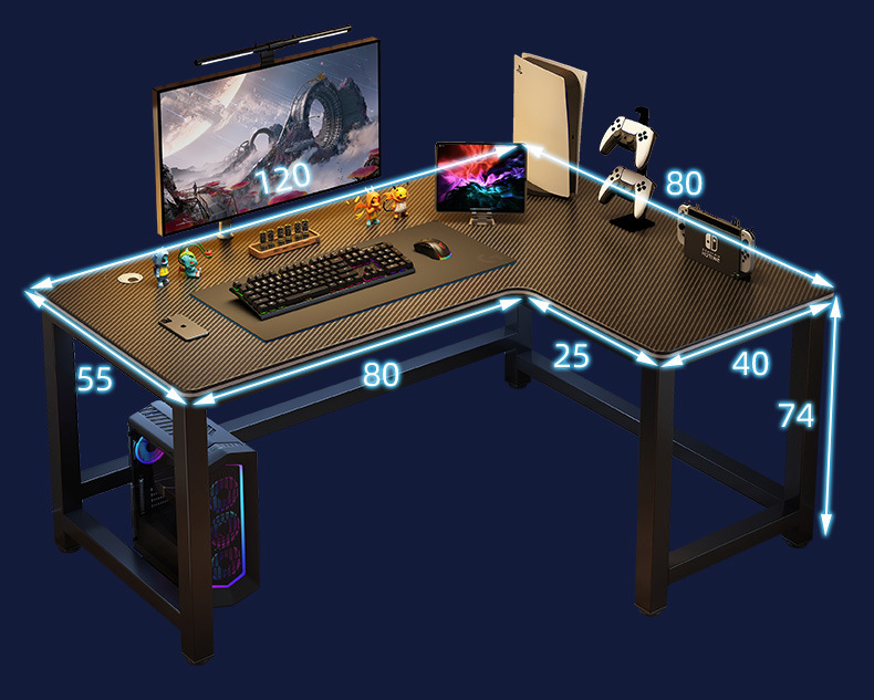 Mesa de computadora personalizada esquina doméstica L-shaped mesa de deporte de carbono escritorio