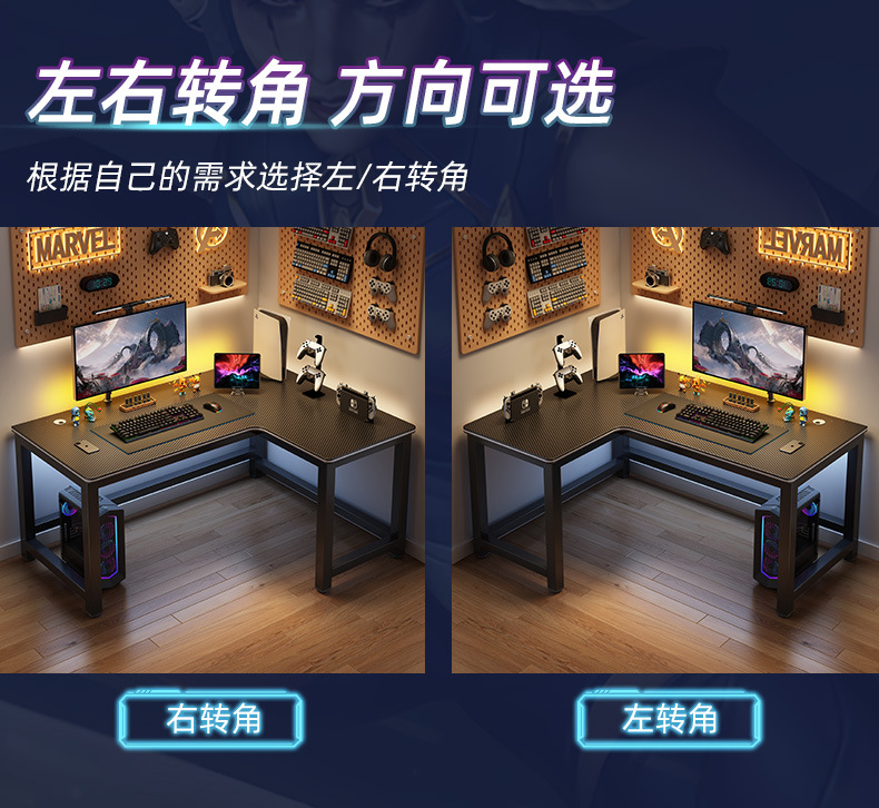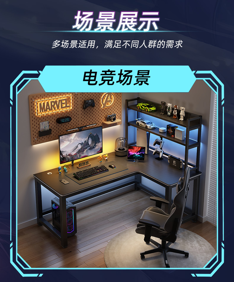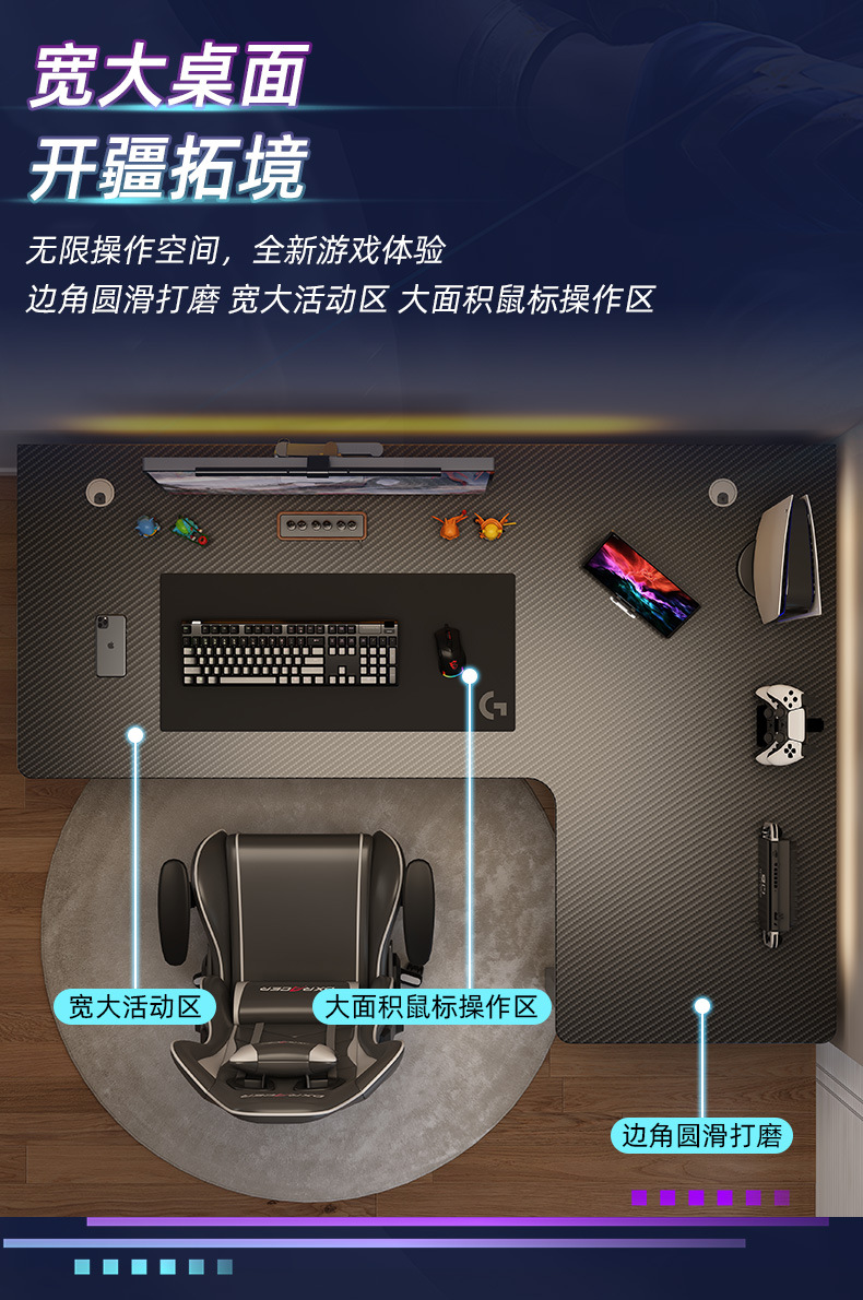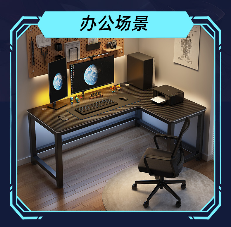Mesa de computadora personalizada esquina doméstica L-shaped mesa de deporte de carbono escritorio