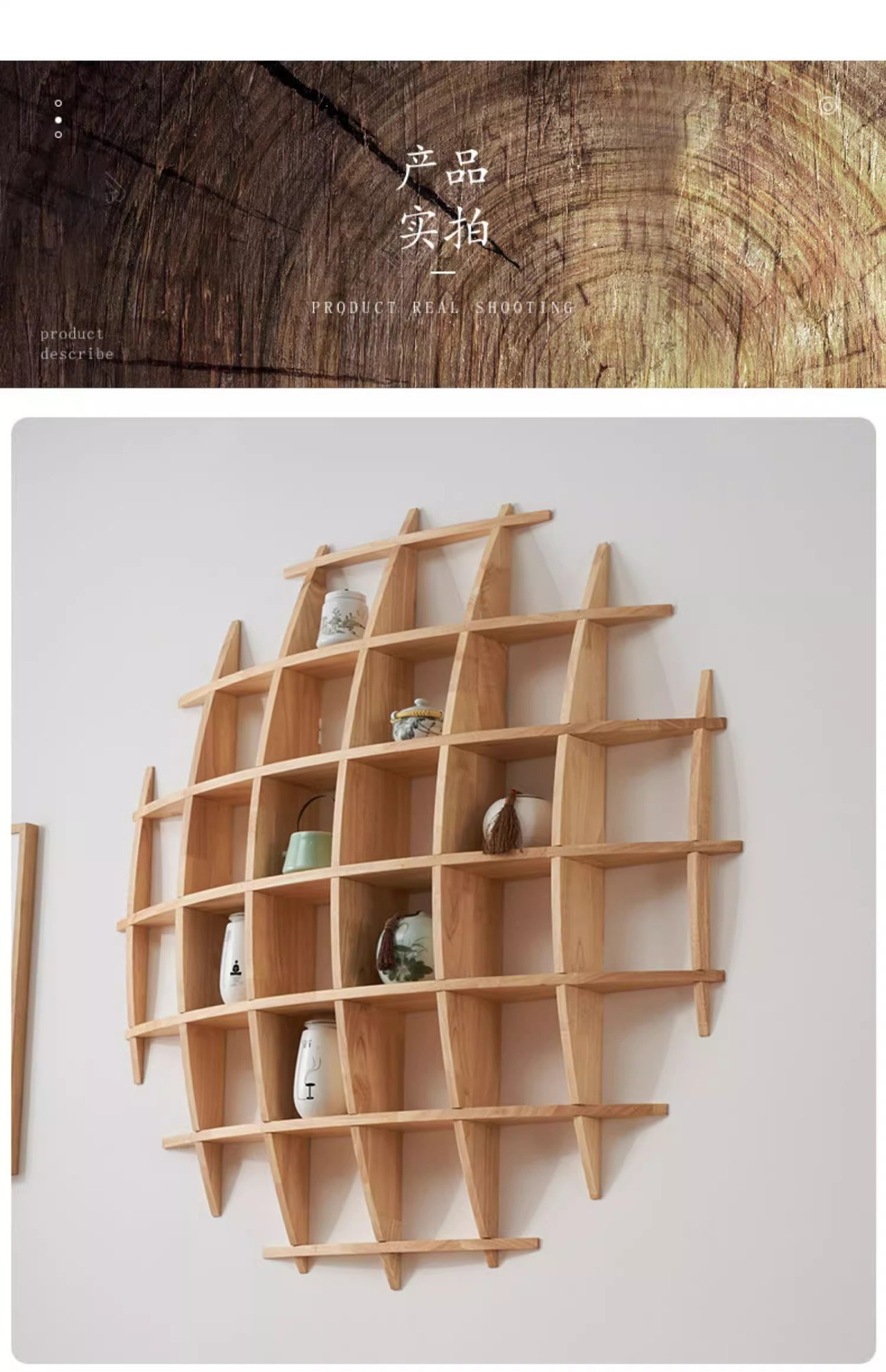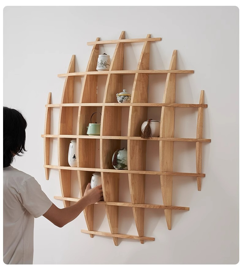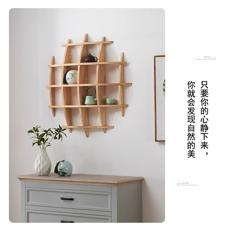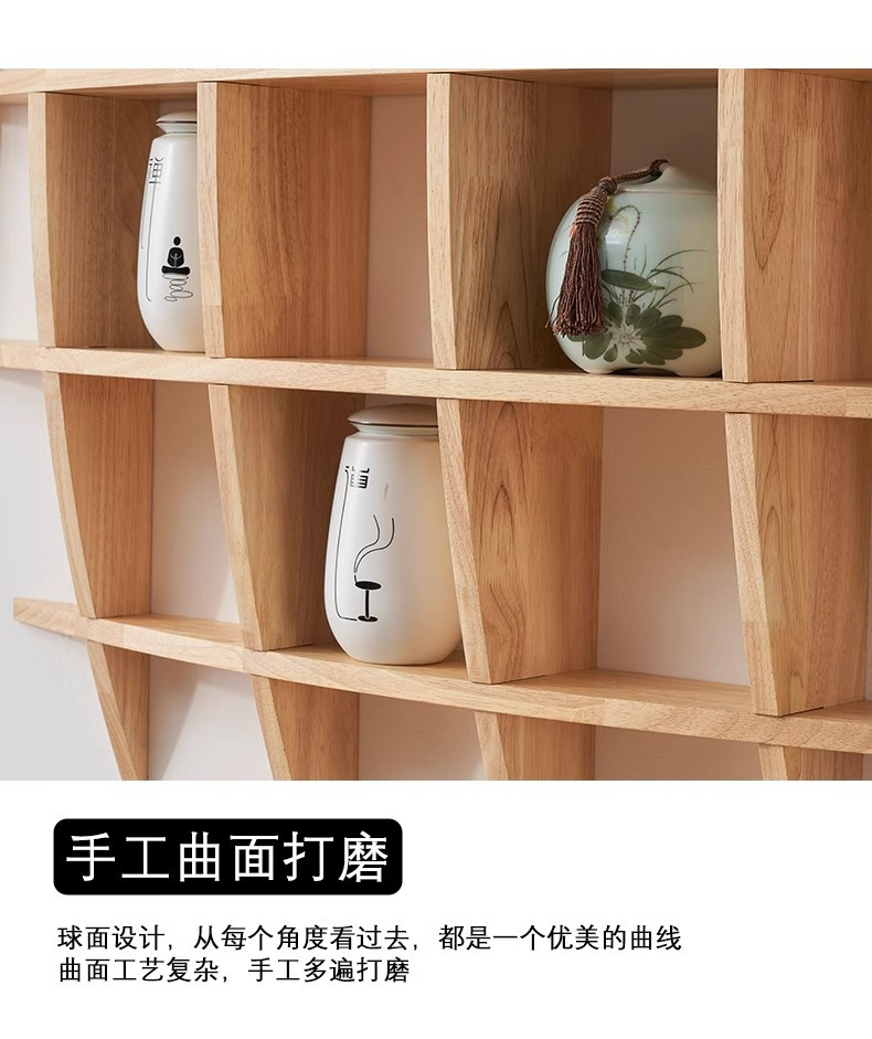 Taza de té de madera sólida Taza de té Estante de almacenamiento Estante de almacenamiento de pared de sala de té Estante de almacenamiento Duobao Pavilion Bo Gu estante de pared de rejilla