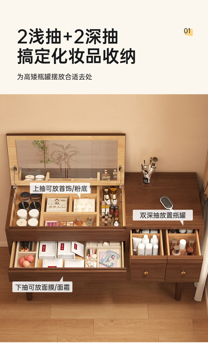 Tocador de madera maciza dormitorio moderno apartamento pequeño simple almacenamiento de maquillaje gabinete integrado nuevo escritorio plegable mesa de maquillaje