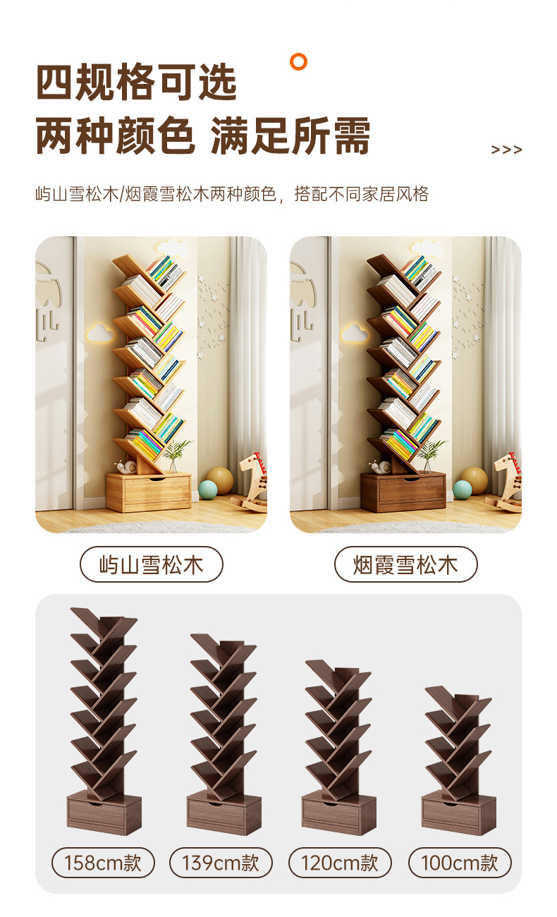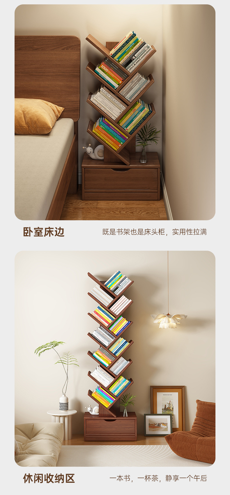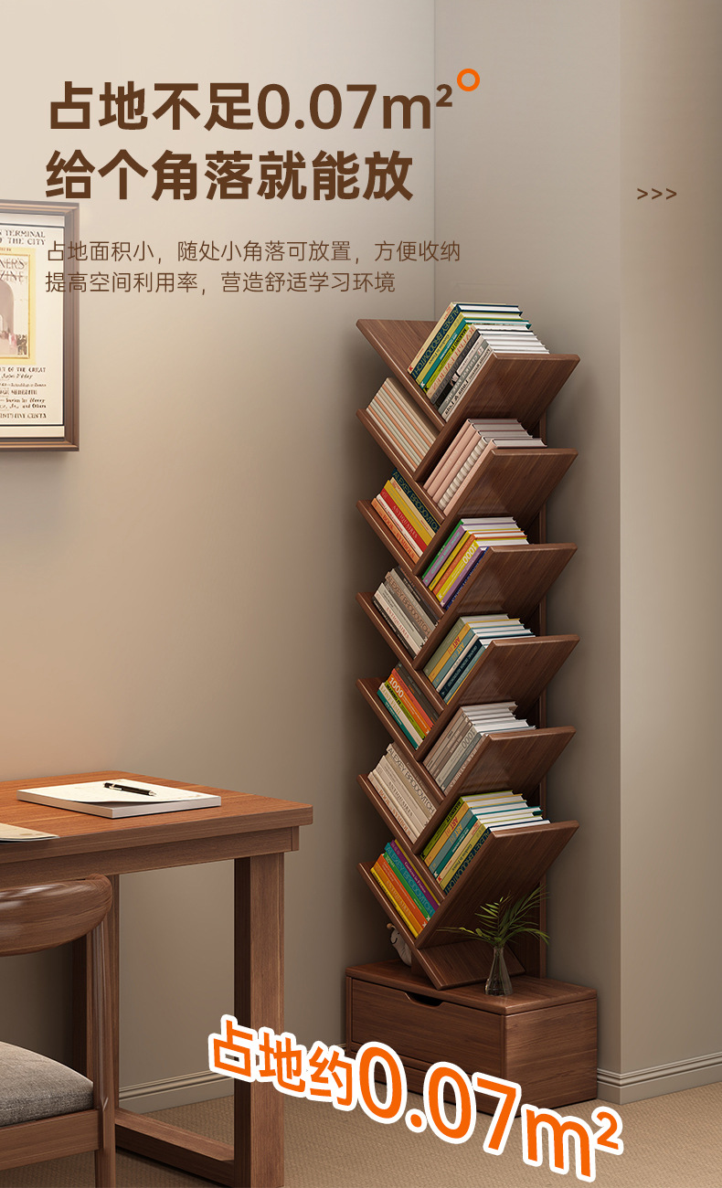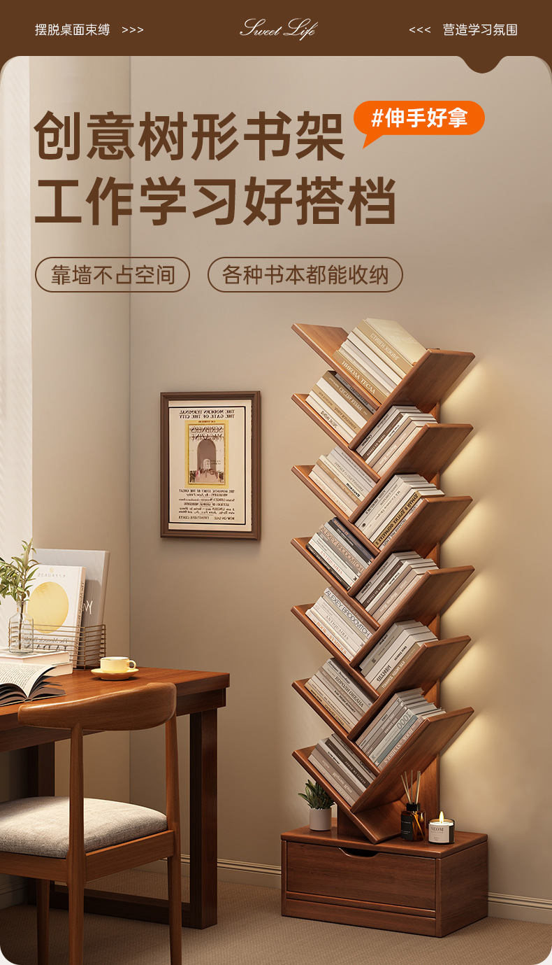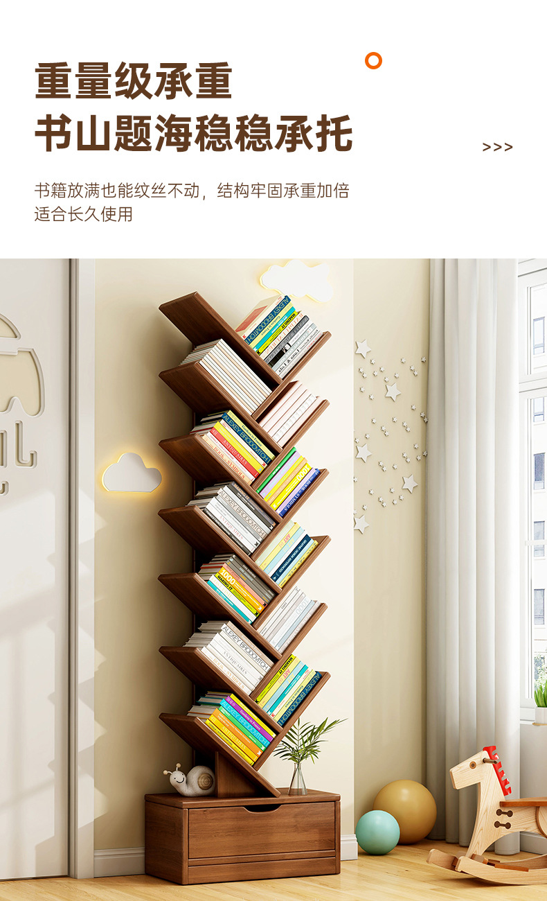 Estantería en forma de árbol Estante de piso Estante de madera maciza Estante vertical simple Esquina de la sala de estar Estante de almacenamiento de libros integrado contra la pared