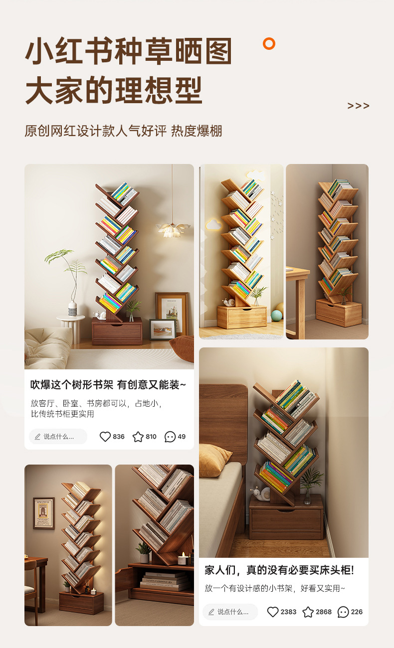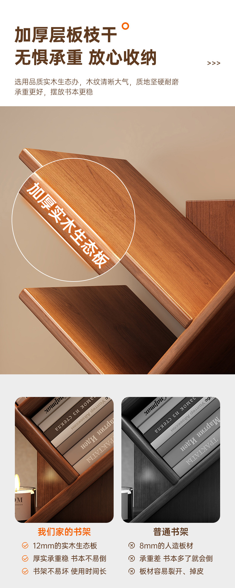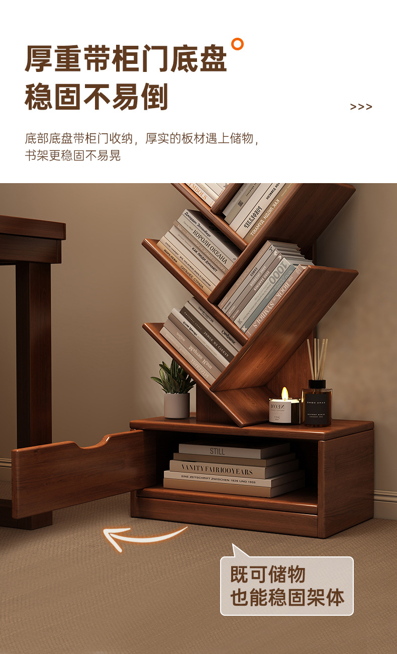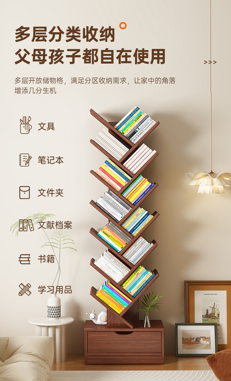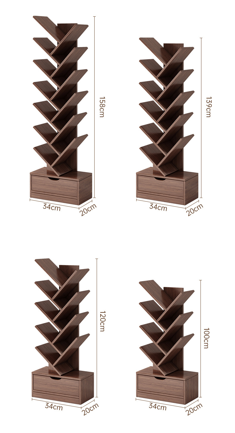 Estantería en forma de árbol Estante de piso Estante de madera maciza Estante vertical simple Esquina de la sala de estar Estante de almacenamiento de libros integrado contra la pared