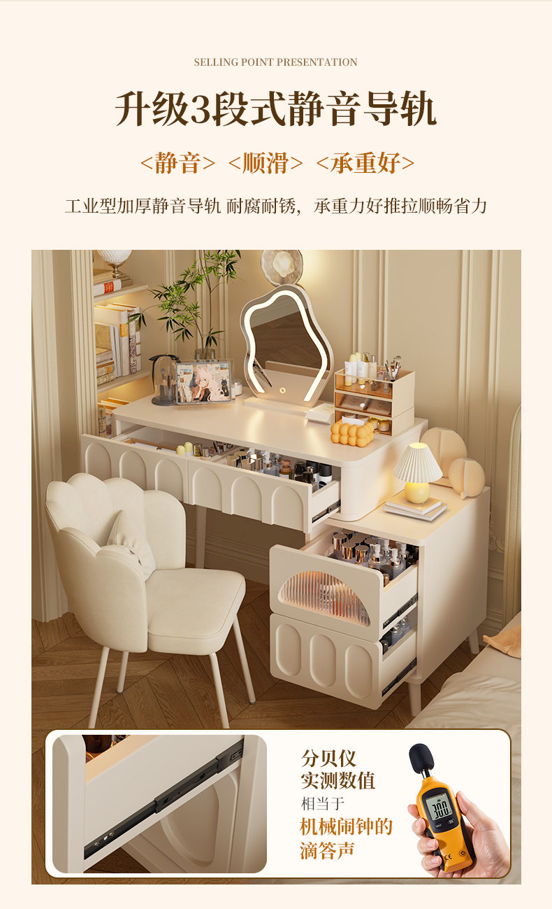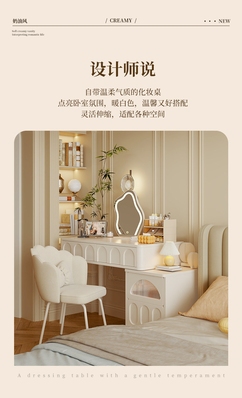 Comedor de estilo crema dormitorio moderno y simple 2025 nuevo pequeño alquiler de escritorio de niñas mesa de almacenamiento de maquillaje