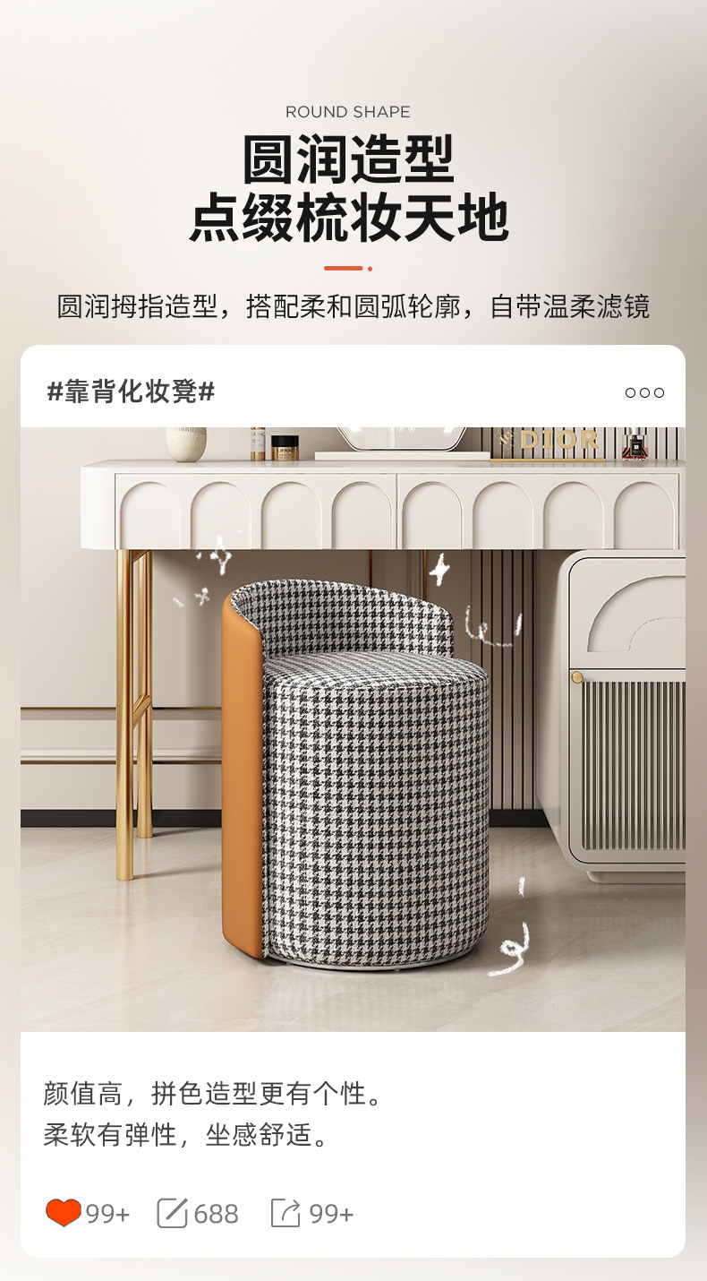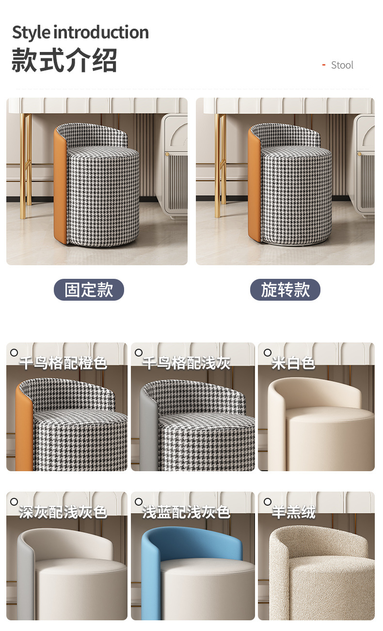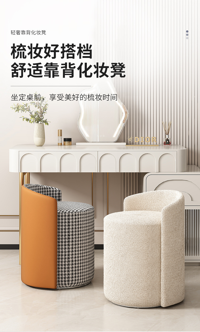 Maquillaje taburete silla niñas moderno simple avanzada lana de cordero Internet celebridad fotografía vestidor taburete guardarropa silla taburete redondo