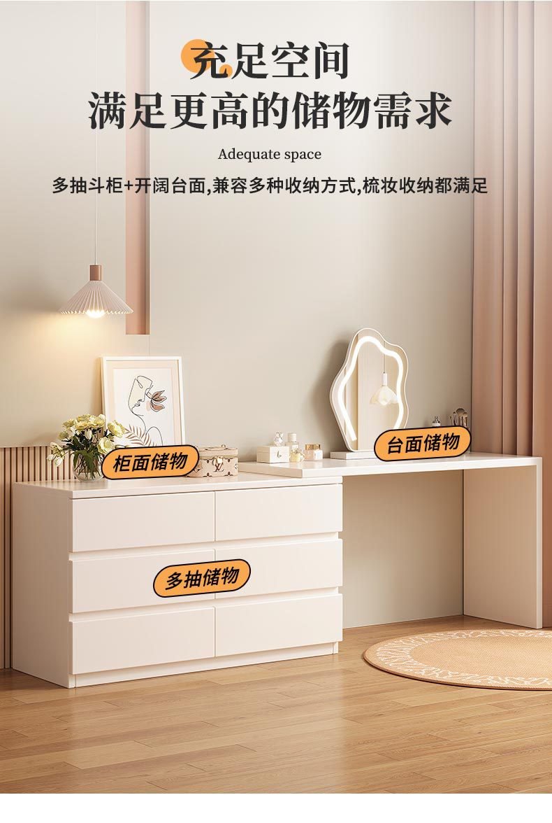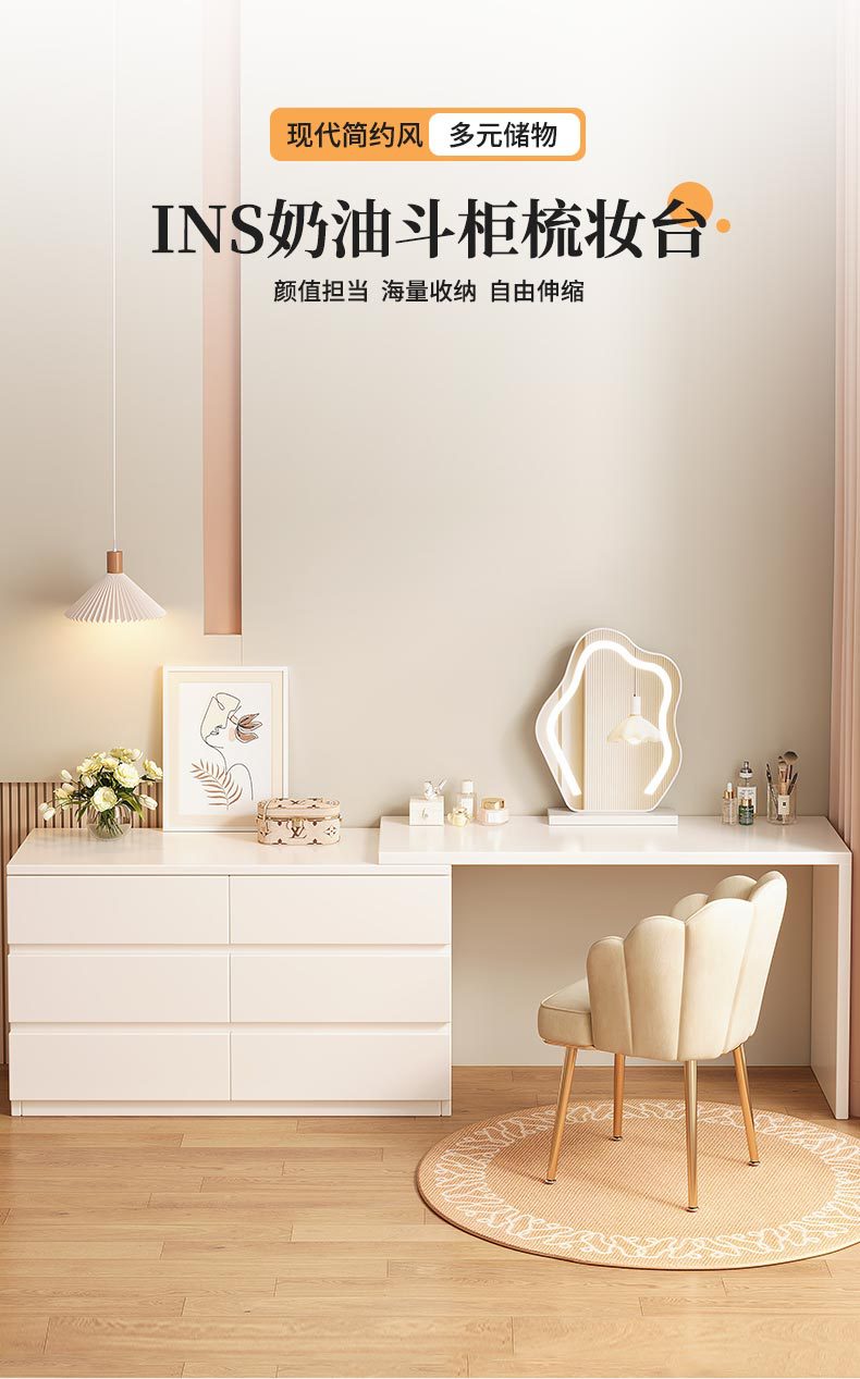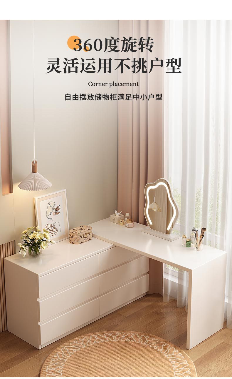 Mesa de maquillaje moderna y simple multifuncional dormitorio armario de esquina integrado armario retráctil al final de la cama mostrador de almacenamiento