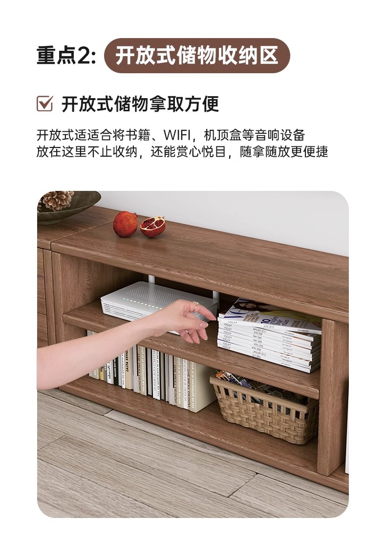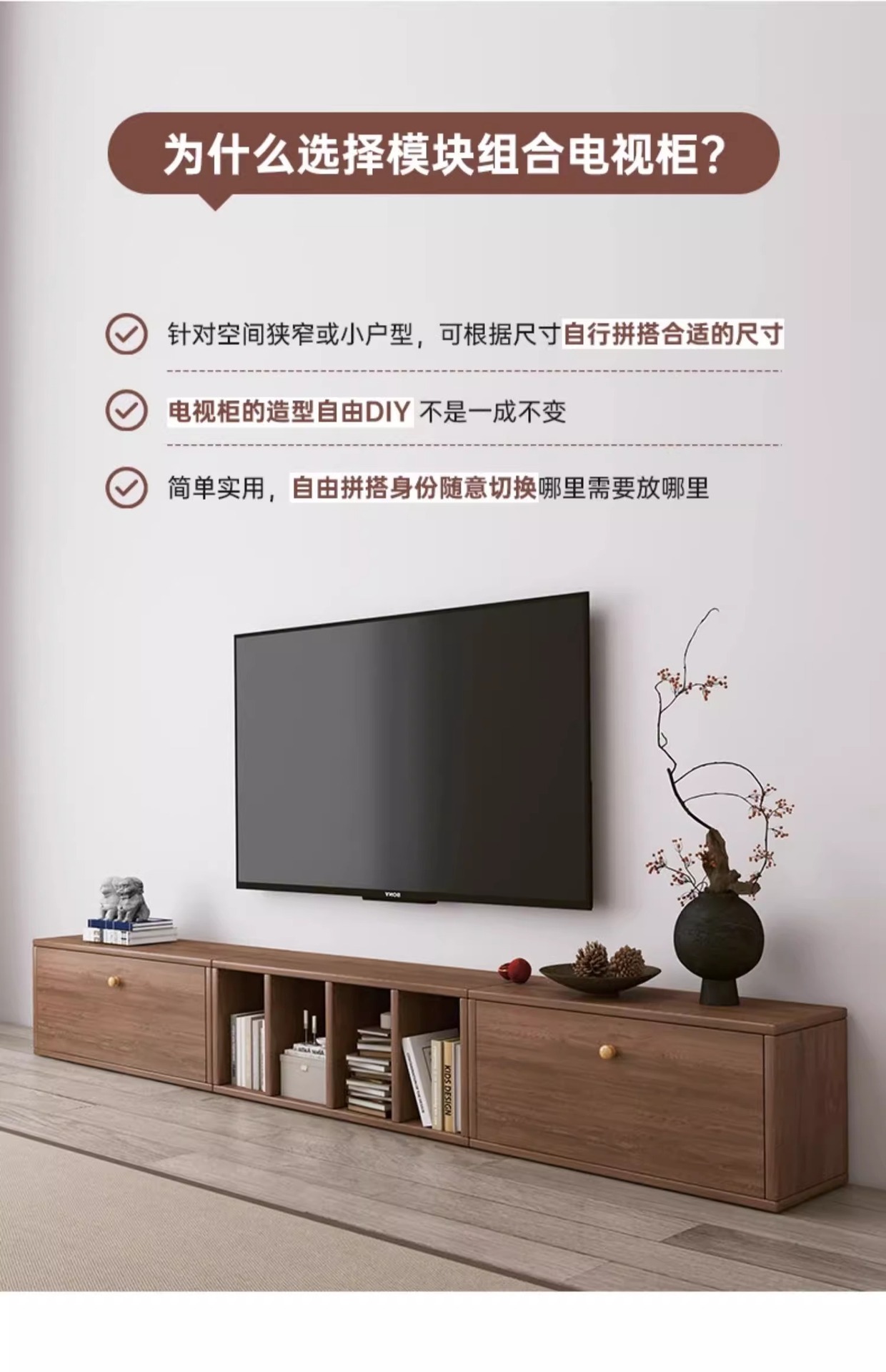 Mueble de TV de madera maciza ecológica para sala de estar, mueble de almacenamiento para el hogar, mueble de TV integrado de pared o de pie para apartamentos pequeños.