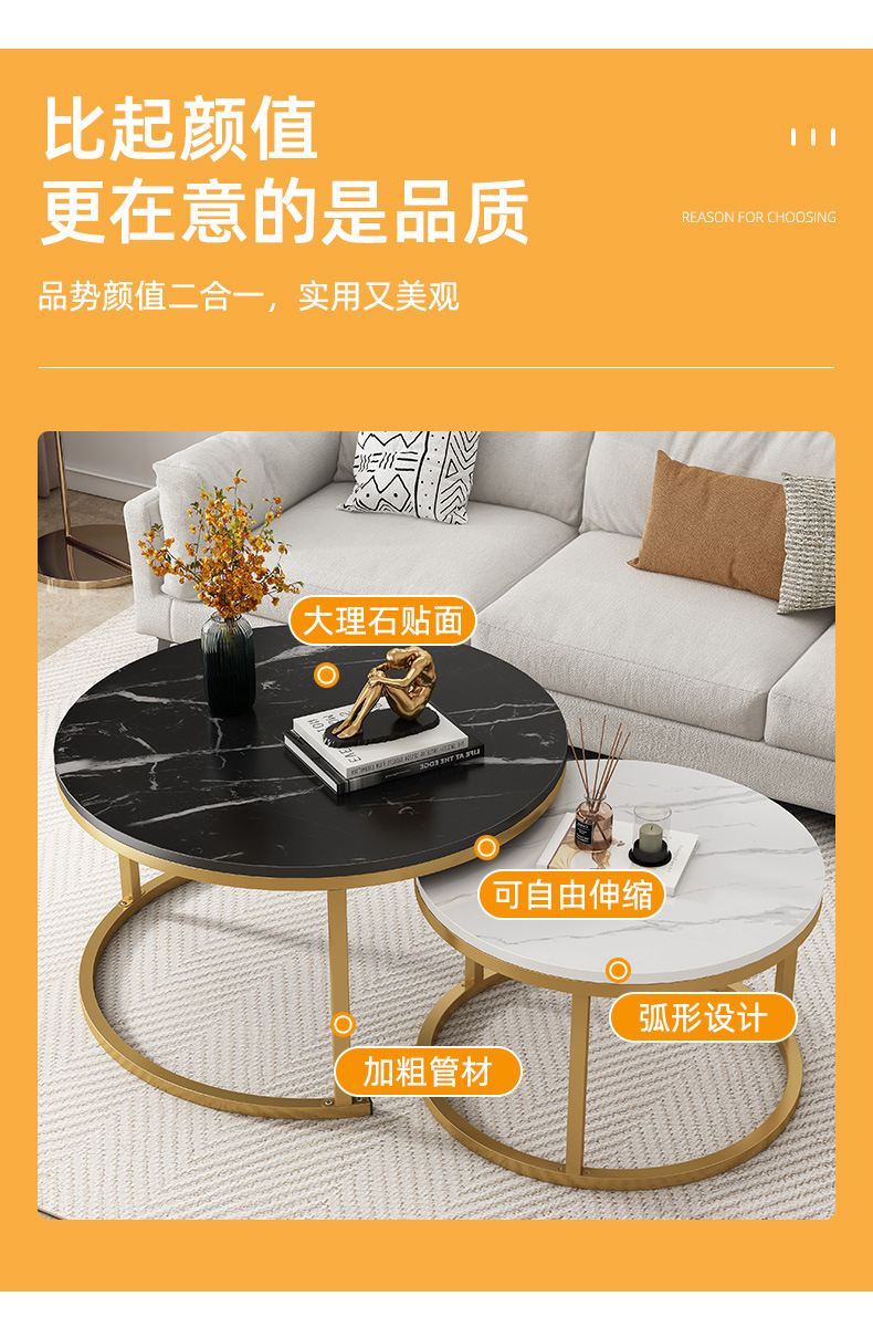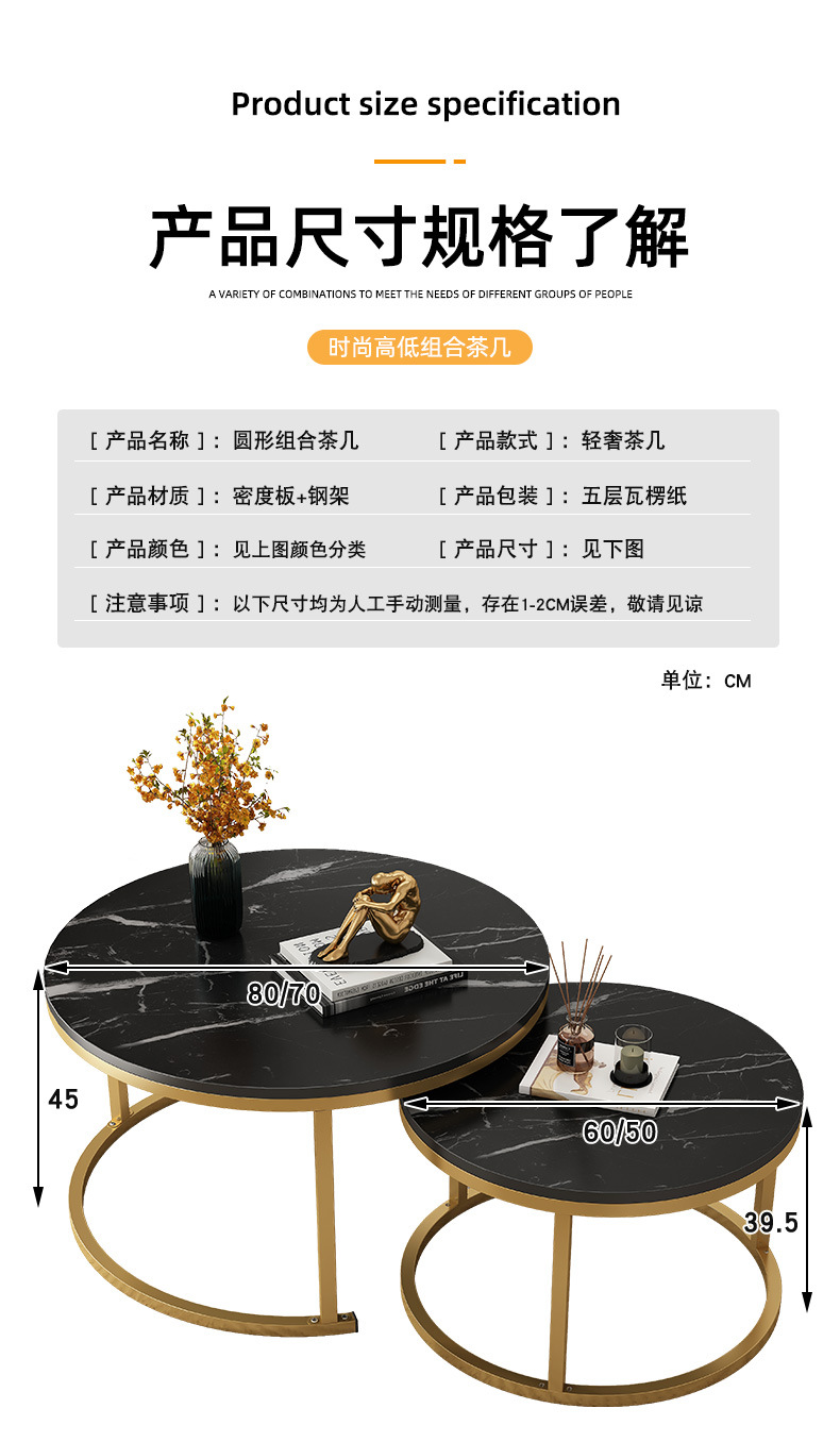 Mesa de té sala de estar pequeña casa de lujo ligera combinación retráctil sofá lado de salón balcón simple mesa redonda