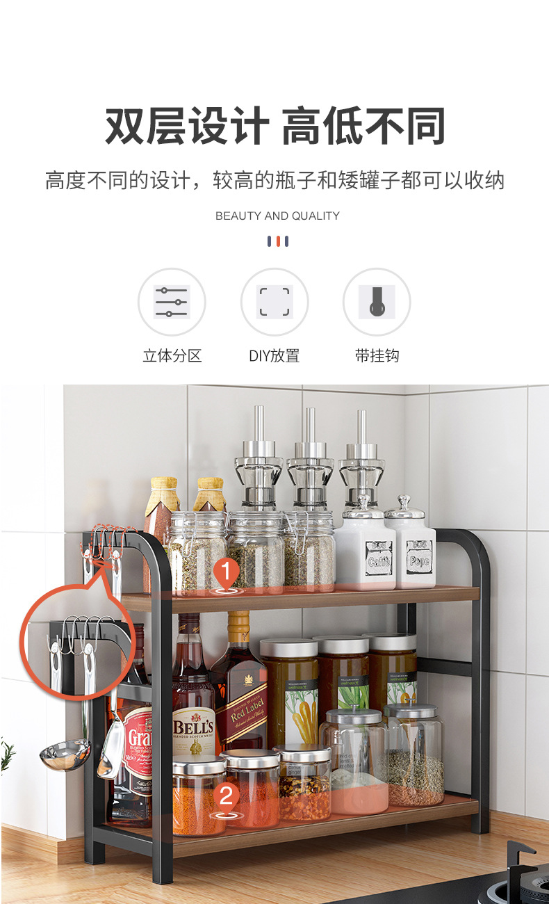 Estante de la cocina condimento estante Mesa salsa botella condimento aceite sal salsa vinagre estante de almacenamiento suministros hogar Colección Completa