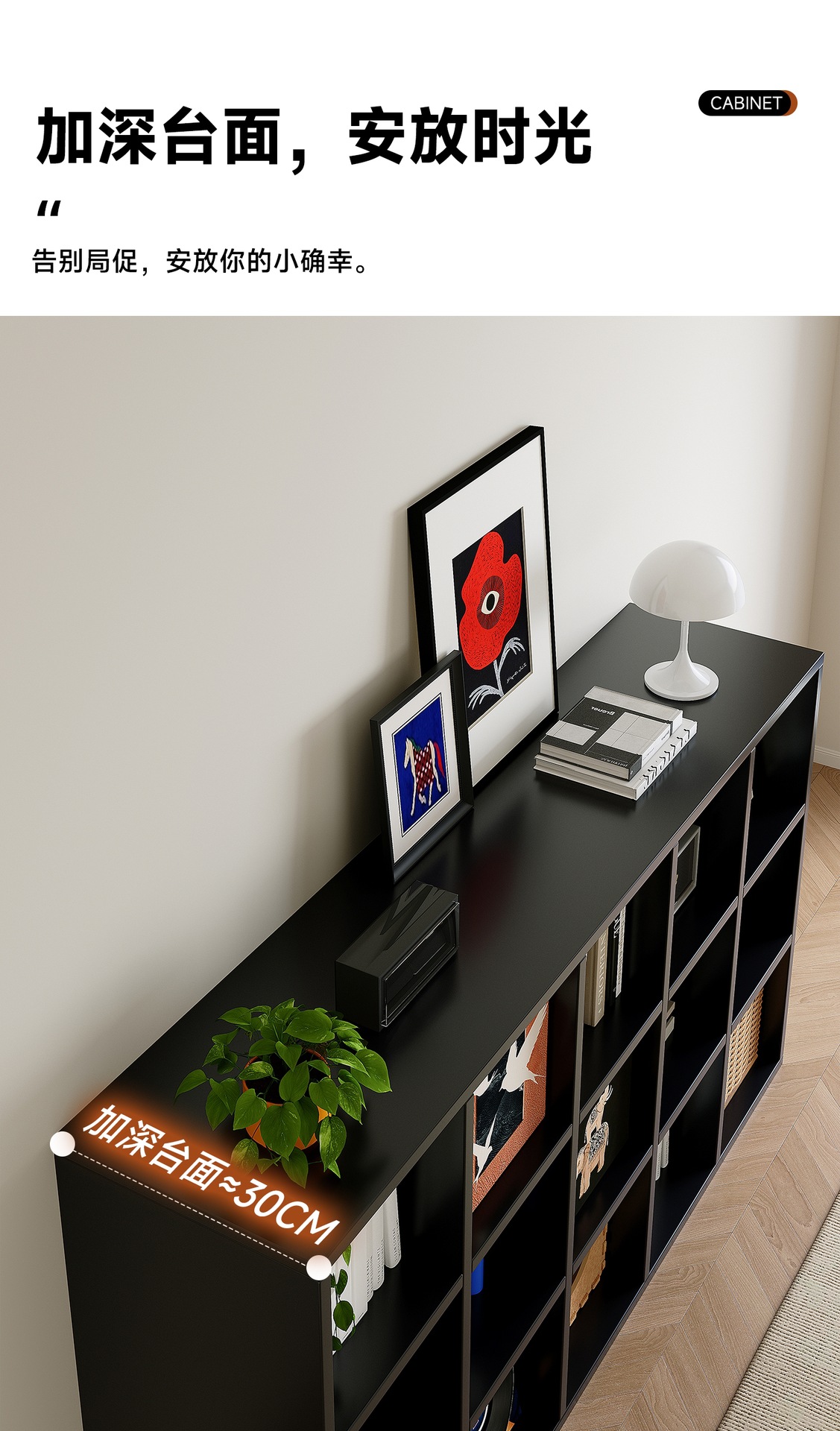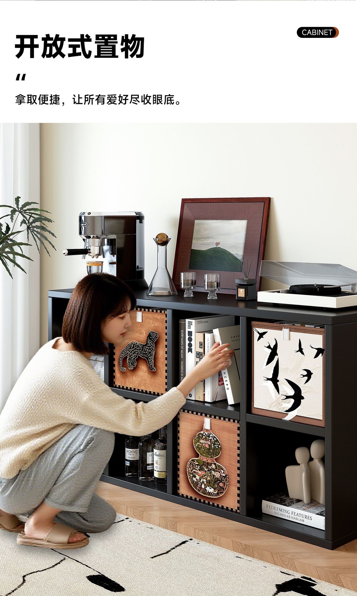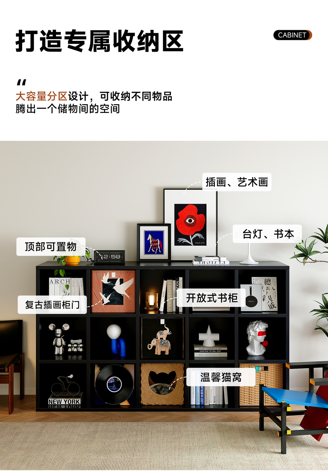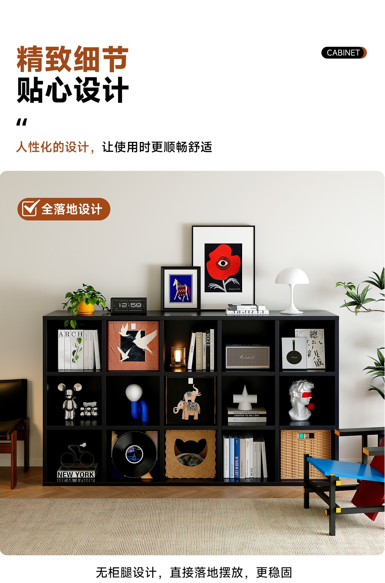 Gabinete de cuadrillas de madera sólida negra, estante de libros Carlake, estante de almacenamiento, armario de almacenamiento bajo, piso de ocho cuadrillas