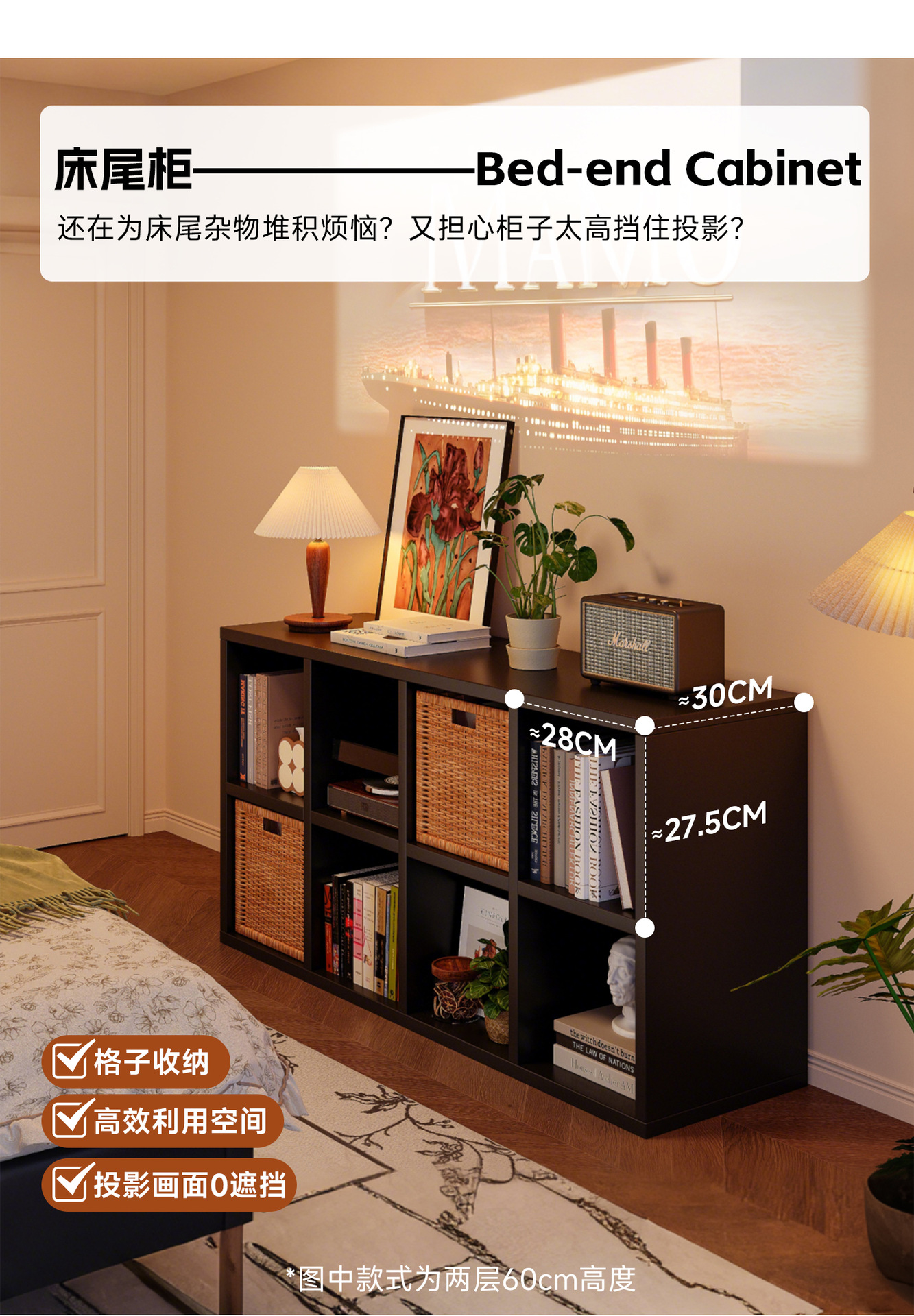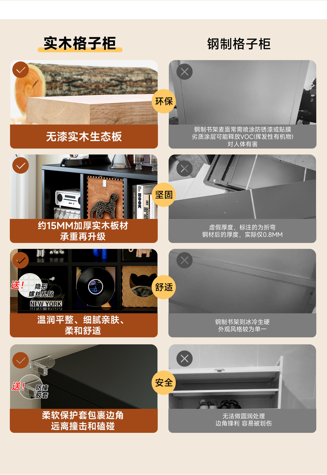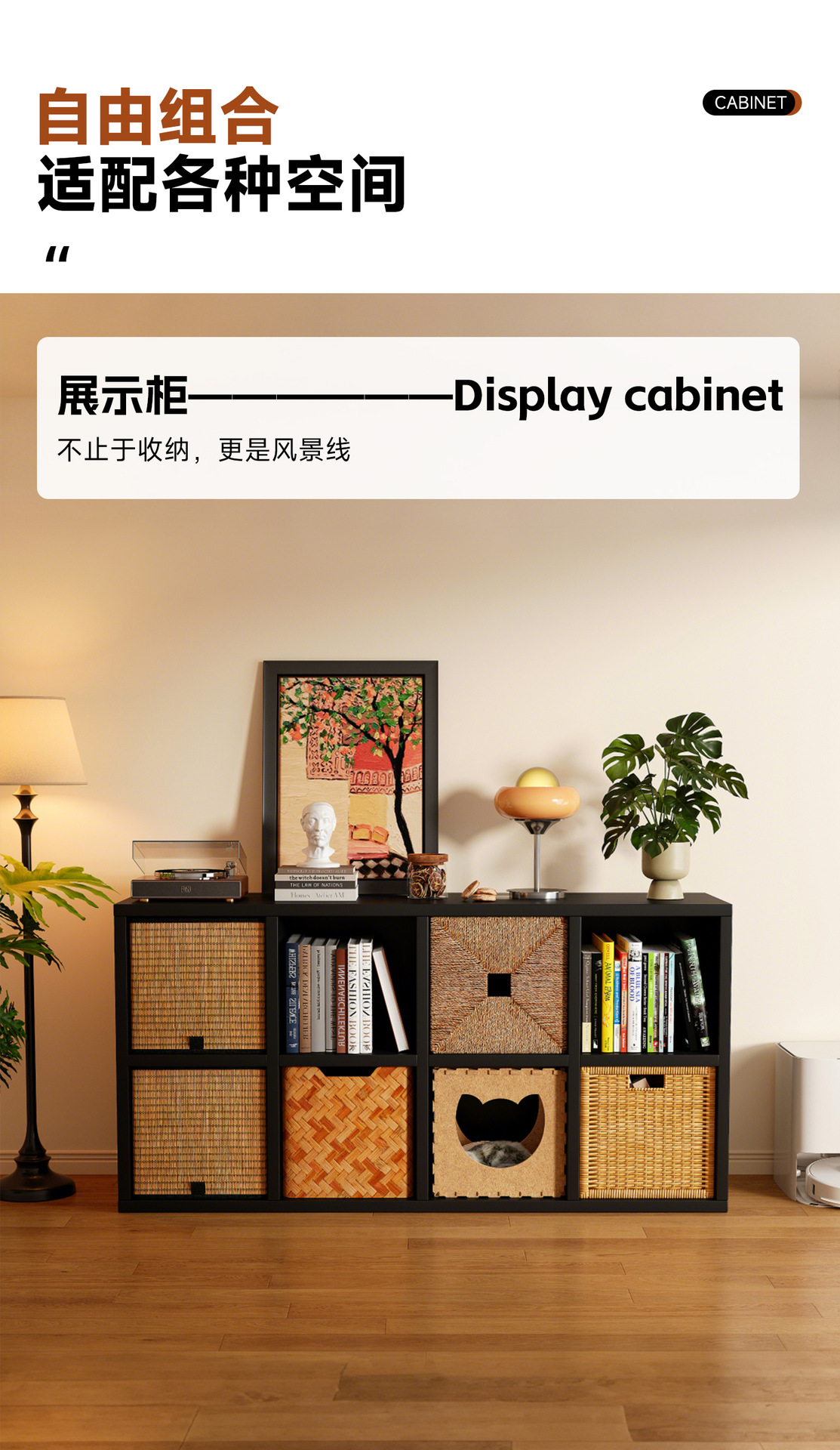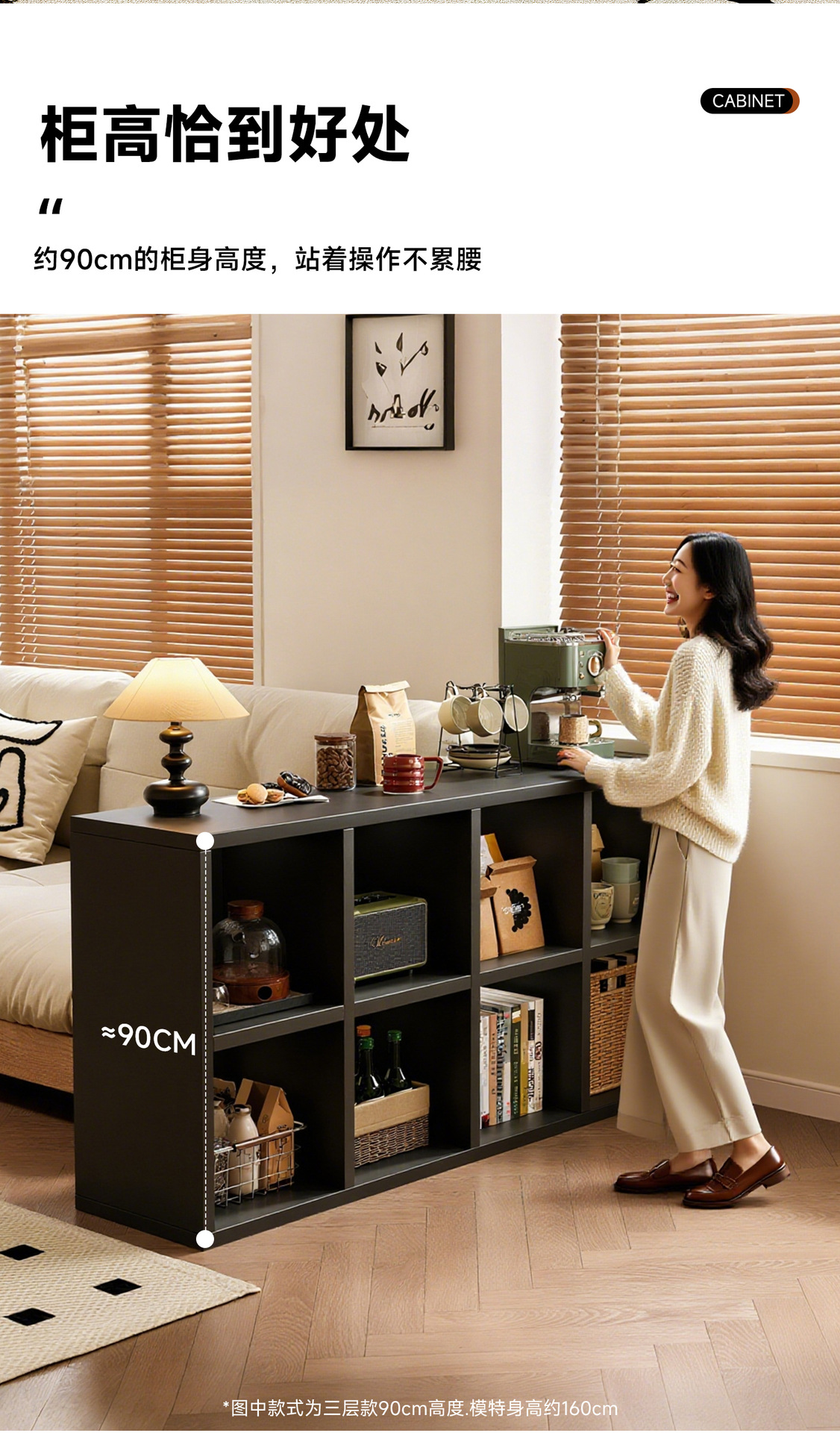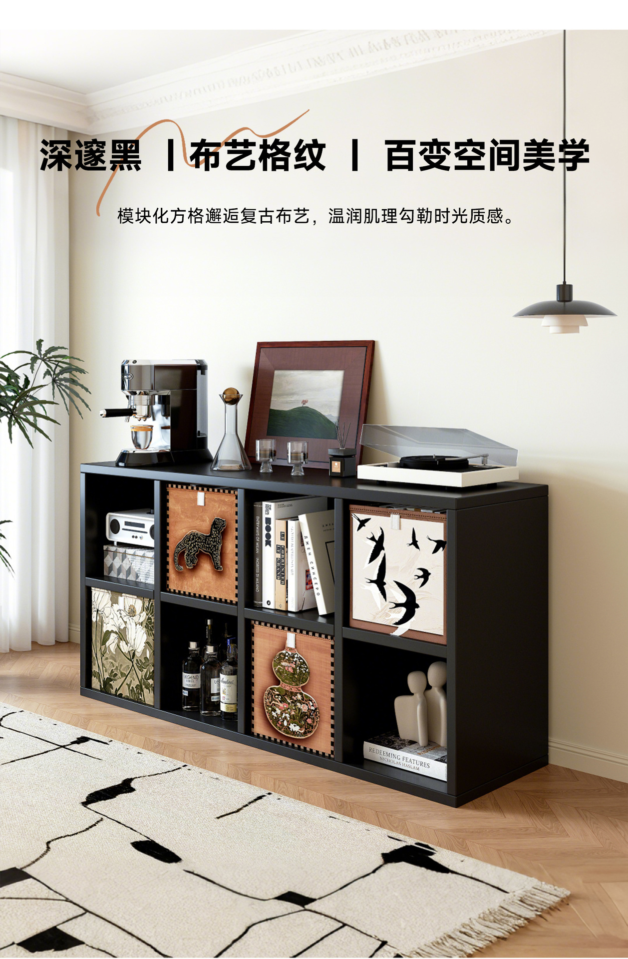 Gabinete de cuadrillas de madera sólida negra, estante de libros Carlake, estante de almacenamiento, armario de almacenamiento bajo, piso de ocho cuadrillas