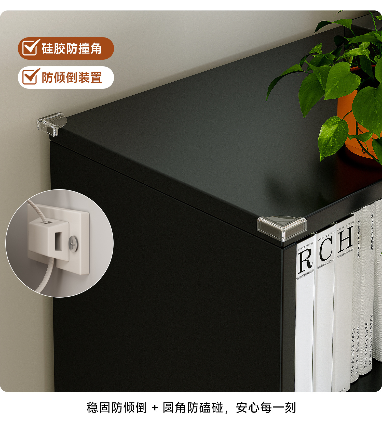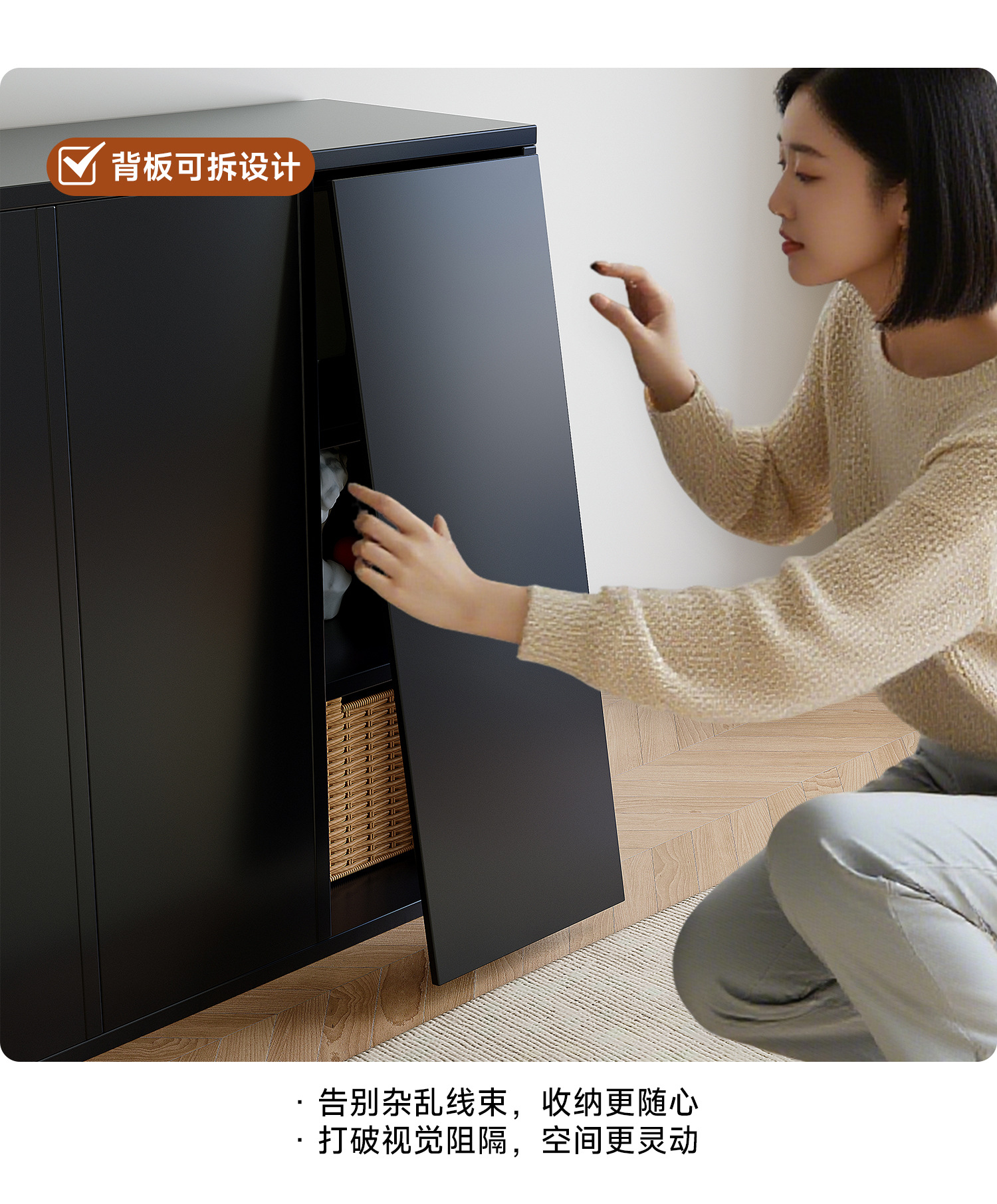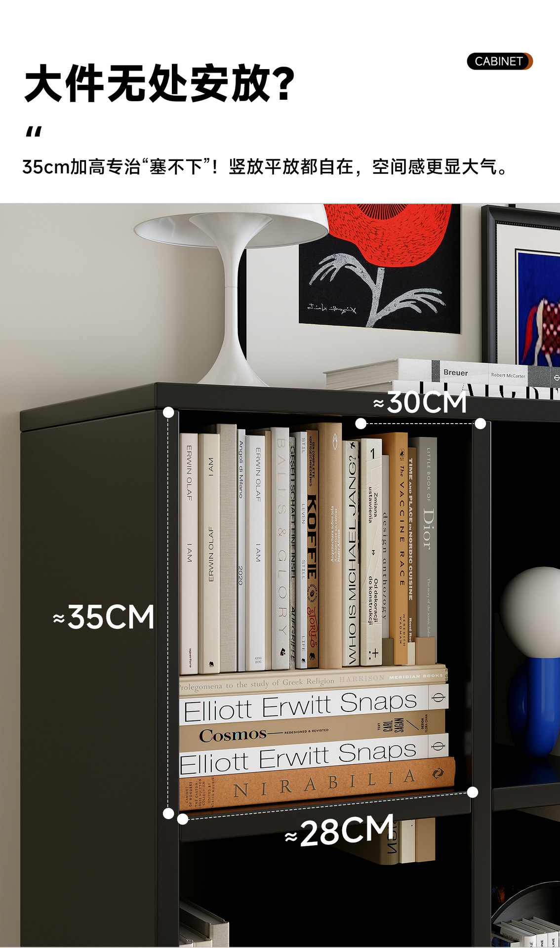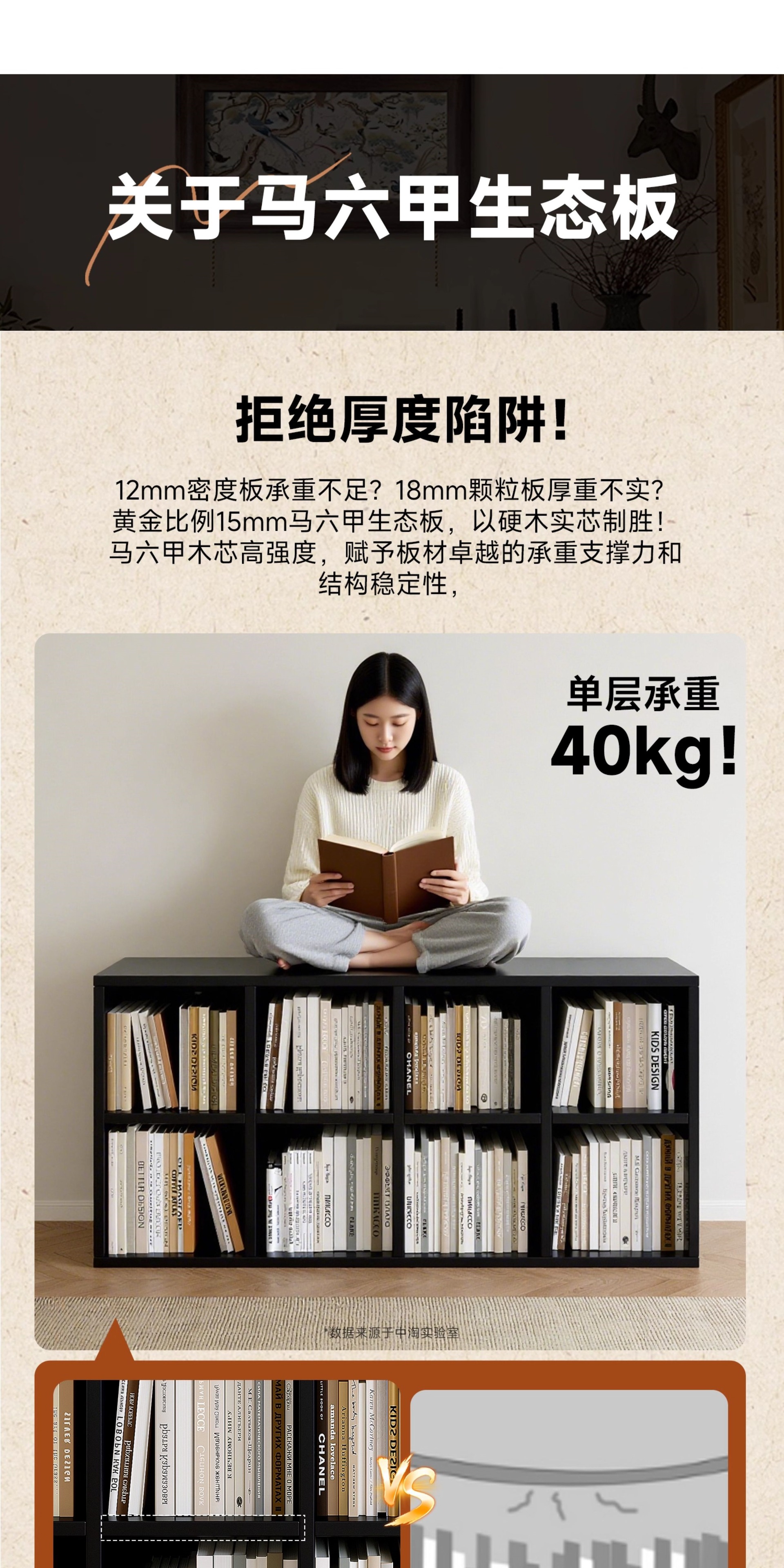 Gabinete de cuadrillas de madera sólida negra, estante de libros Carlake, estante de almacenamiento, armario de almacenamiento bajo, piso de ocho cuadrillas
