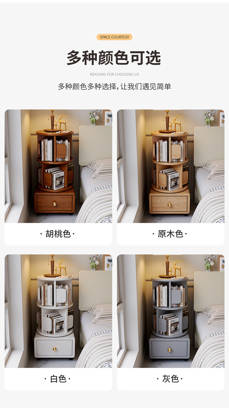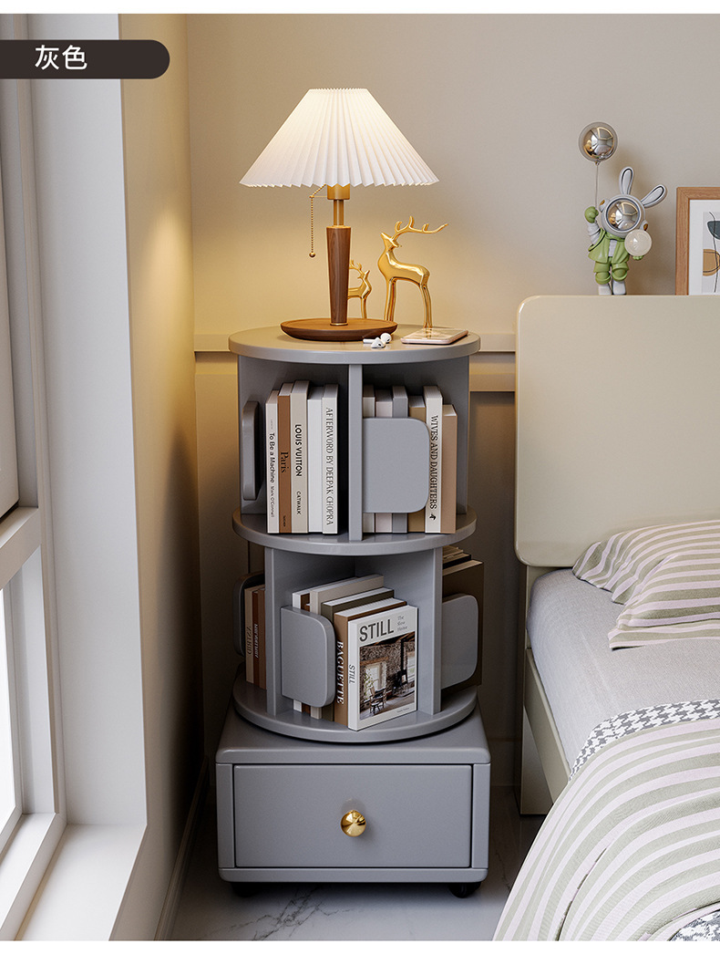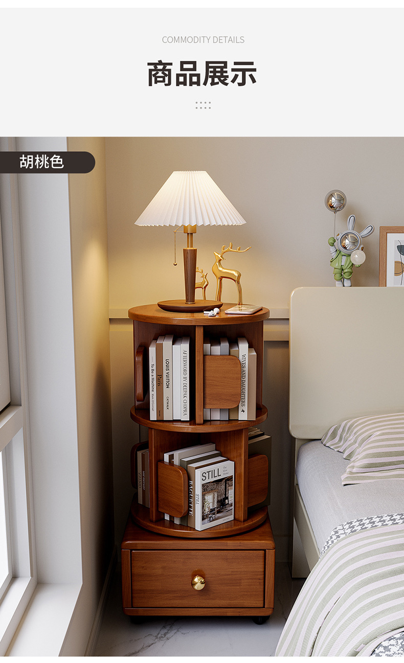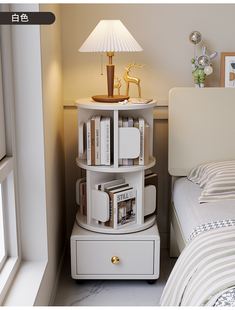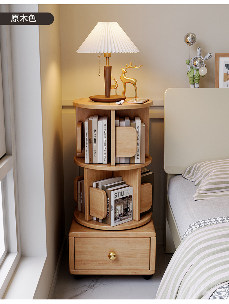 Estante de libros giratorio de madera sólida móvil con ruedas dormitorio para niños librería simple almacenar armario de cabecera armario de almacenamiento
