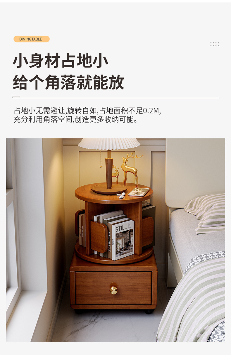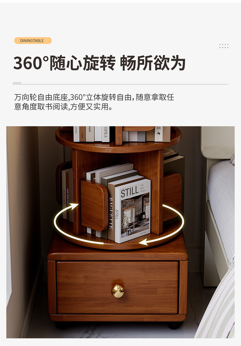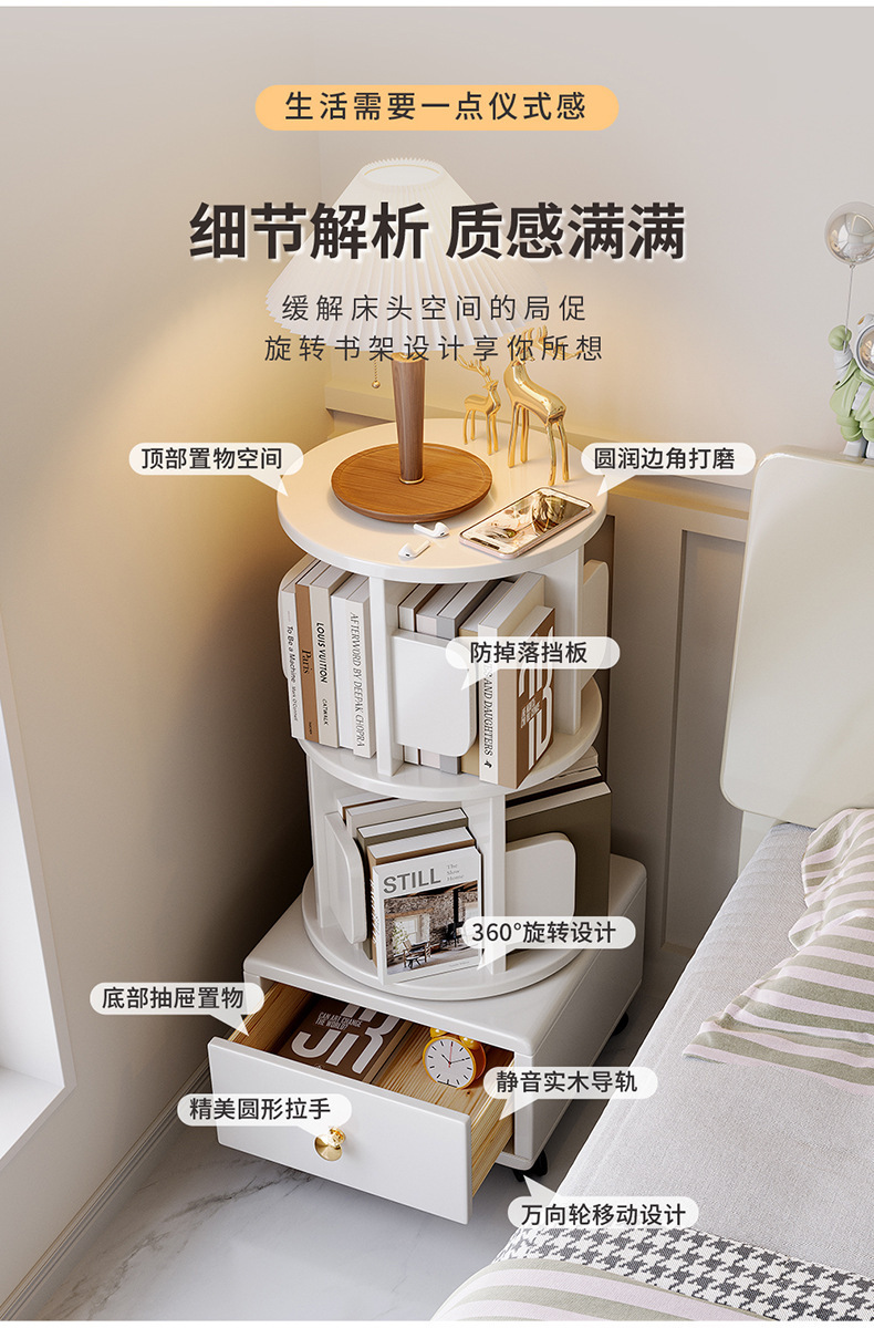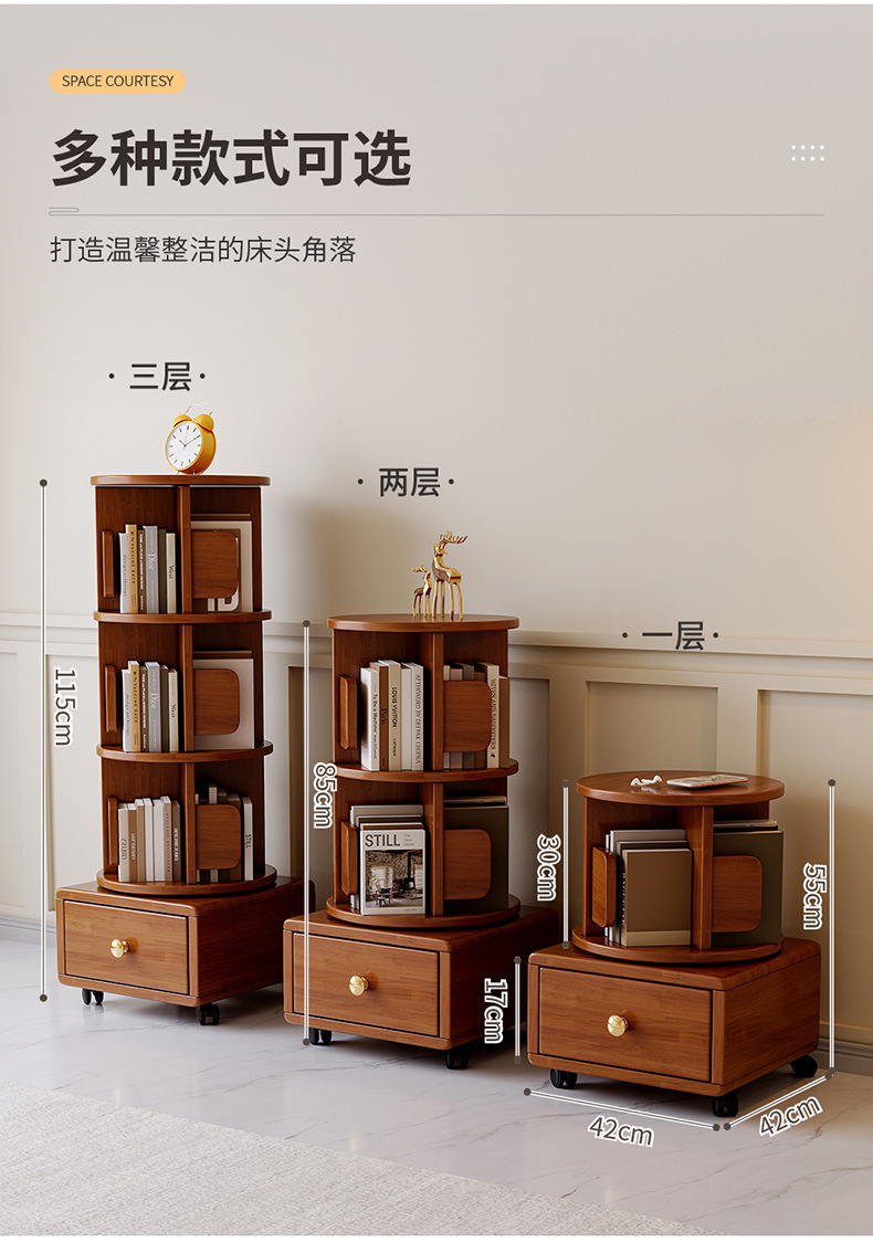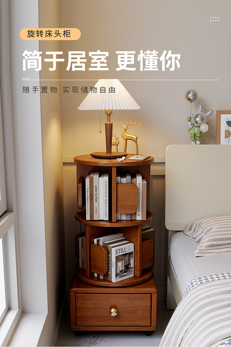 Estante de libros giratorio de madera sólida móvil con ruedas dormitorio para niños librería simple almacenar armario de cabecera armario de almacenamiento