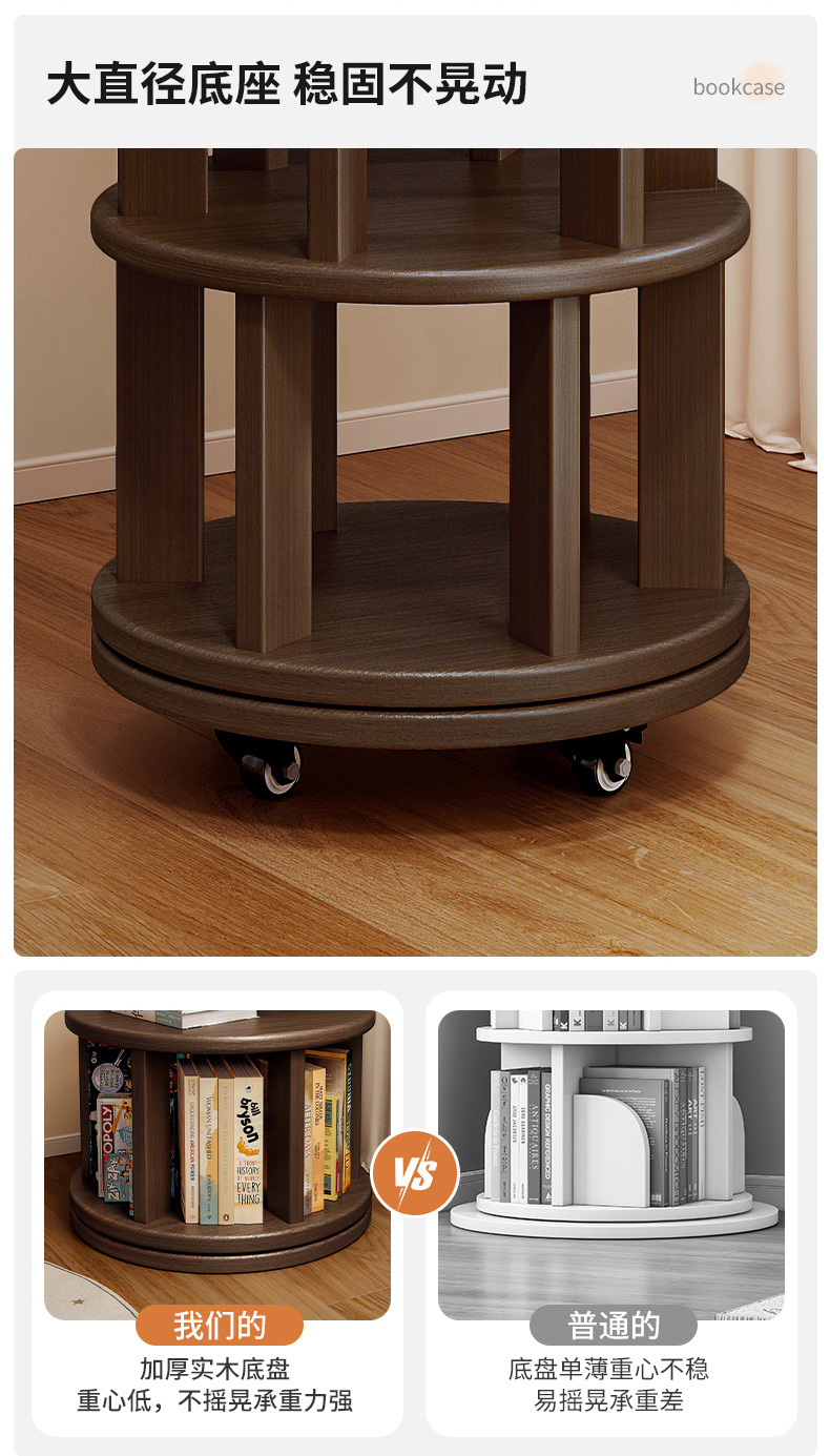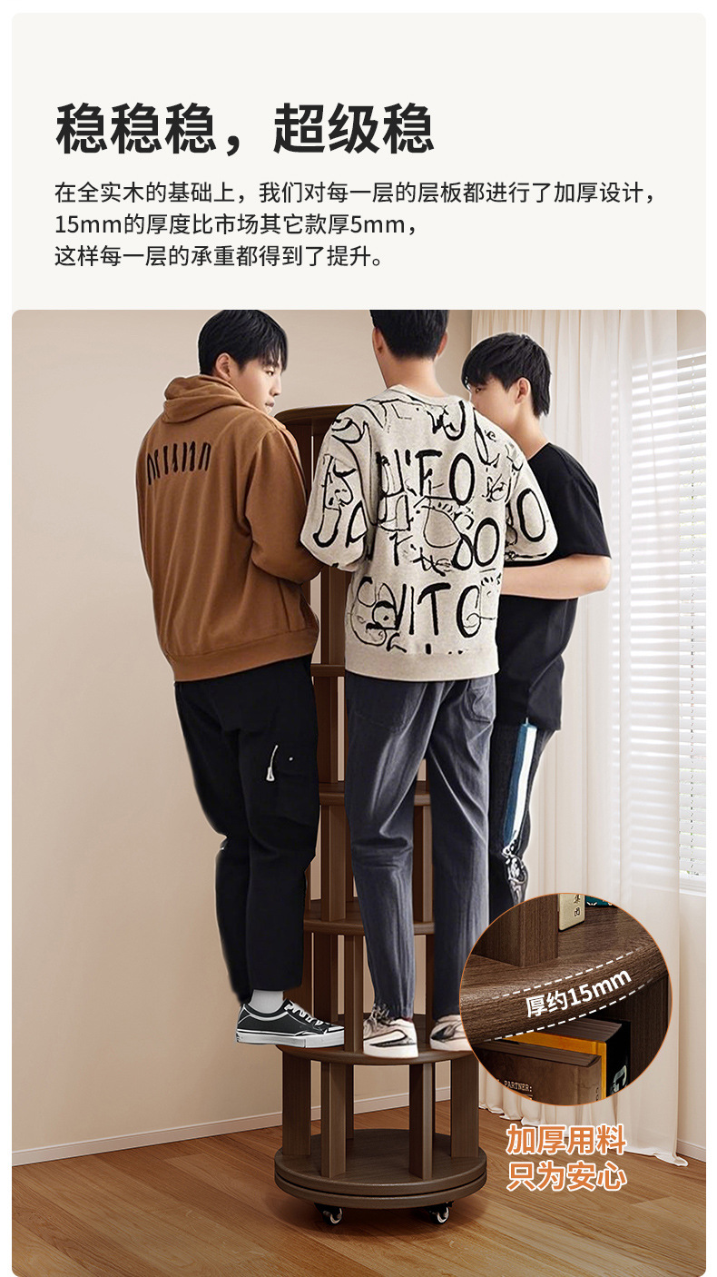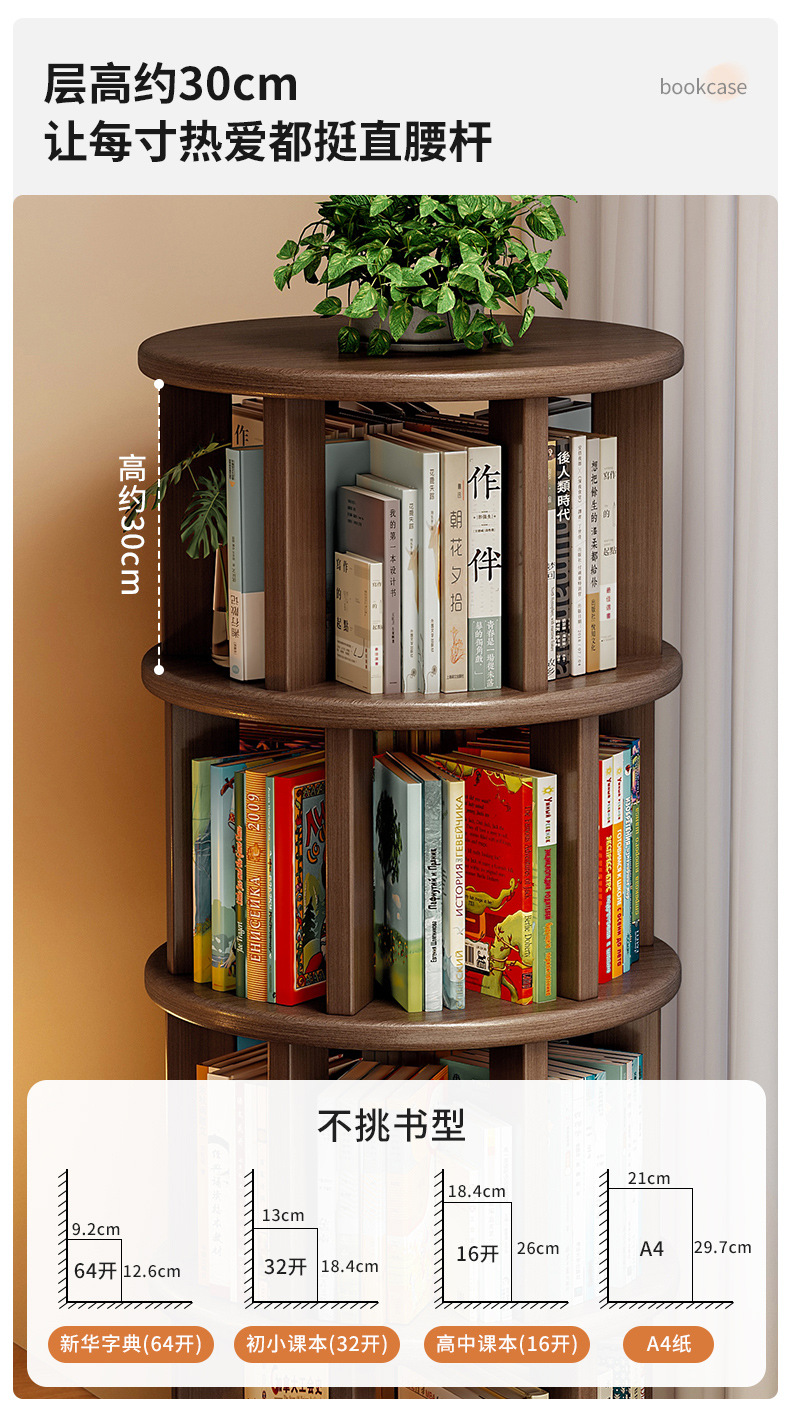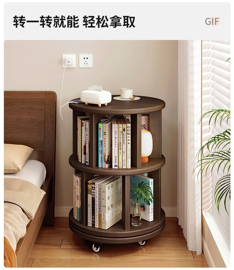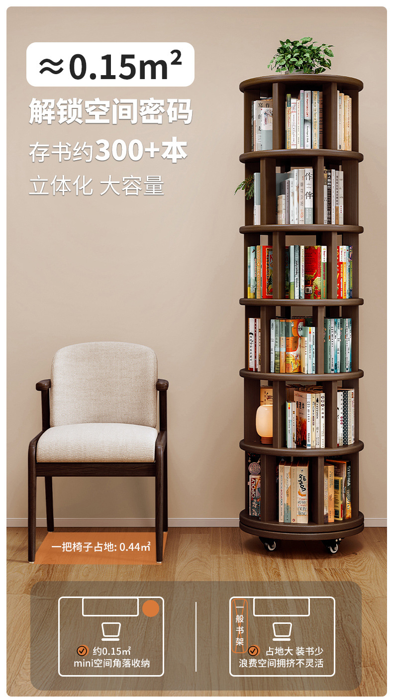 Estante de exhibición giratorio estante de libro doméstico estante de piso estante de almacenamiento sala de estar estante de exhibición de vinos retro estante de decoración almacenamiento armario