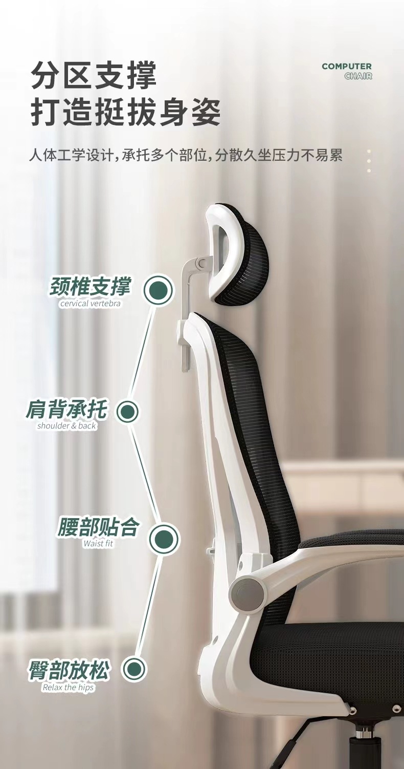 Silla de computadora, respaldo cómodo para el hogar, silla de aprendizaje elevable, silla de oficina ergonómica para el almuerzo móvil de oficina