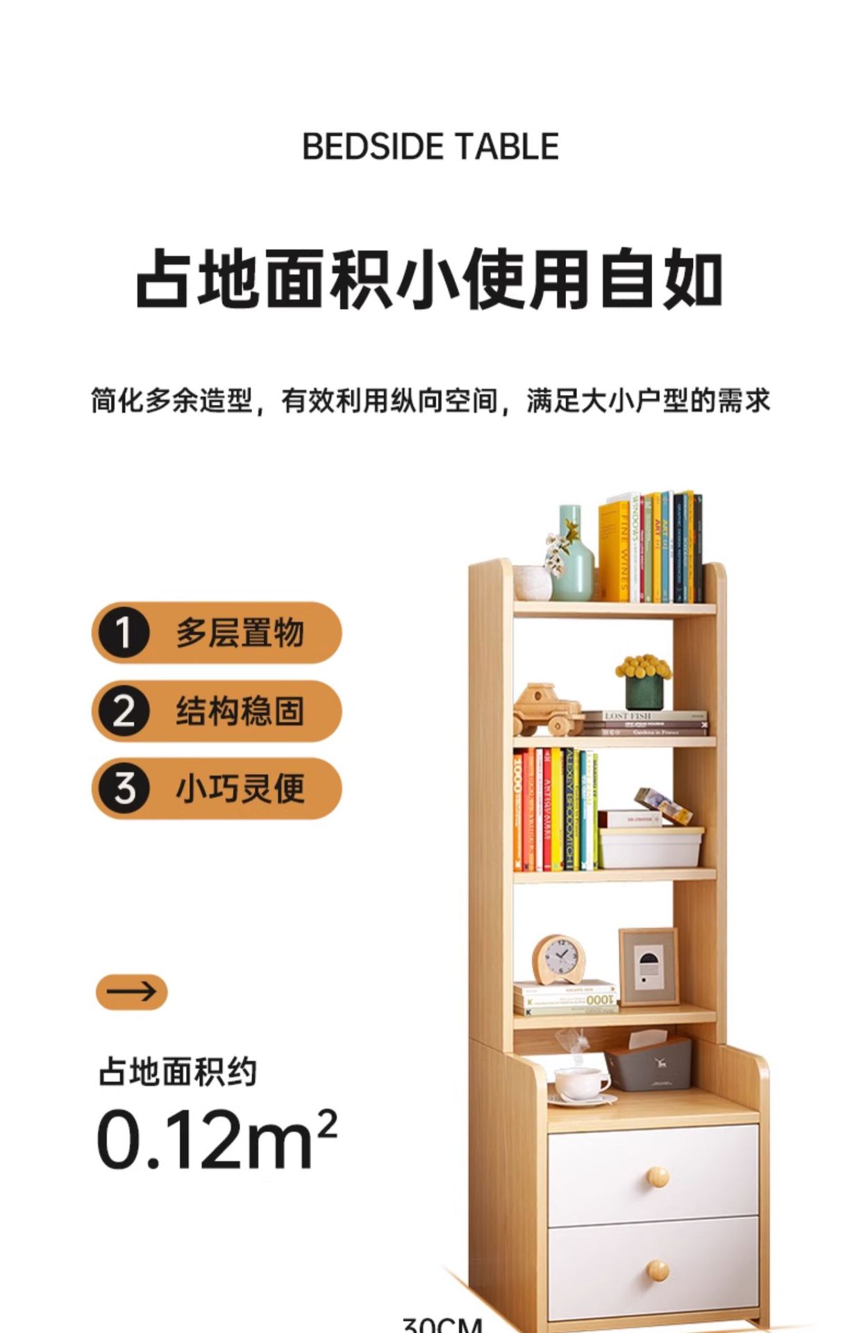 mesa de cabezal de cama dormitorio armario de almacenamiento armario de almacenamiento armario de exhibición doméstico acabado de estante elevado estante de libro piso