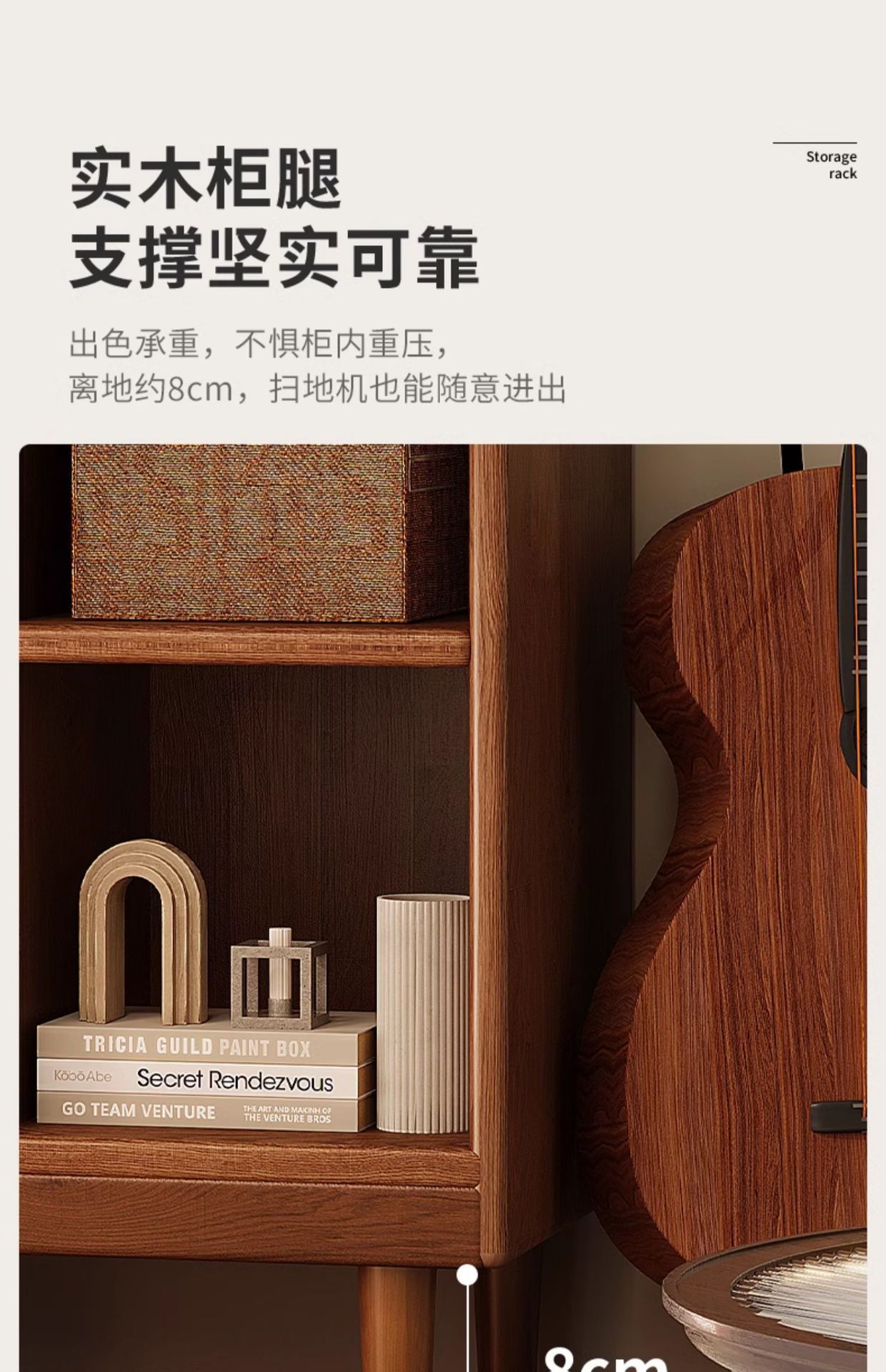 Gabinete bajo de madera sólida, gabinete de cuadrillas de color nuez, gabinete bajo de sala de estar doméstica, estante de almacenamiento contra la pared