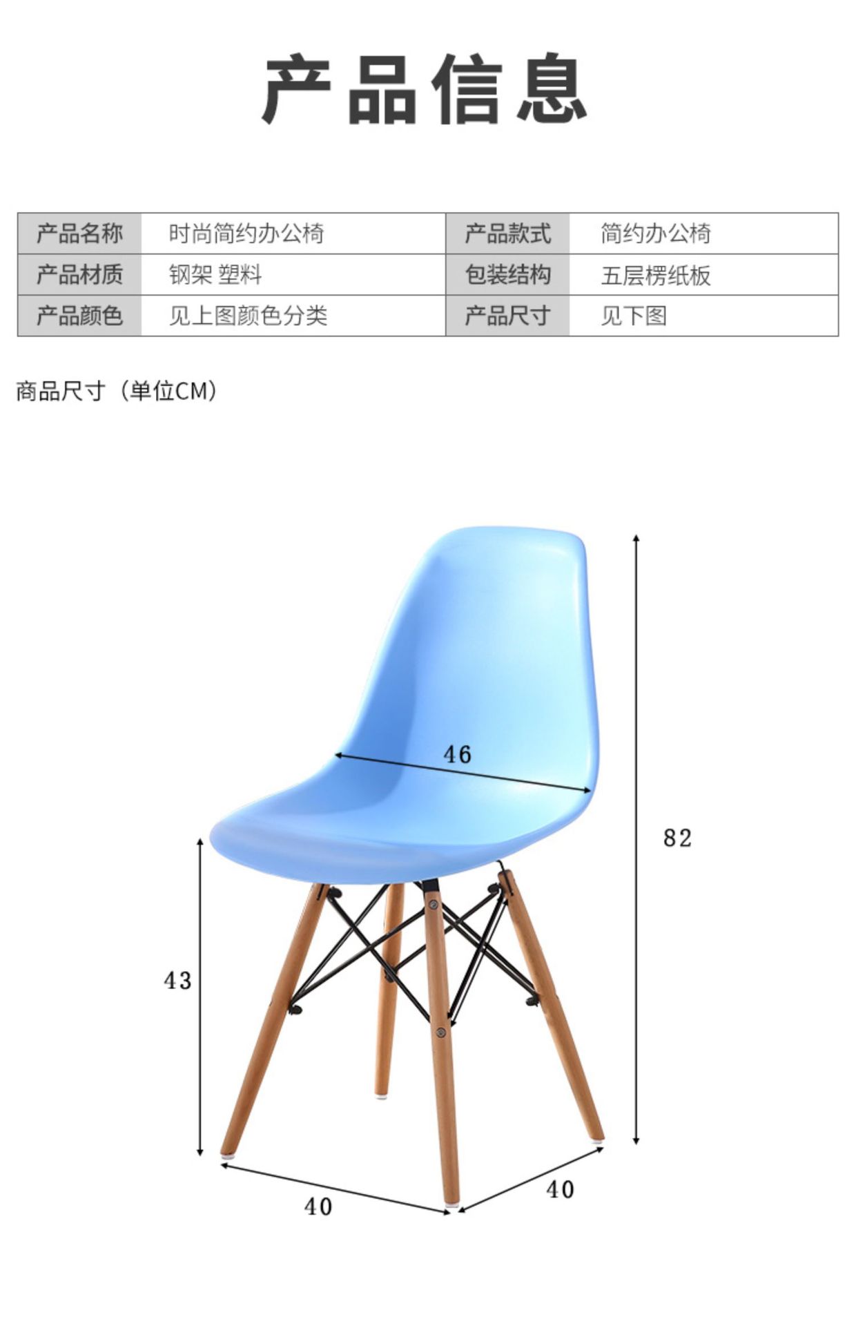 | Color | Silla Eames Blanco,Silla Eames rosa,Silla Eames Verde,Silla Eames Azul,Silla Eames Naranja,Silla Eames Rojo,Silla Eames Gris,Silla Eames Negro |