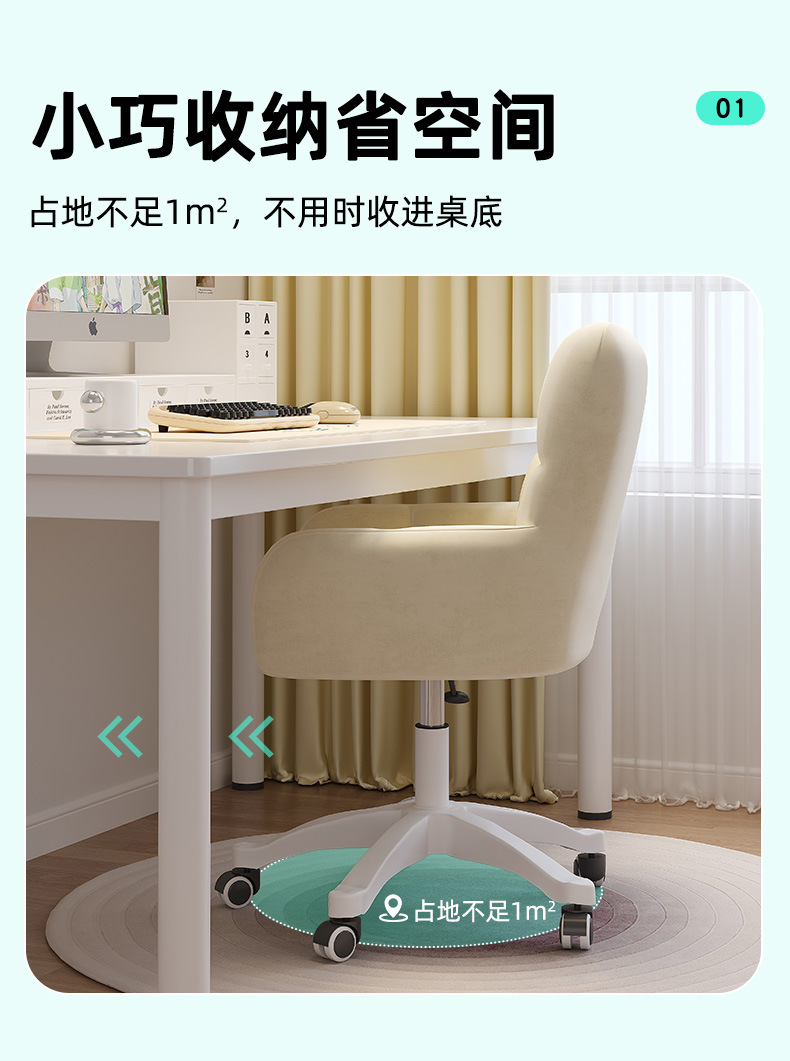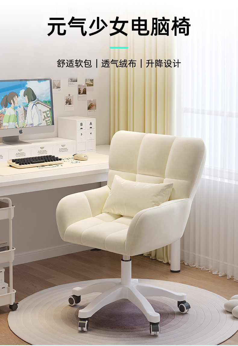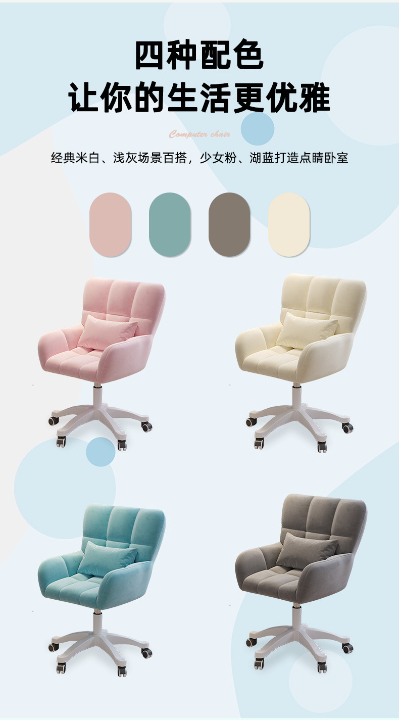 Silla de la computadora Silla de maquillaje para el dormitorio de las niñas Silla de ocio perezoso dormitorio de estudiantes universitarios respaldo de larga sesión silla giratoria ajustable