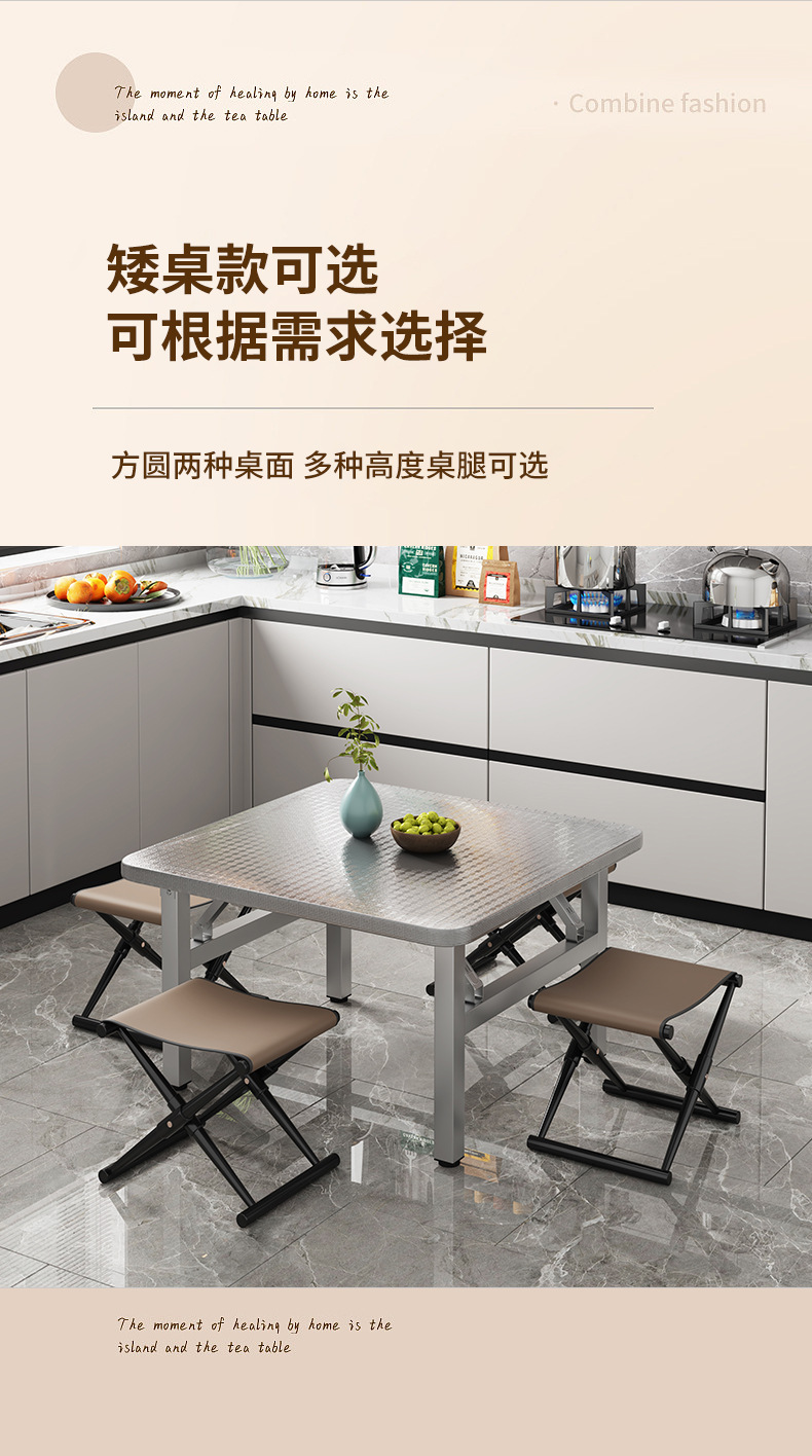 Mesa de comedor de acero inoxidable Mesa Redonda plegable mesa de comedor mesa de camping al aire libre pequeña mesa cuadrada Mesa Redonda mesa de comedor