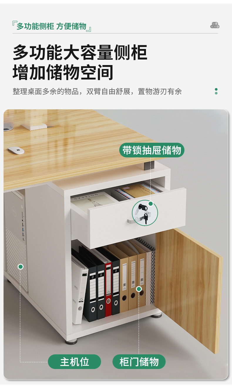 Escritorio de computadora personal de oficina Estación combinación de mesa y silla para varias personas con gabinete lateral integrado Escritorio de oficina simple Escritorio de computadora